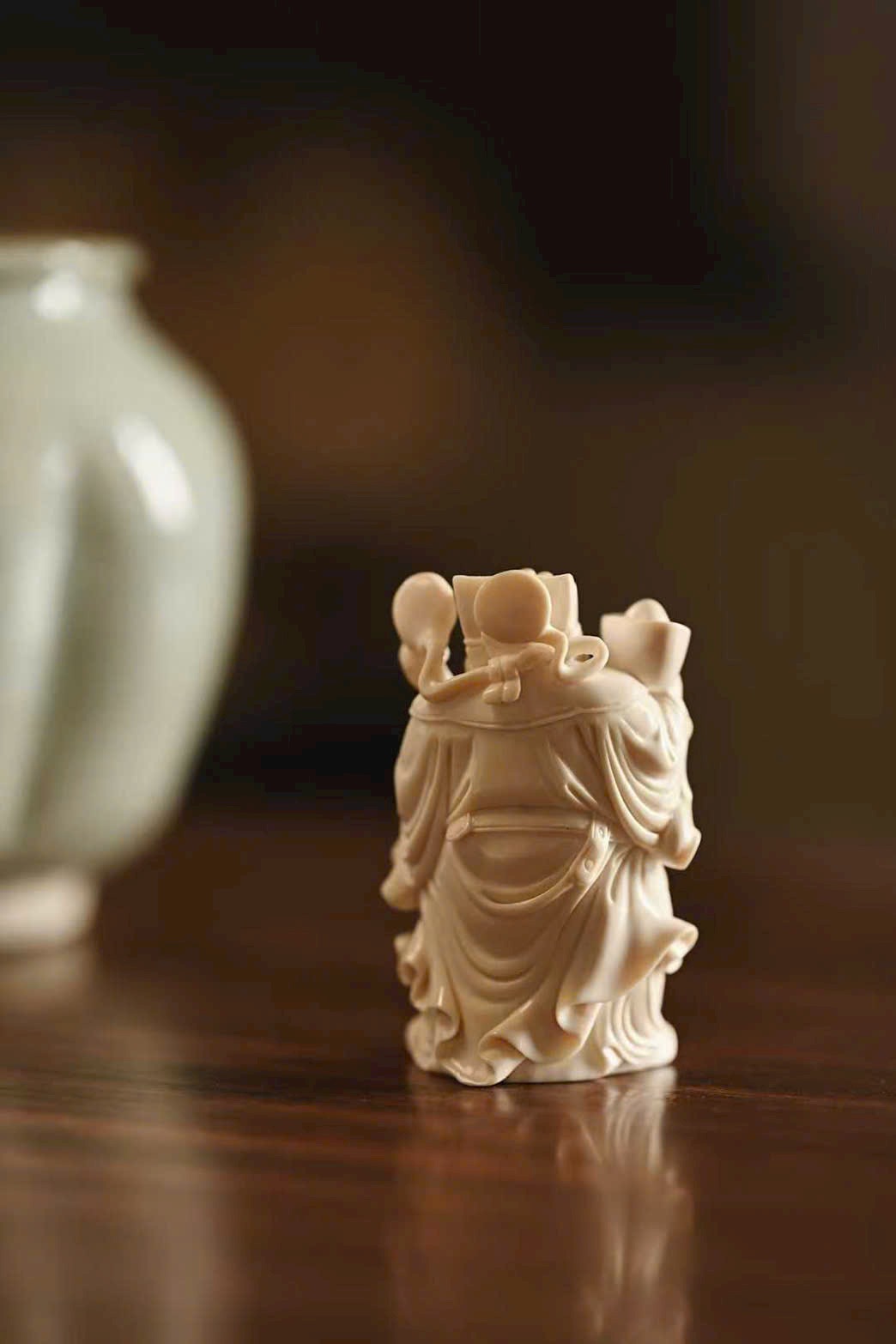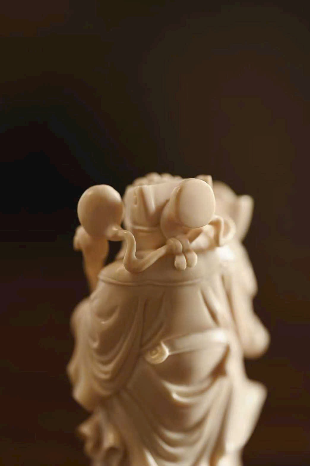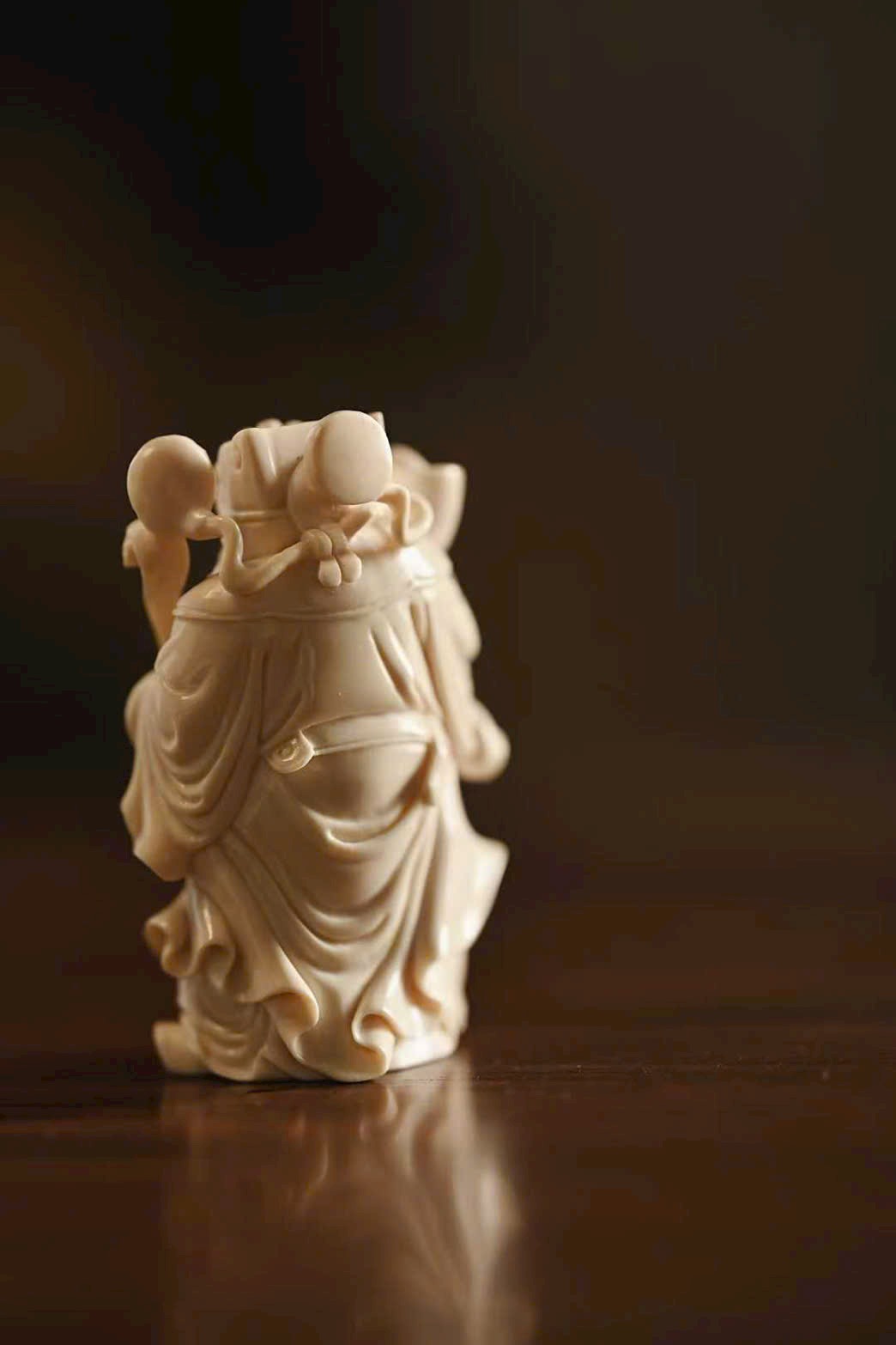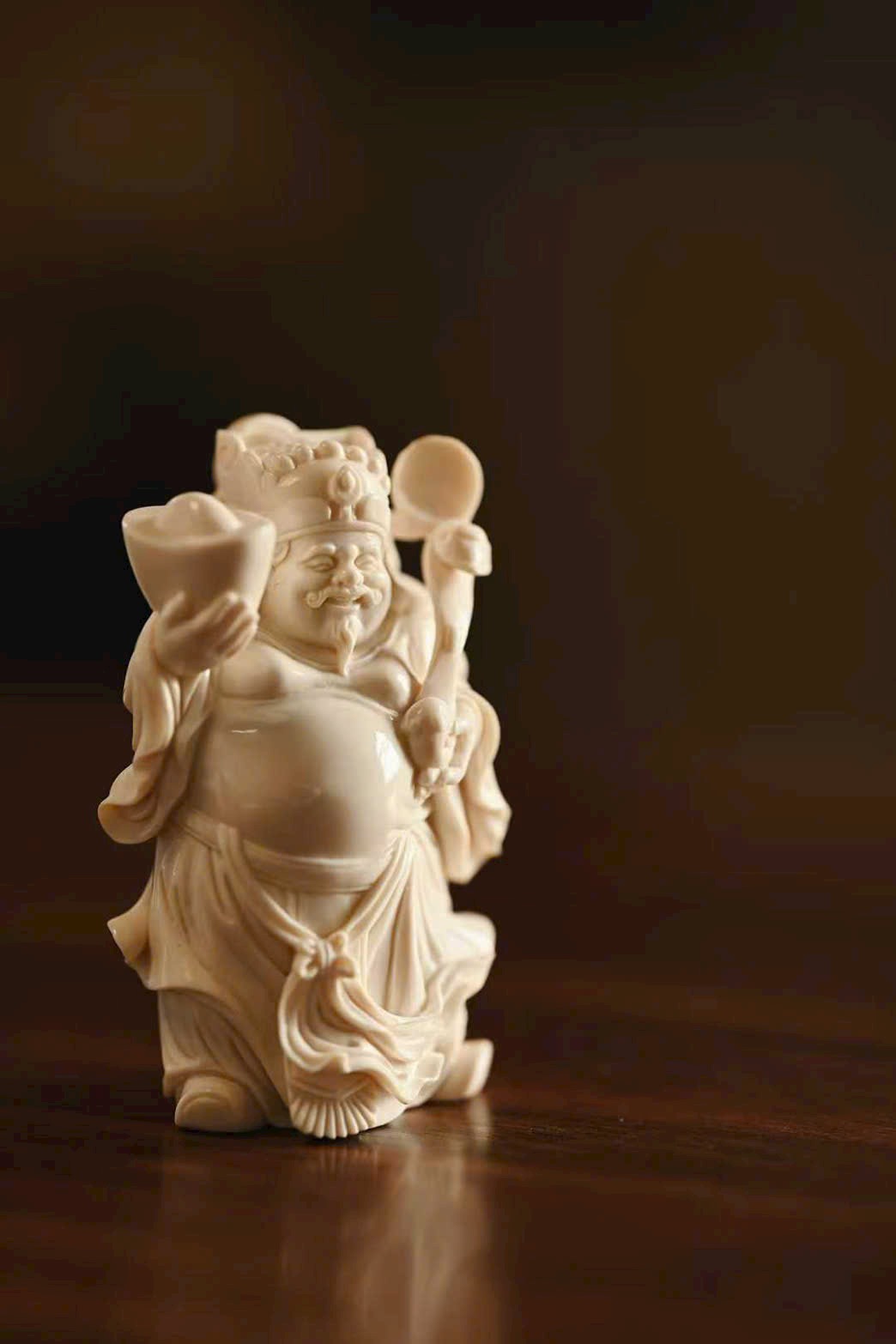 Chất liệu mịn chắc, tượng Thần Tài mở tướng từ hòa hỉ lạc, gương mặt đầy đặn như trăng rằm, thần sắc thư thái. Y bào như bay theo gió, tay ôm thỏi vàng và như ý, khí tượng chiêu tài nạp phúc hiện rõ, mang ý nghĩa tài lộc hanh thông – tài nguyên quảng tiến.
