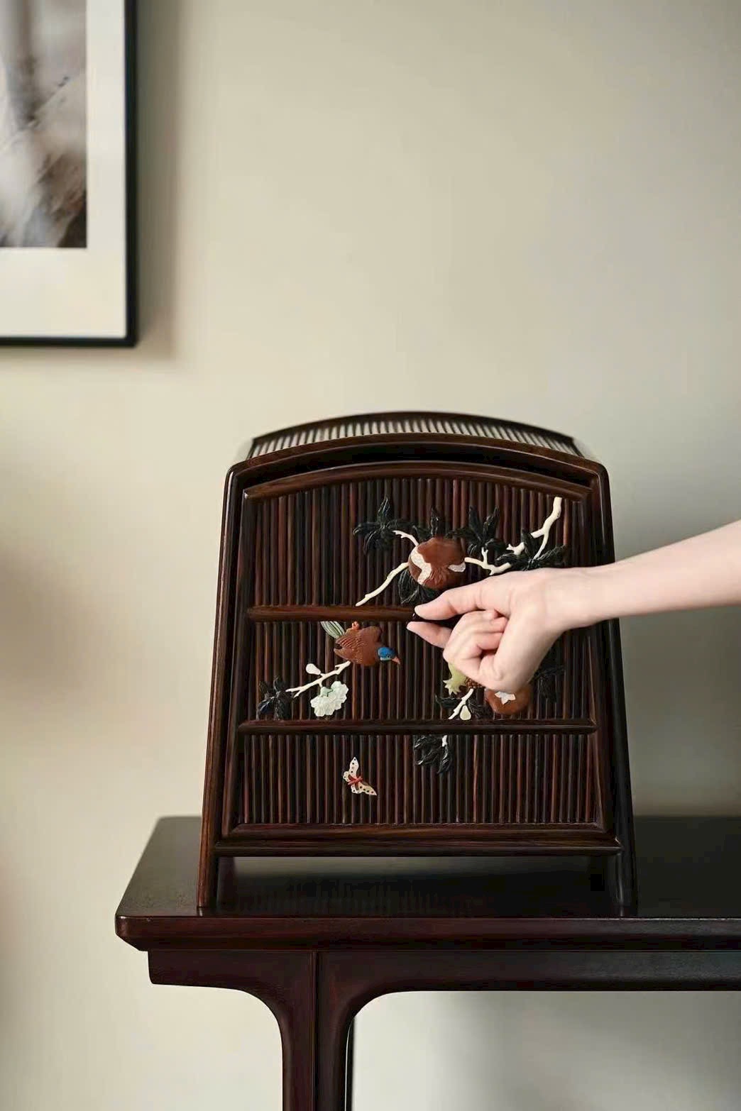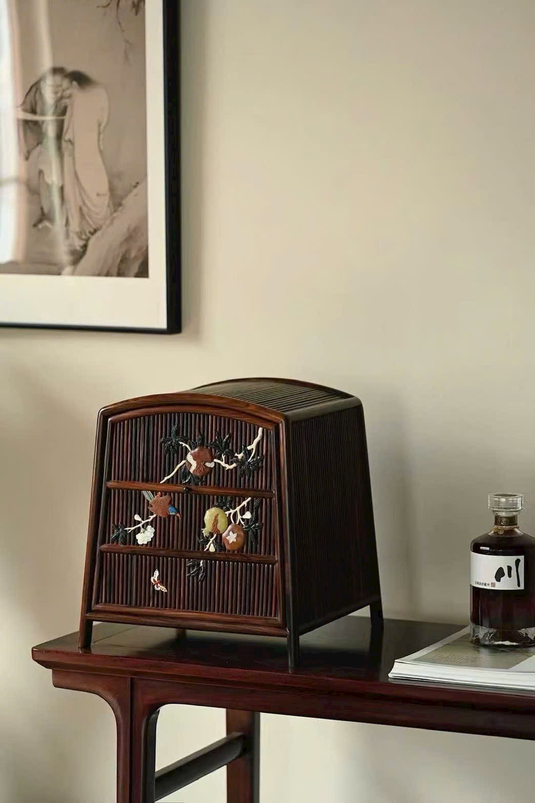 Gỗ trắc đỏ × khảm bách bảo “Phú Quý Cát Tường” – hộp trà