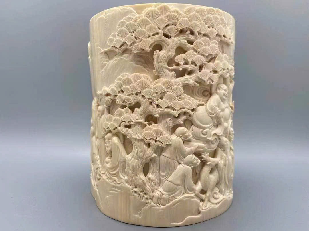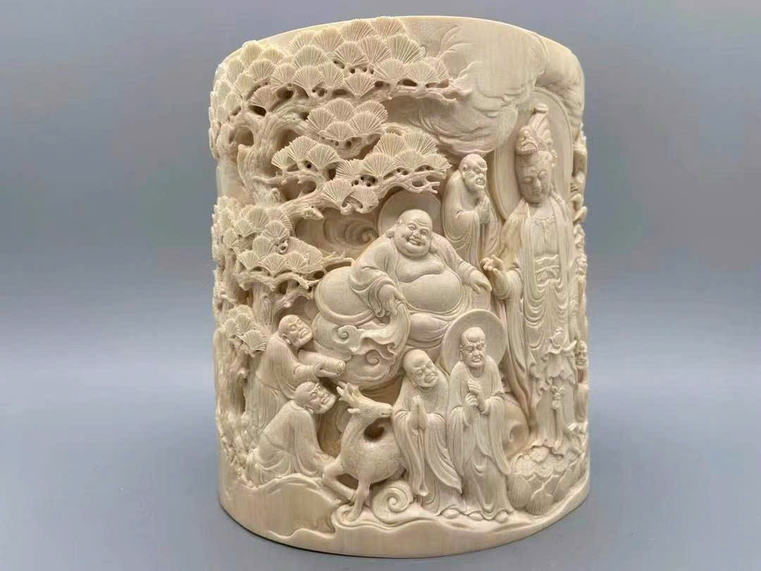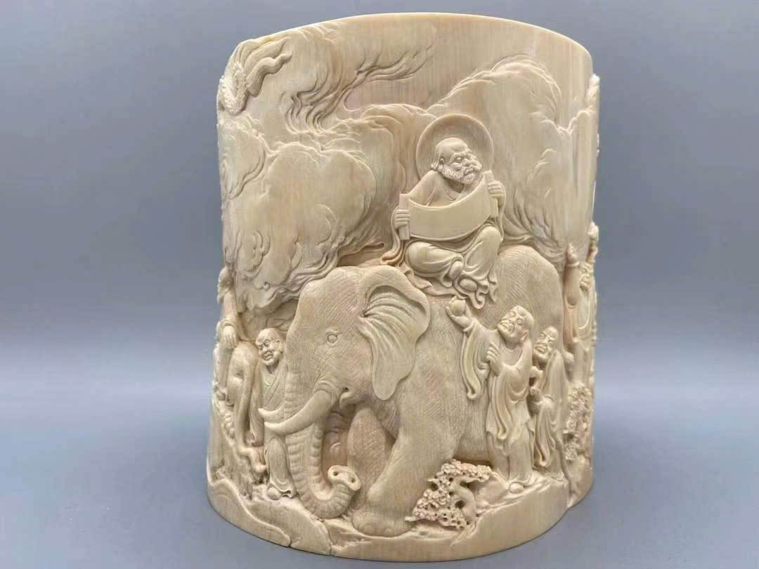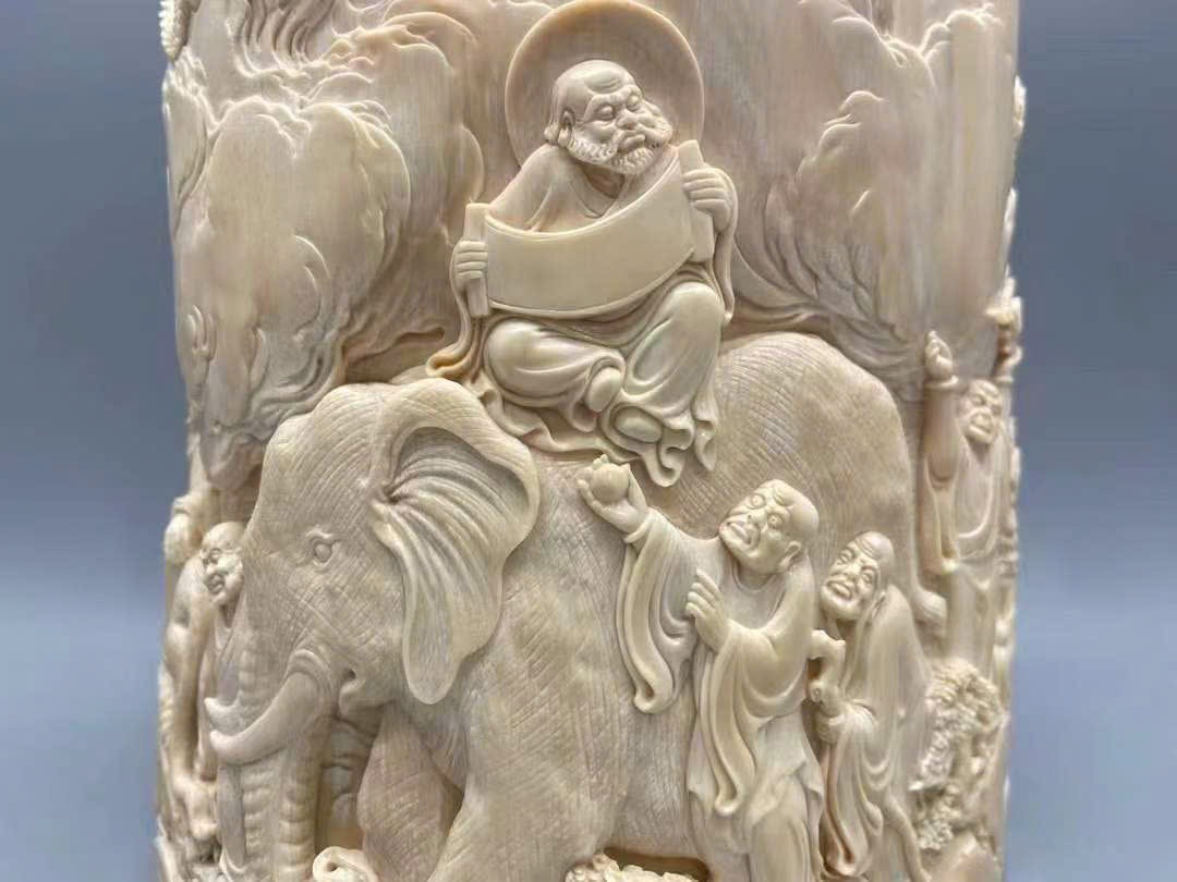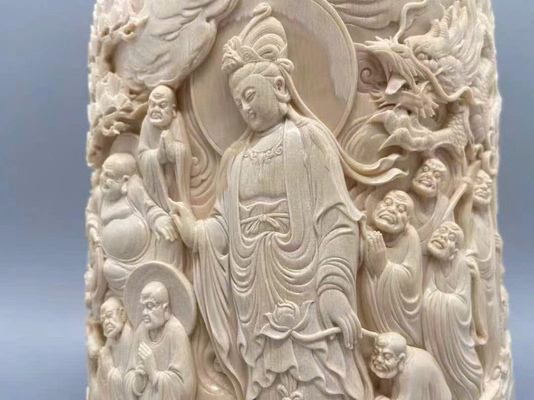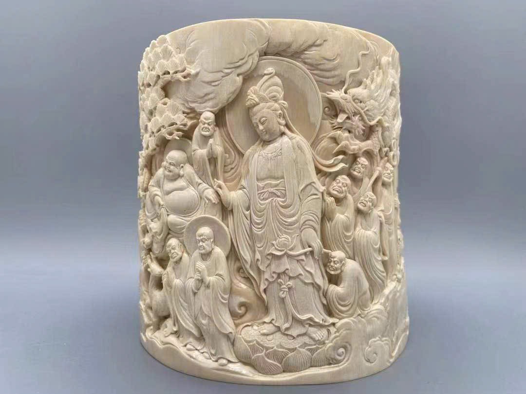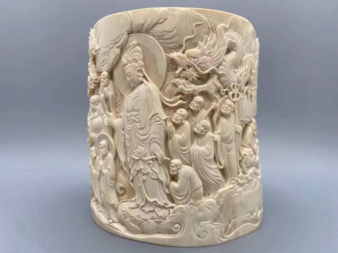 Tác phẩm chạm khắc ng.à voi ma mút cao cấp【Thập Bát La Hán】