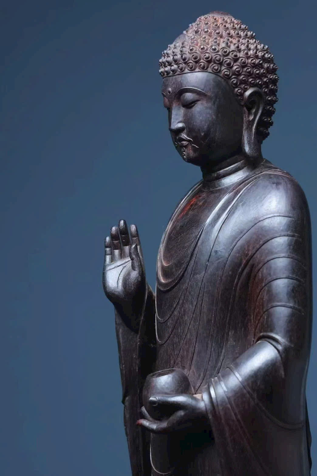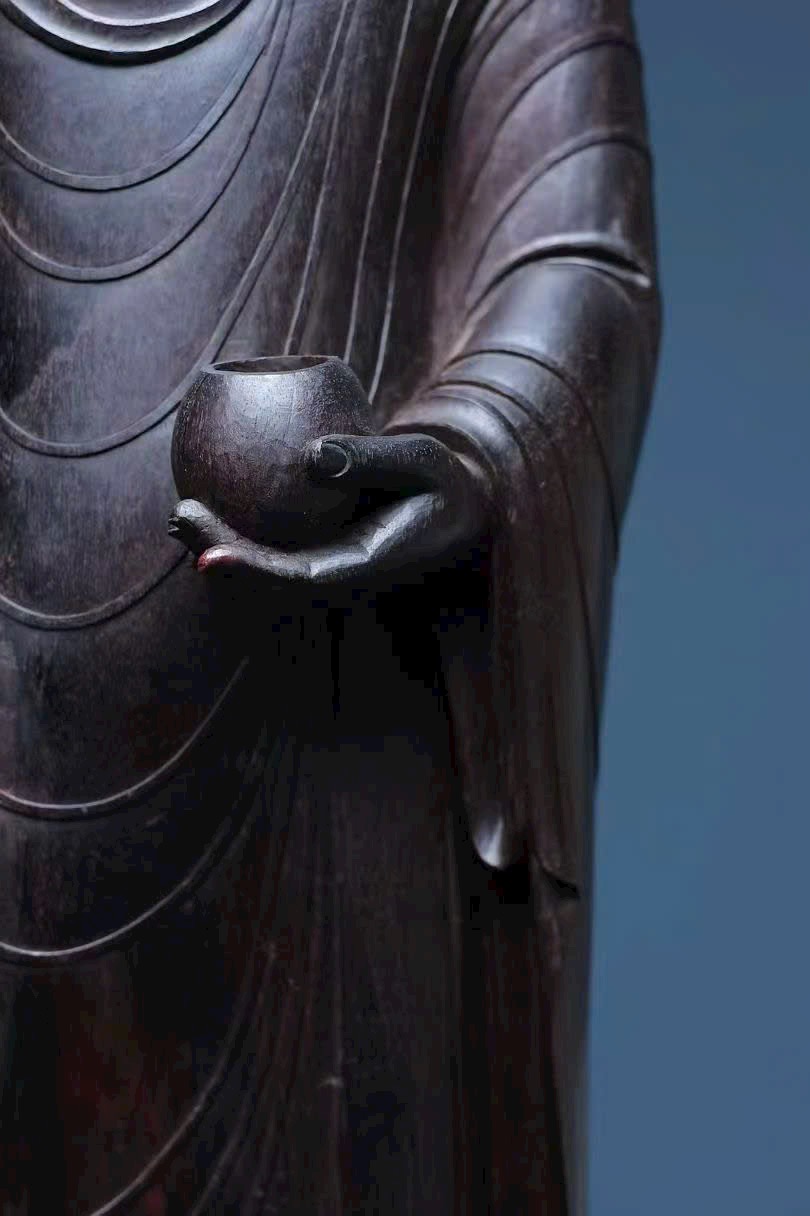 Thần thái Như Lai trầm mặc, nội tỉnh, giữa uy nghi vẫn chứa chan từ ái. Khoác cà sa, nếp áo buông lượn như mây trôi nước chảy. Tay trái nâng bát trước ngực, tay phải giơ lên làm ấn vô úy, khiến người chiêm ngưỡng tự nhiên sinh tâm kính ngưỡng.