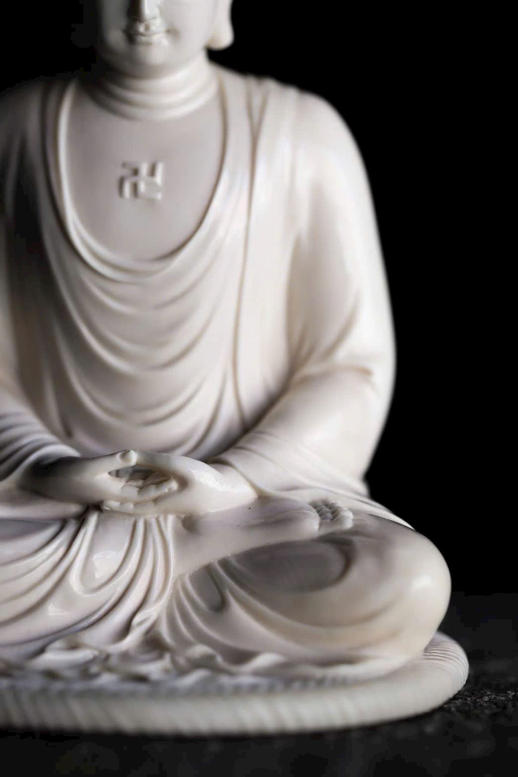 Chất n.gà mịn màng tinh tế, ánh sắc thanh khiết, ngưng tụ vẻ trang nghiêm tĩnh tại. Đường đao khắc vững vàng, khí vận an hòa. Đức Thích Ca Mâu Ni an tọa kiết già, trong ánh mắt ẩn chứa thần quang, dung mạo tĩnh lặng và đoan nghiêm, toát lên khí vận từ bi, an tĩnh mà sâu lắng.