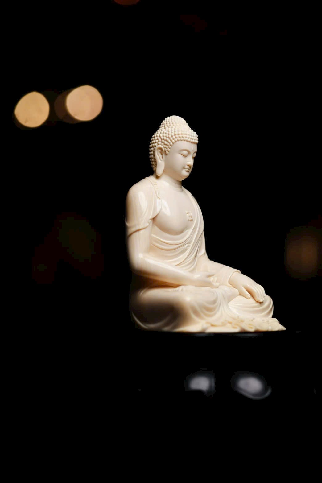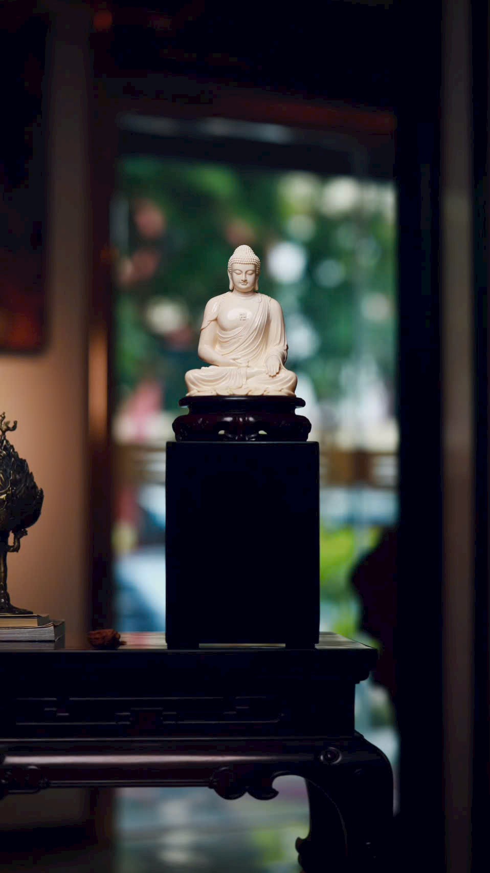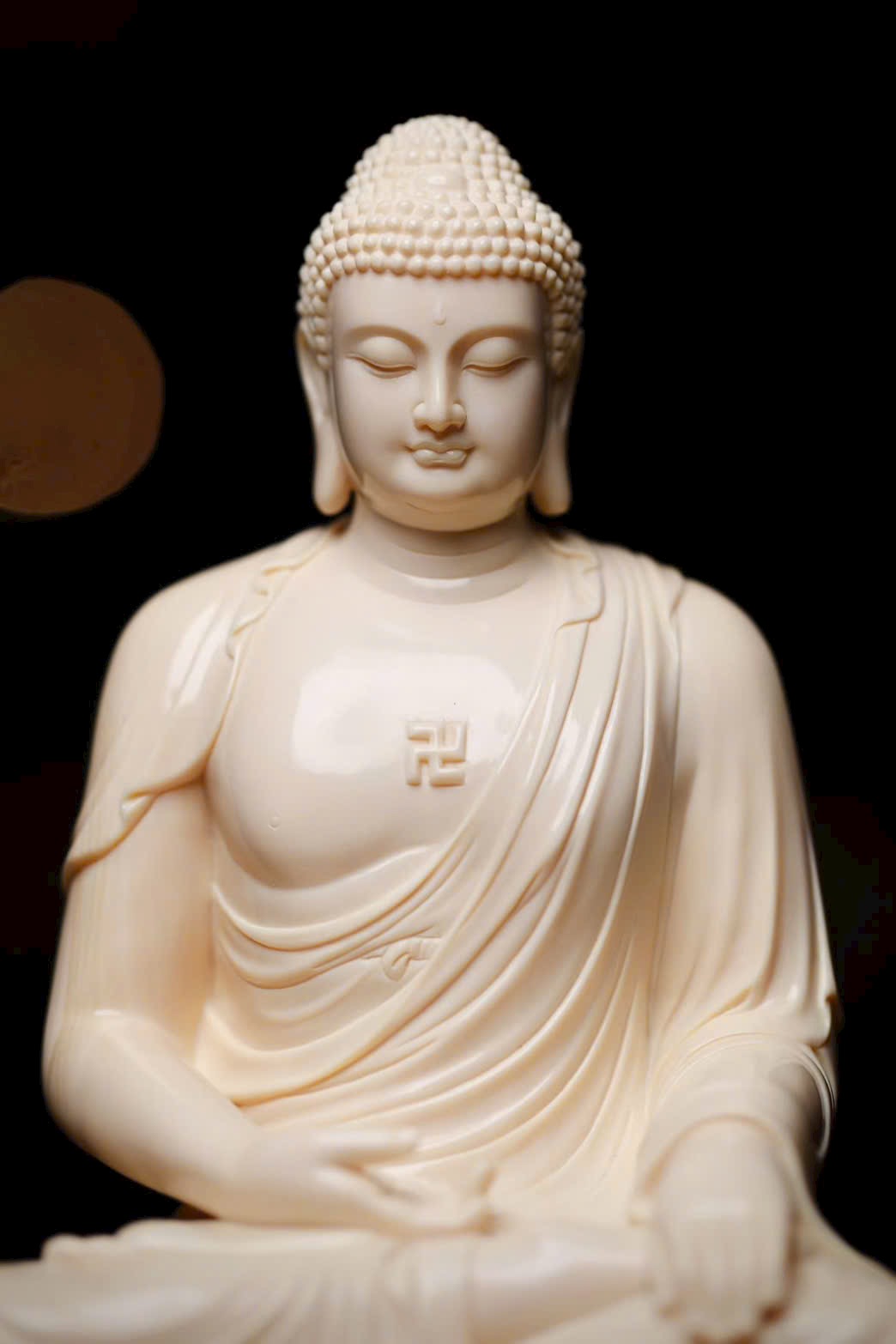 Tượng được đại sư tỉnh cấp trực tiếp điêu khắc từ khối ng.à voi ma mút cấp 5A thượng phẩm, chất ngà trắng mịn, bóng nhuận, tinh khiết hiếm có. Hình tượng Thích Ca Mâu Ni Thế Tôn được thể hiện với diện tướng đoan nghiêm, thân thái an hòa: