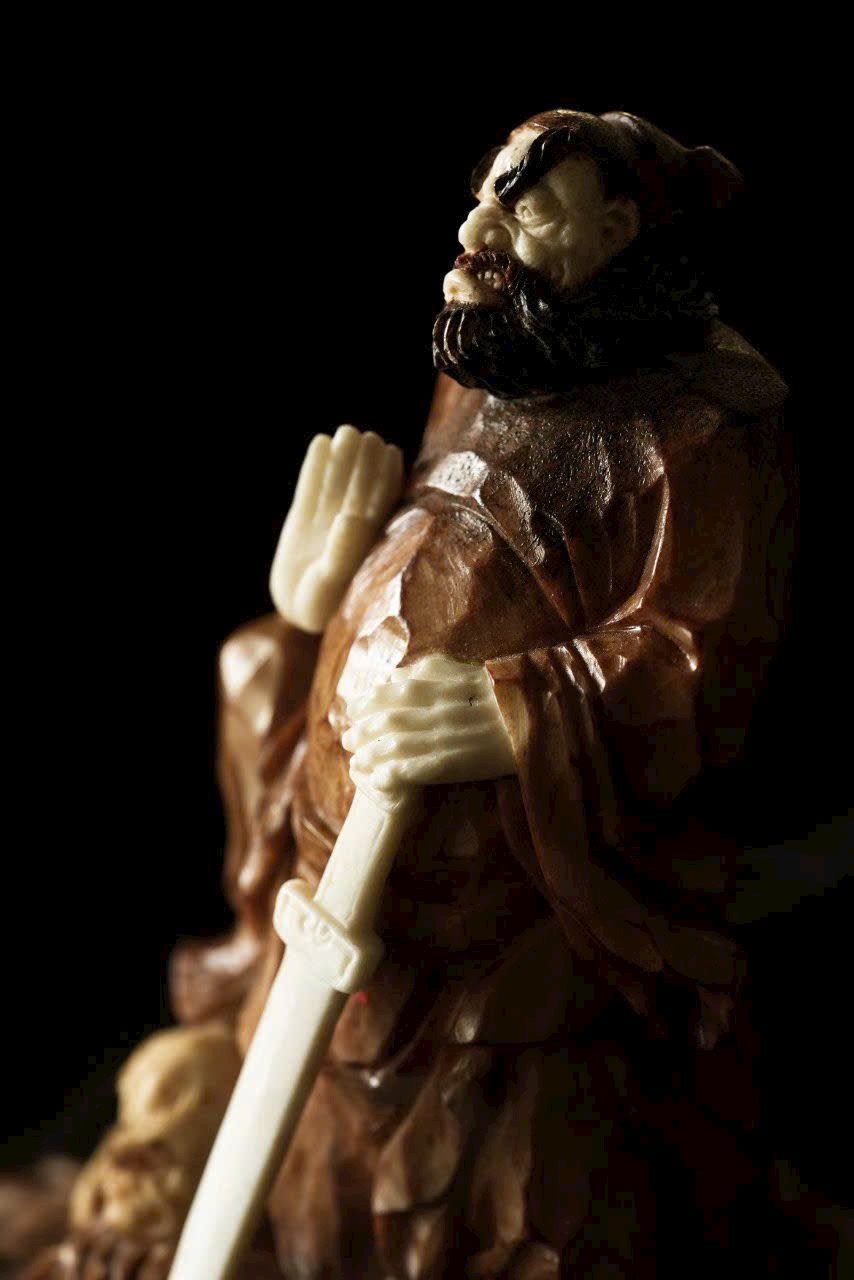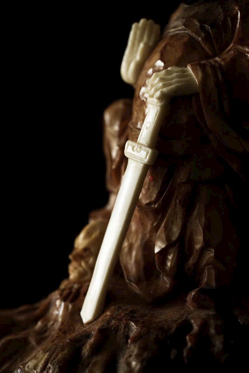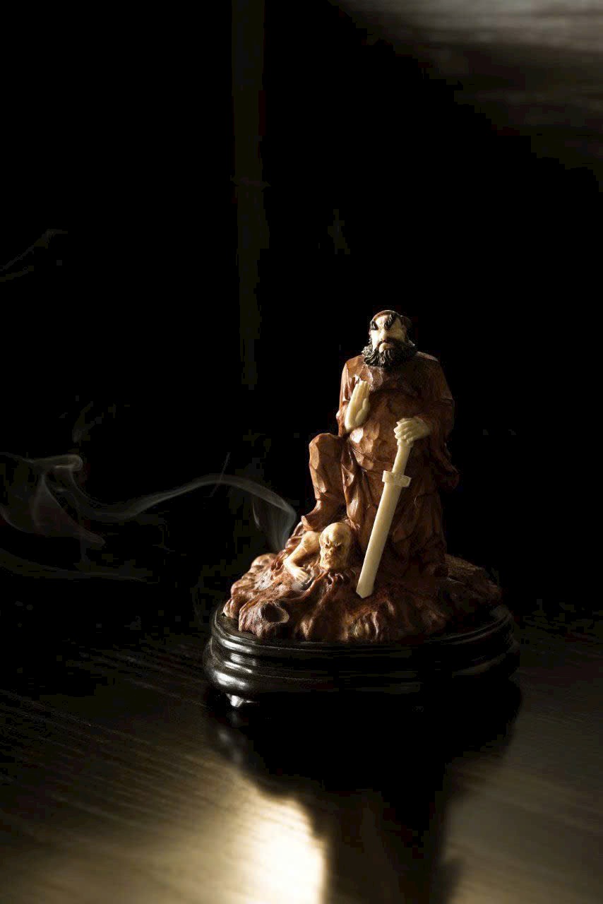 Râu tóc xoắn cuộn, tung bay theo phong thái “Ngô đới đương phong”, sống động mà hào hùng; mũi kiếm lưu chuyển sắc bén, tựa như có thể chém dứt tà khí, trấn giữ bên gối khi đêm về.