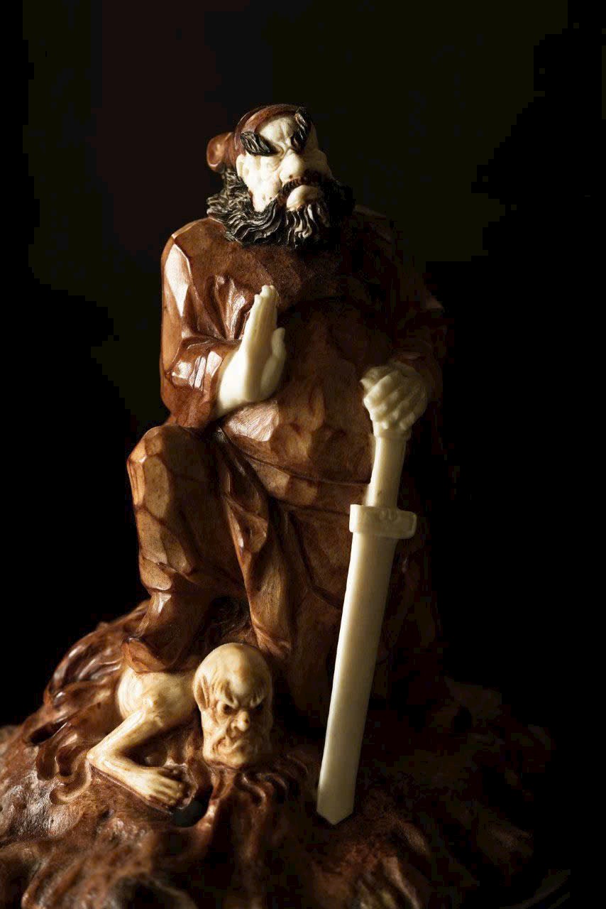 Tác phẩm điêu khắc dạng lập thể, tái hiện chân dung Chung Quỳ hàng ma thời Thịnh Đường. Thần thái uy mãnh, cốt cách như sấm sét, khí thế phục ma tam muội hiển lộ rõ ràng.