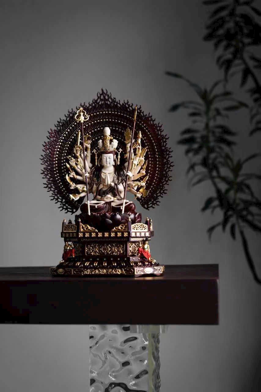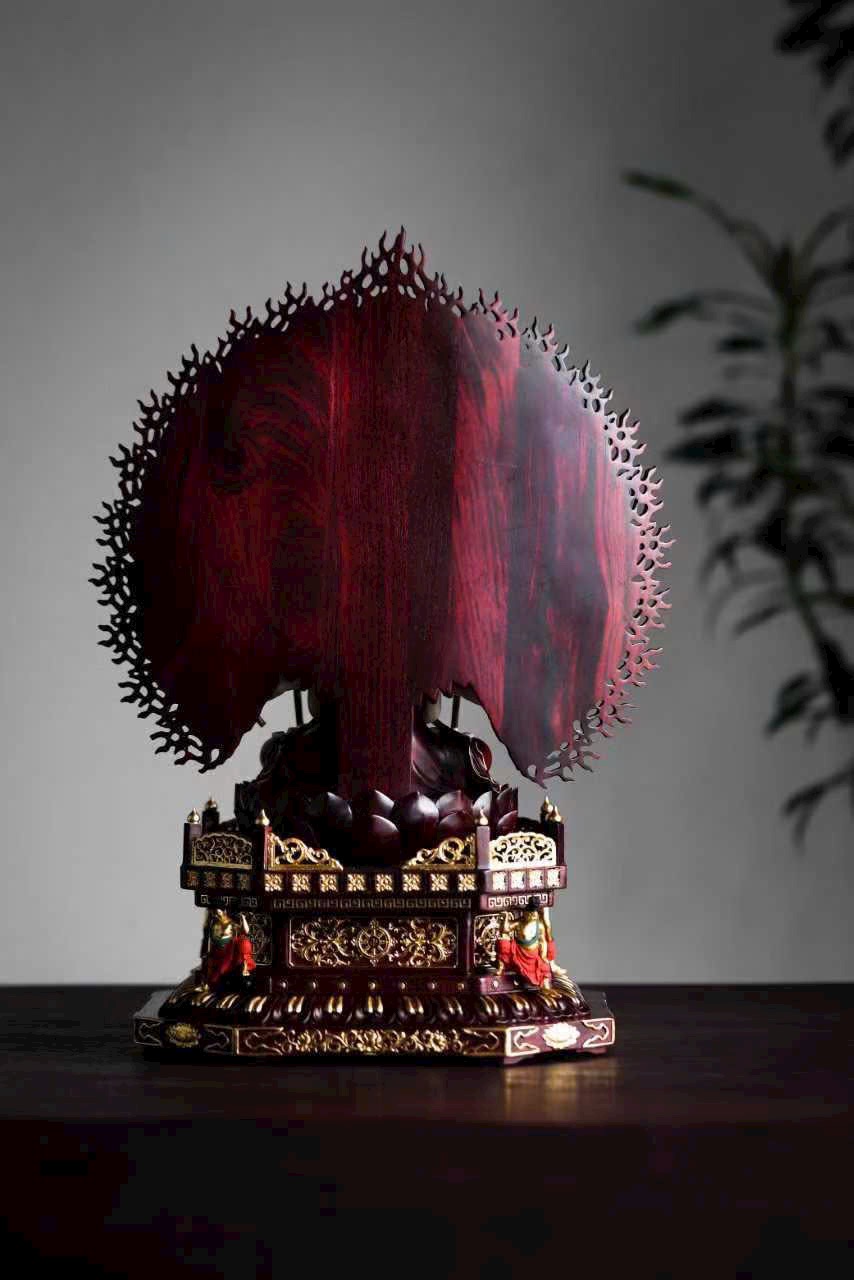 Tử đàn làm nền, trầm tĩnh như đêm, Quan Âm sáng tựa vầng nguyệt.