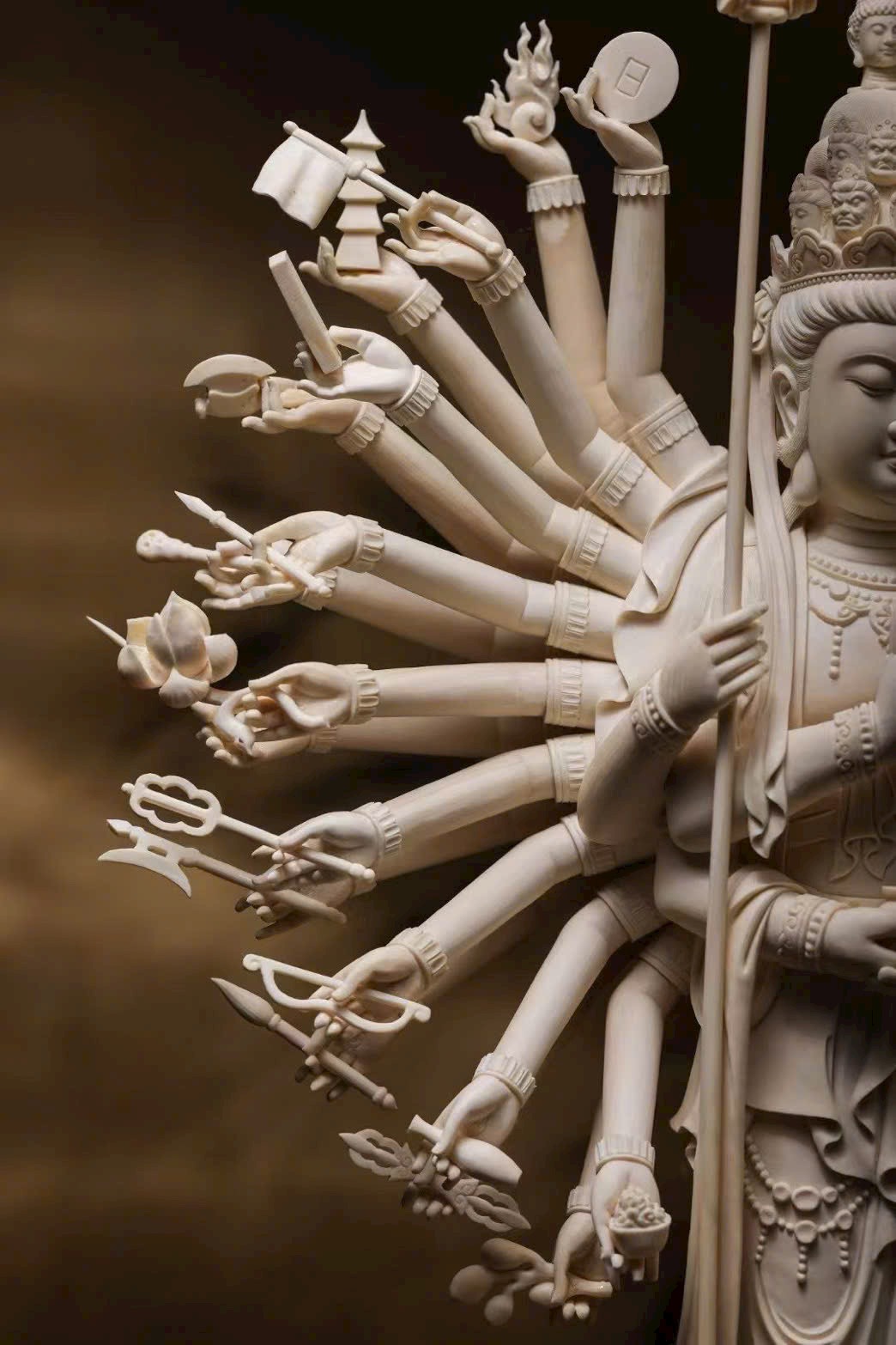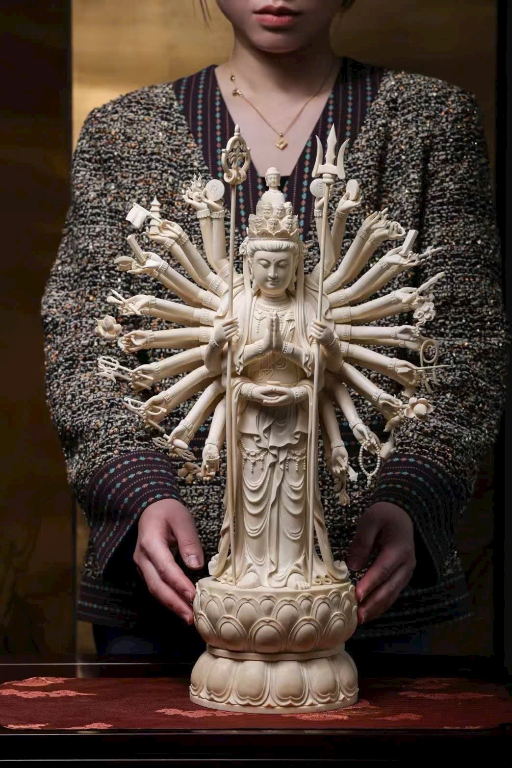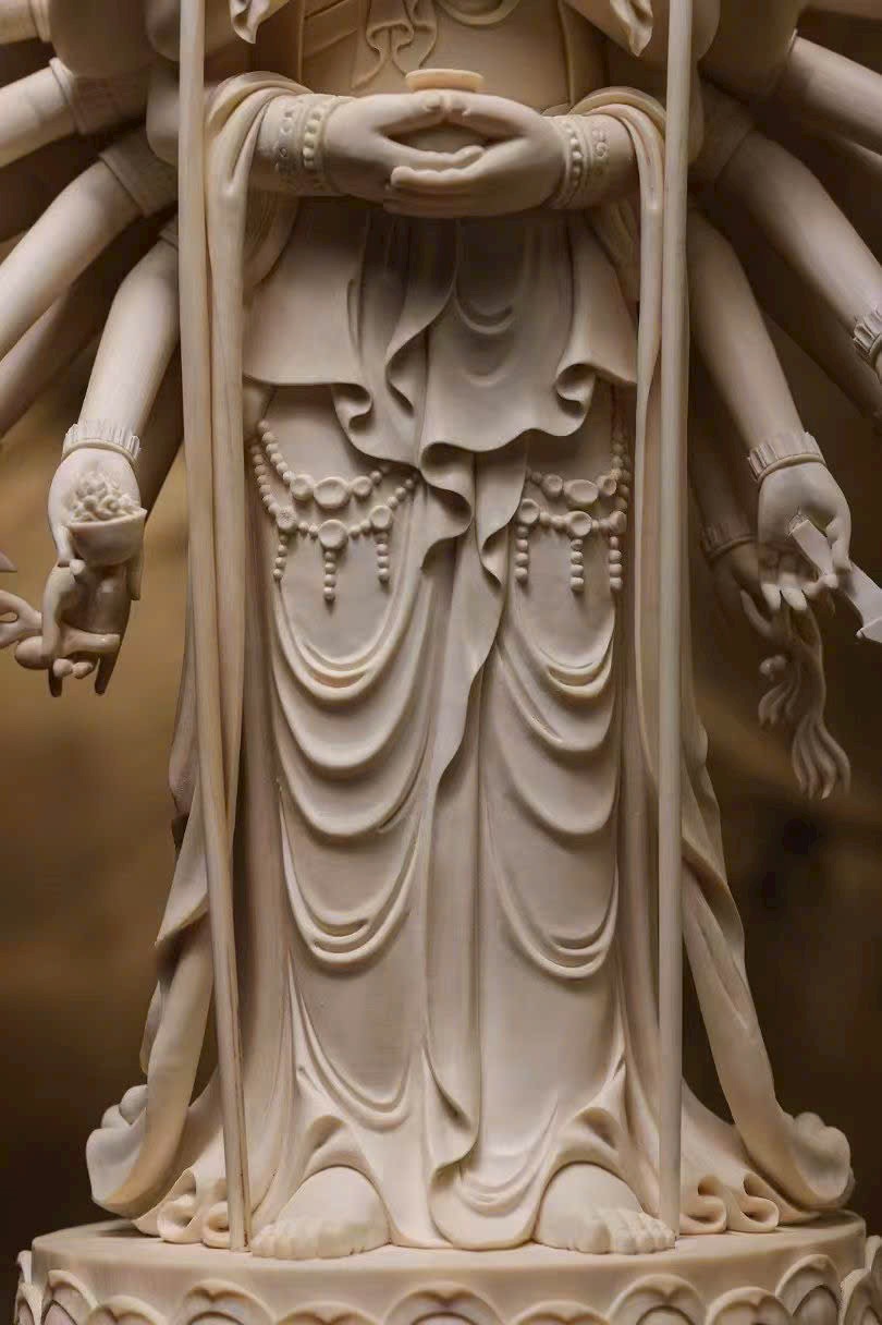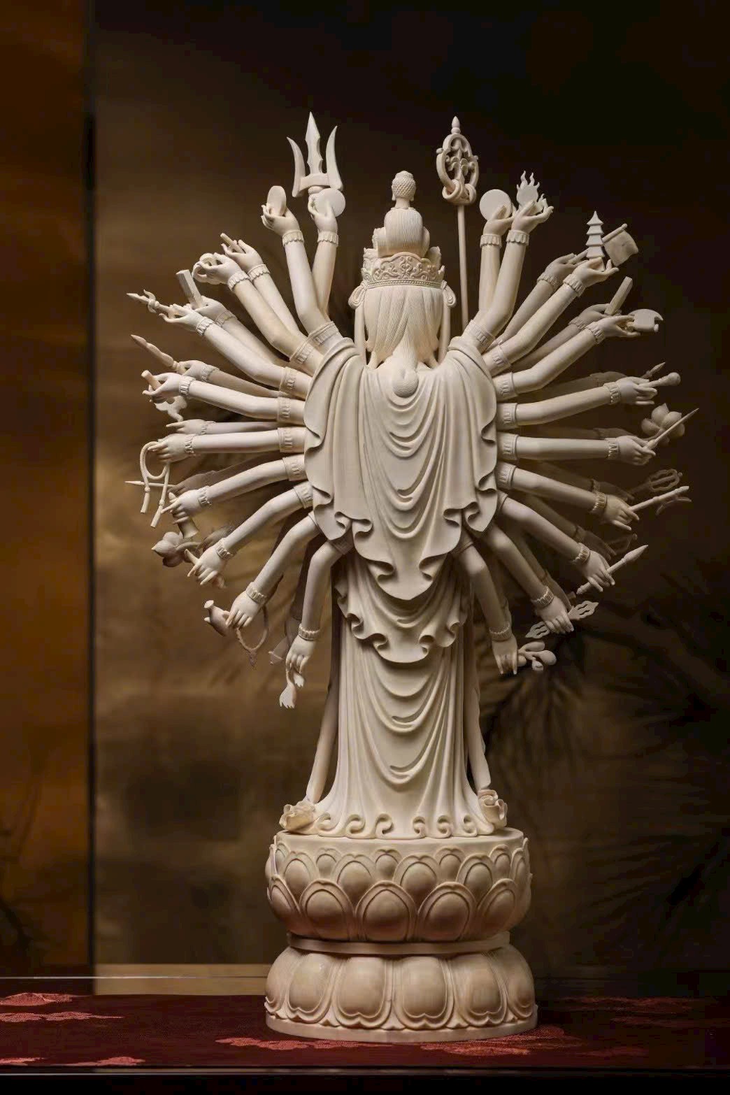 Chế tác công phu, tỉ mỉ và nghiêm cẩn; chạm khắc thành kính, đường dao thuần thục. Quan Âm từ bi đứng trang nghiêm, ngàn tay mở rộng uyển chuyển, mỗi tay như nắm các pháp khí khác nhau để cứu độ chúng sinh ba cõi. Tác phẩm mang vẻ trang nghiêm, linh thiêng — thích hợp để cúng dường, trưng bày và truyền lại phúc đức cùng trí tuệ cho gia đình.