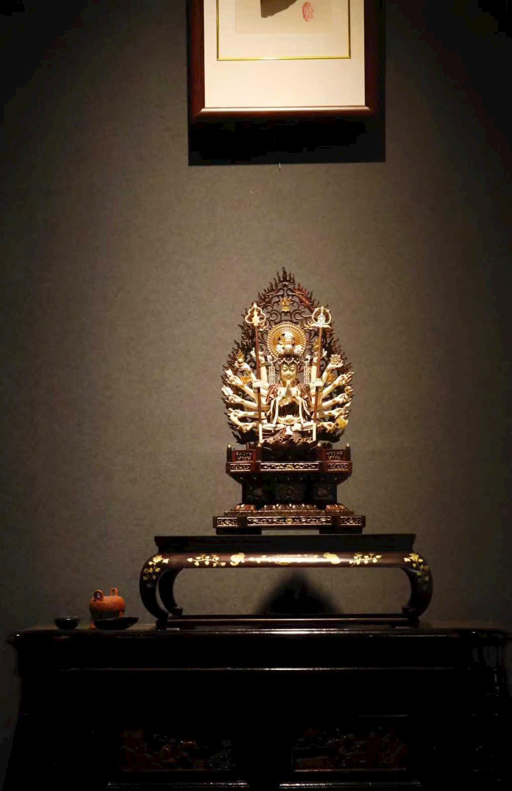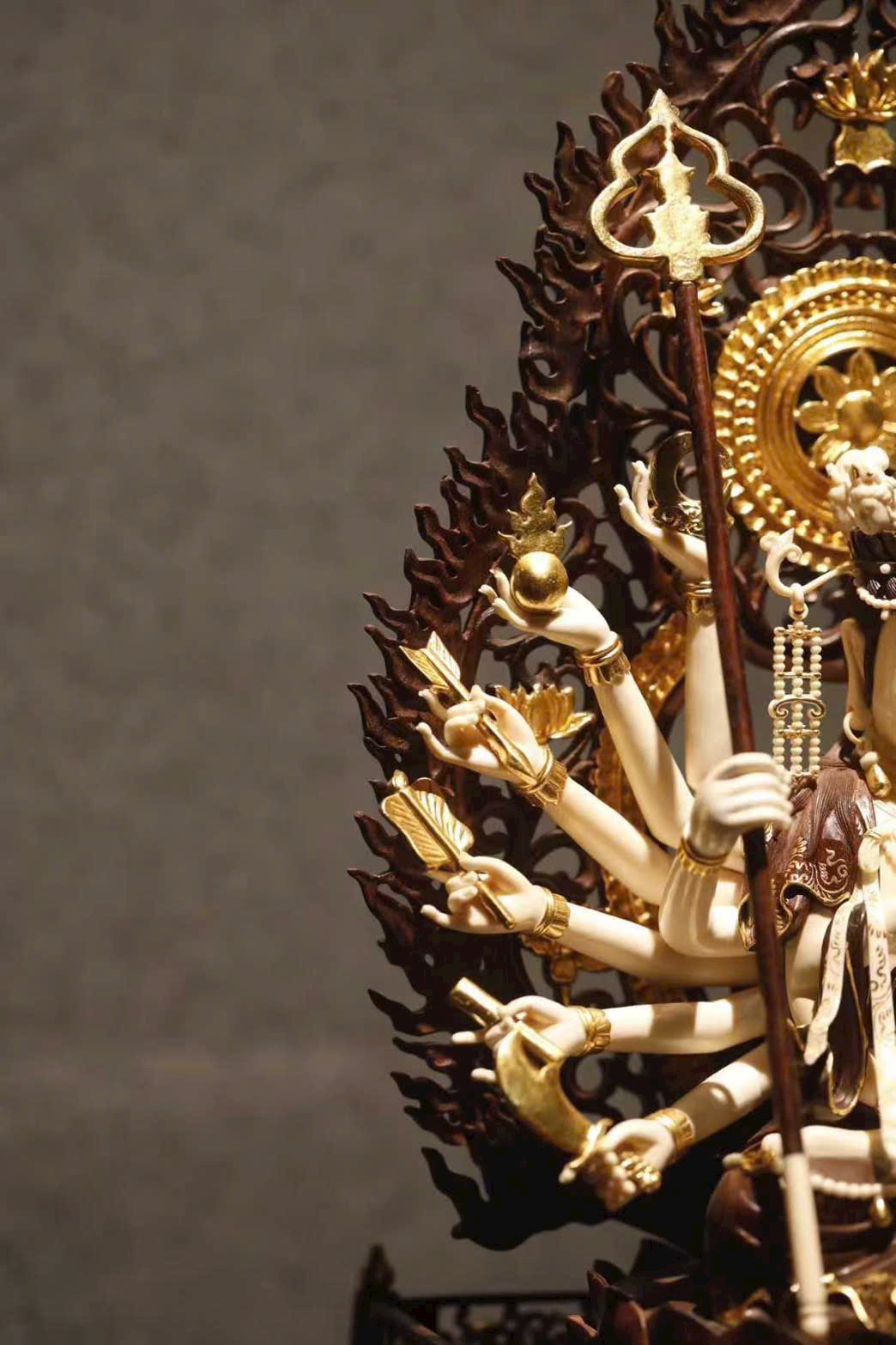 Tác phẩm là sự giao hòa giữa nghệ thuật và tín ngưỡng, kết hợp tử đàn tiểu diệp trầm tĩnh với ngà voi ma mút thuần khiết, biểu hiện khí vận linh thiêng và vẻ đẹp vô song của thủ công truyền thống.