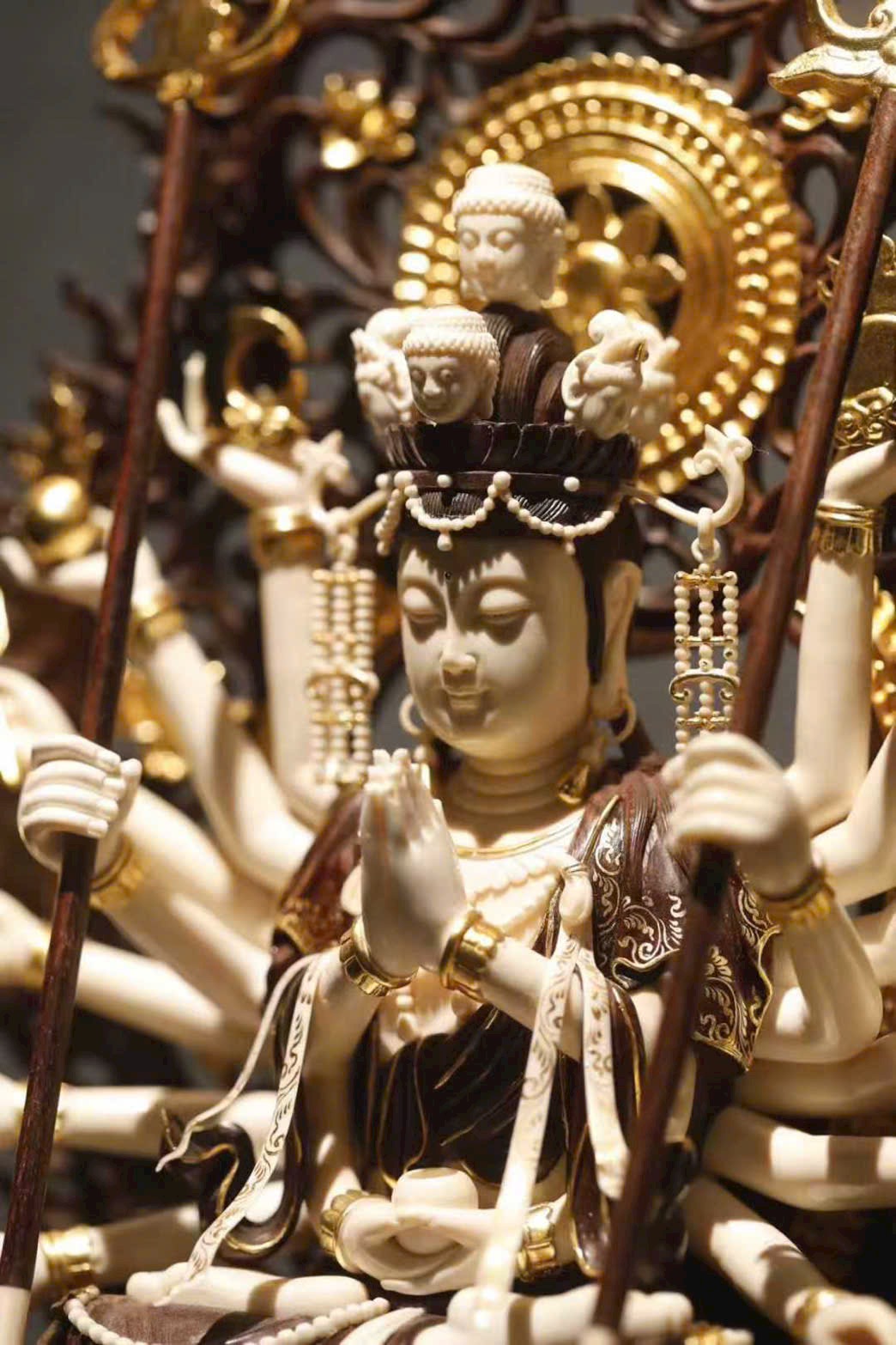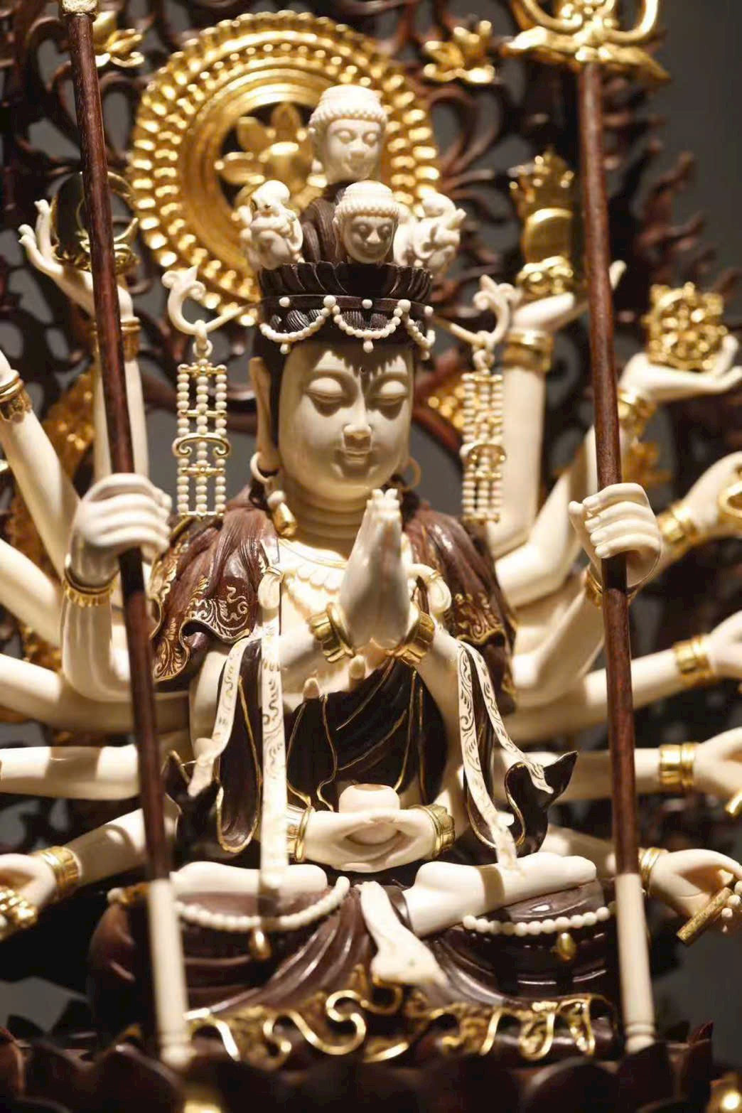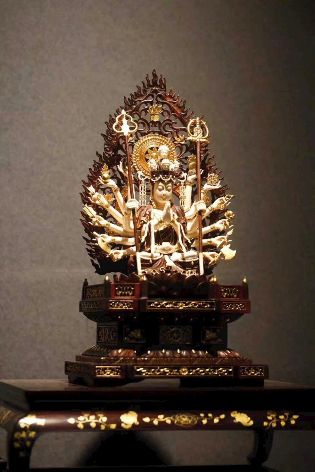 Tác phẩm: “Thiên Thủ Quan Âm” – Tử đàn tiểu diệp kết hợp n.gà voi ma mút