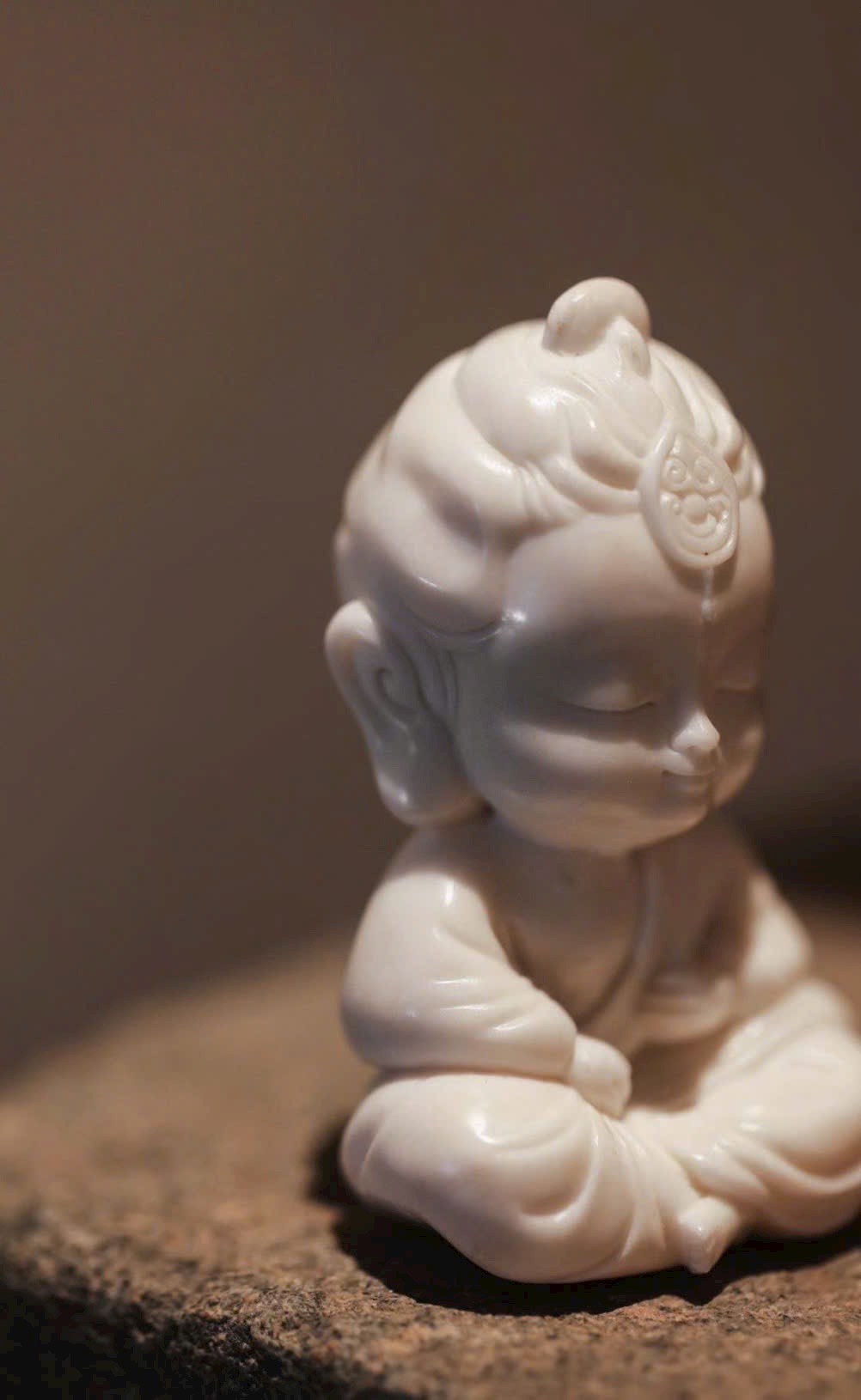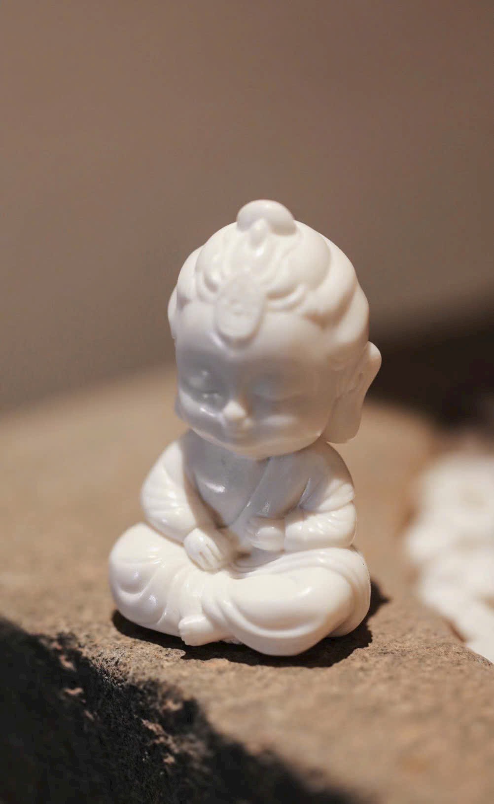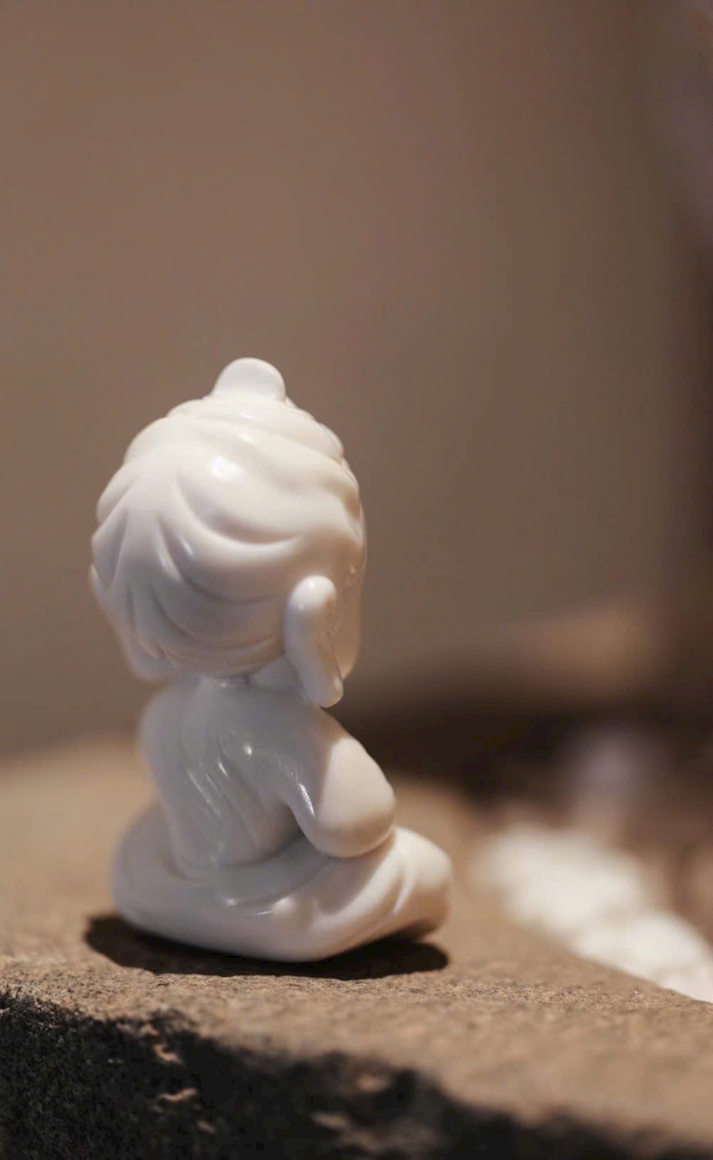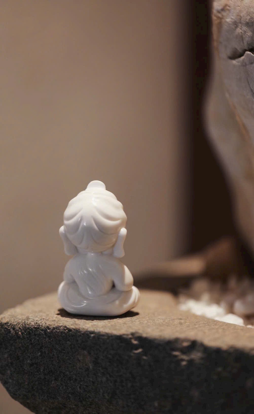 Tác phẩm được điêu khắc tinh xảo, tạo hình tiểu hòa thượng ngồi tĩnh lặng — “ngồi là thiền, đi cũng là thiền”, biểu đạt tâm cảnh an nhiên tĩnh tại.