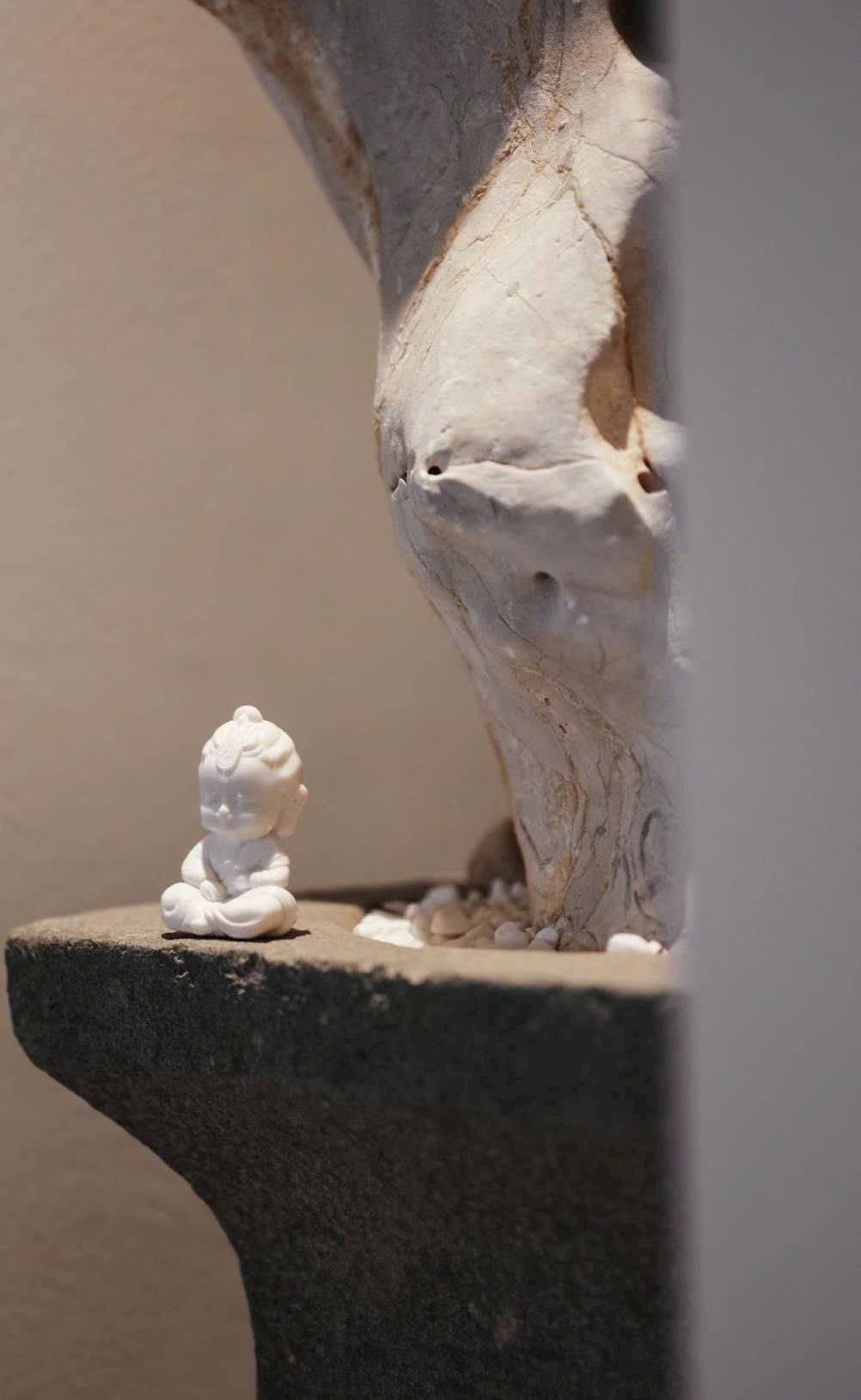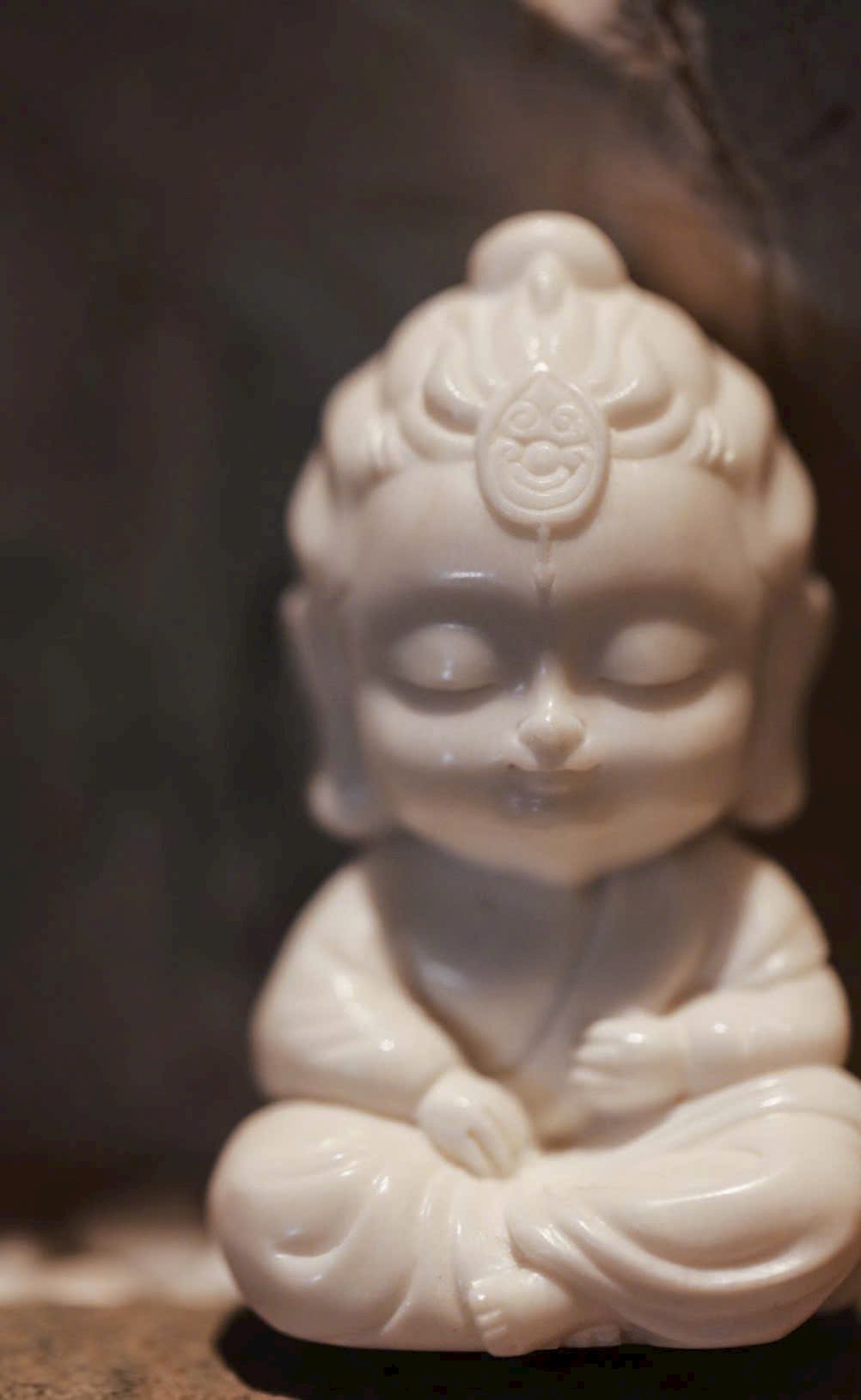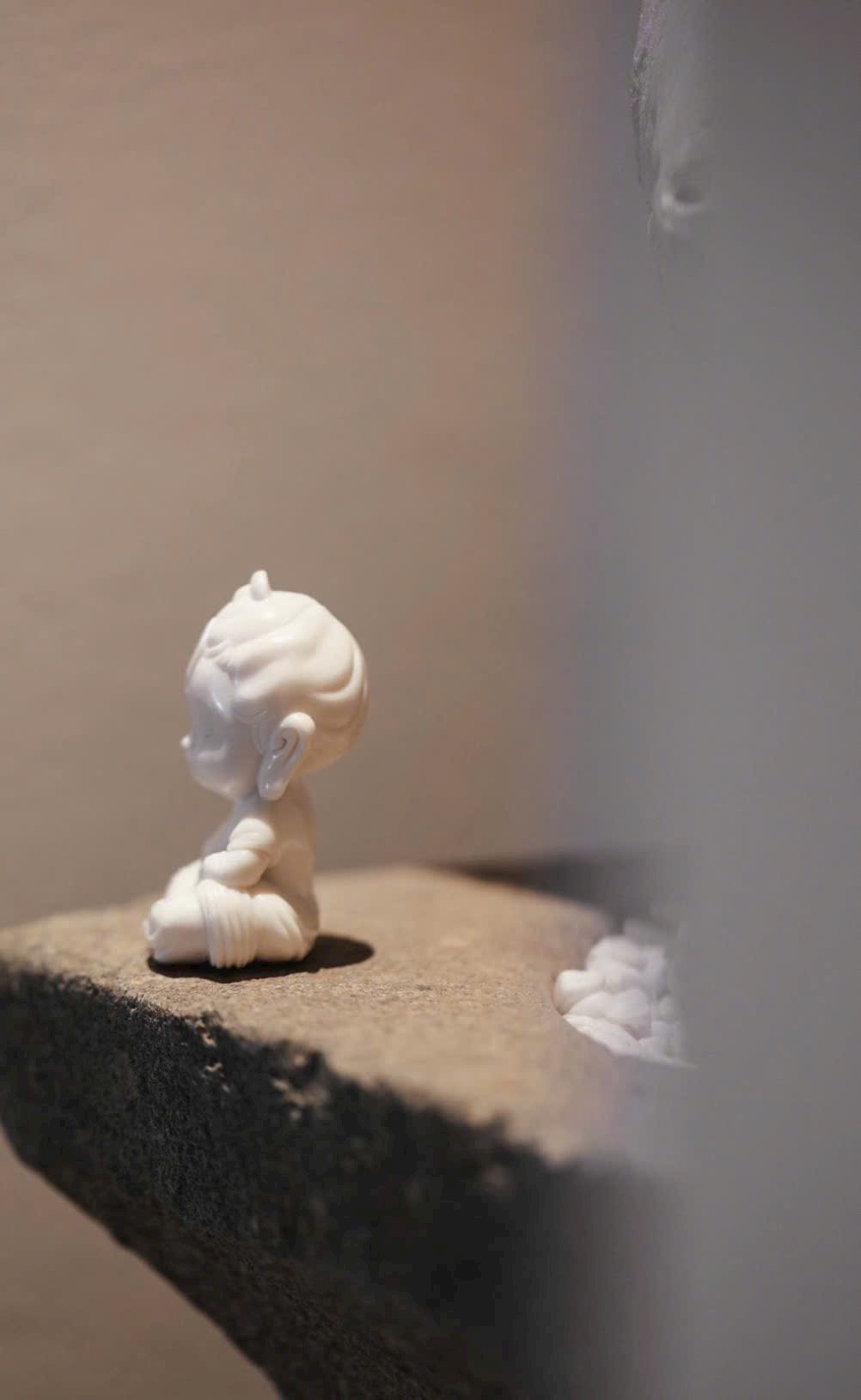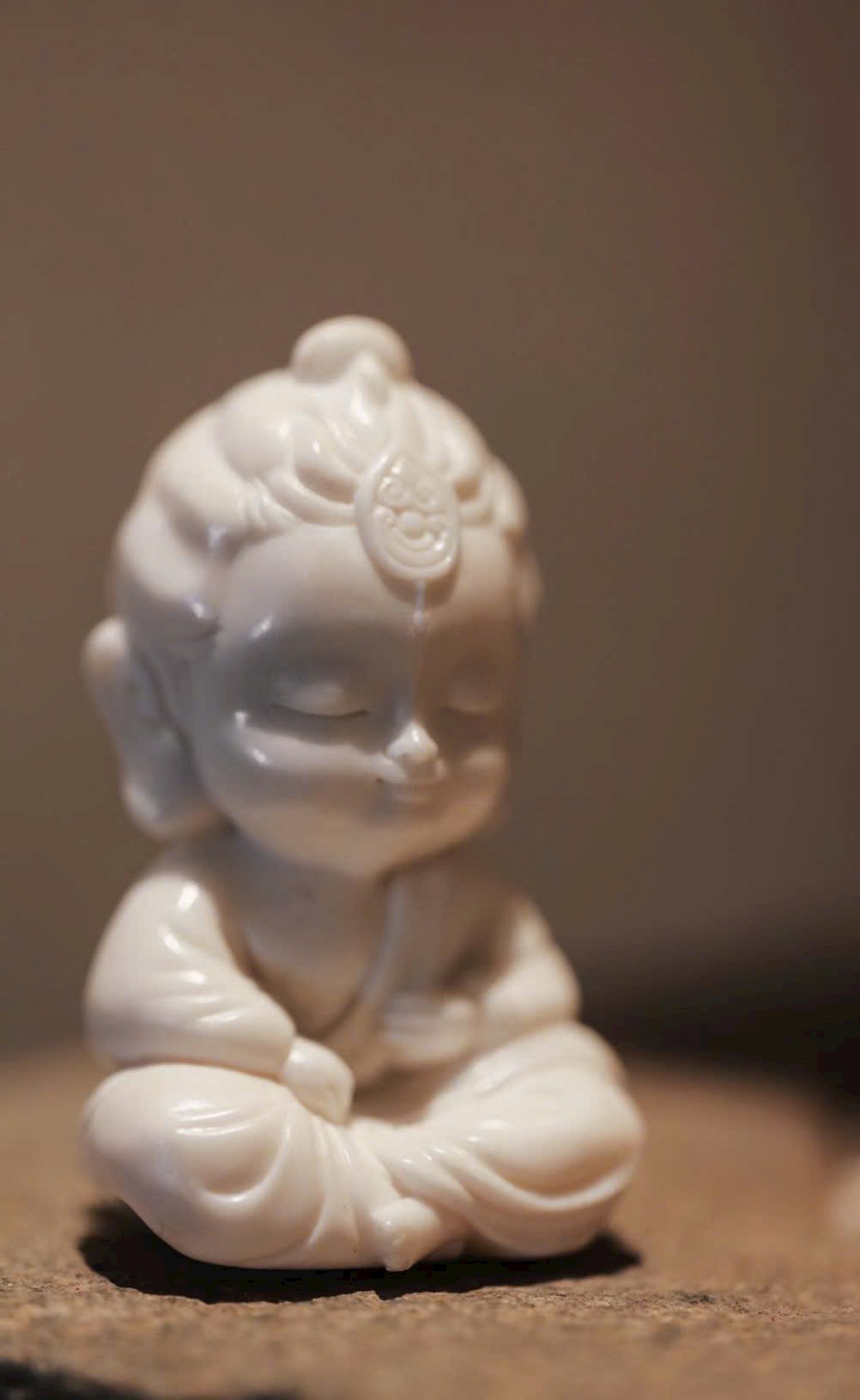 Tác phẩm được điêu khắc tinh xảo, tạo hình tiểu hòa thượng ngồi tĩnh lặng — “ngồi là thiền, đi cũng là thiền”, biểu đạt tâm cảnh an nhiên tĩnh tại.