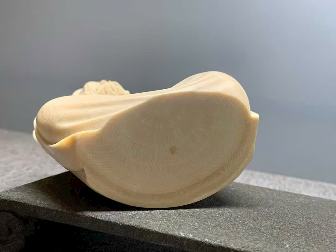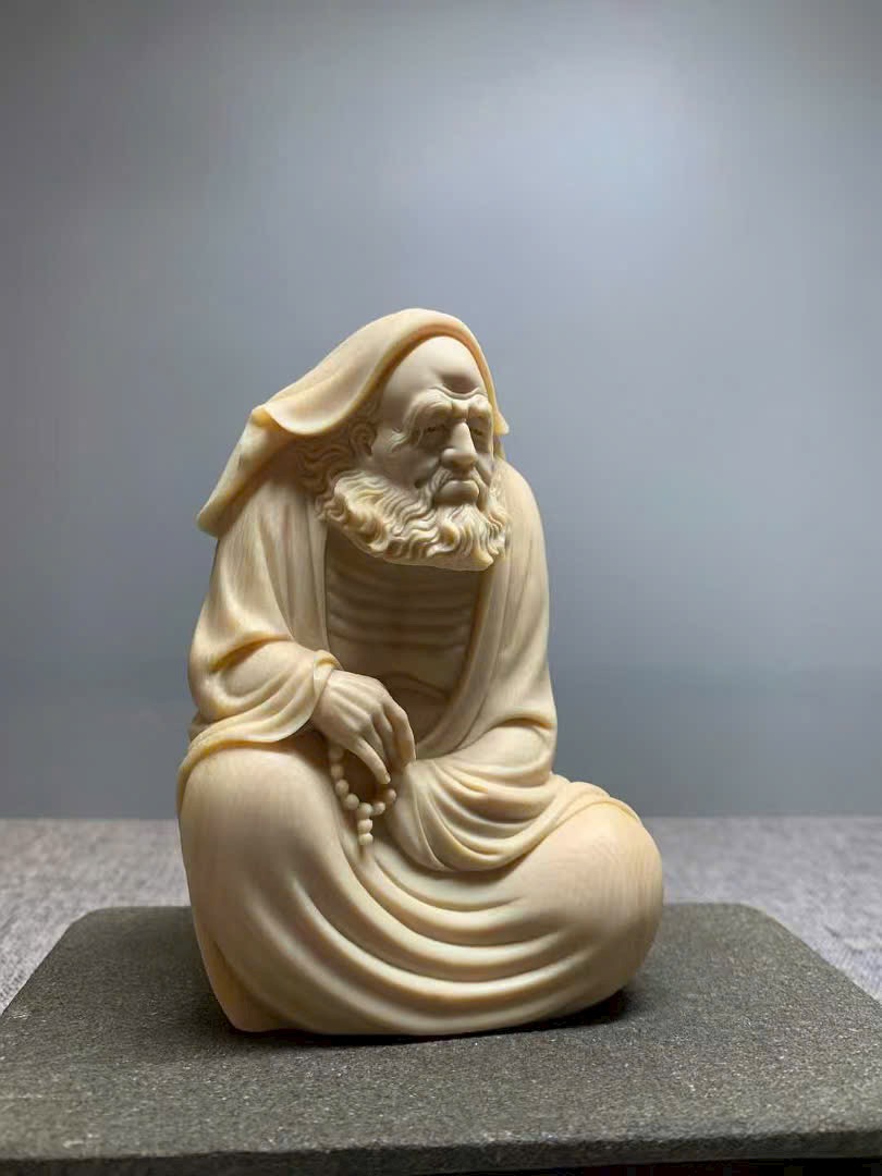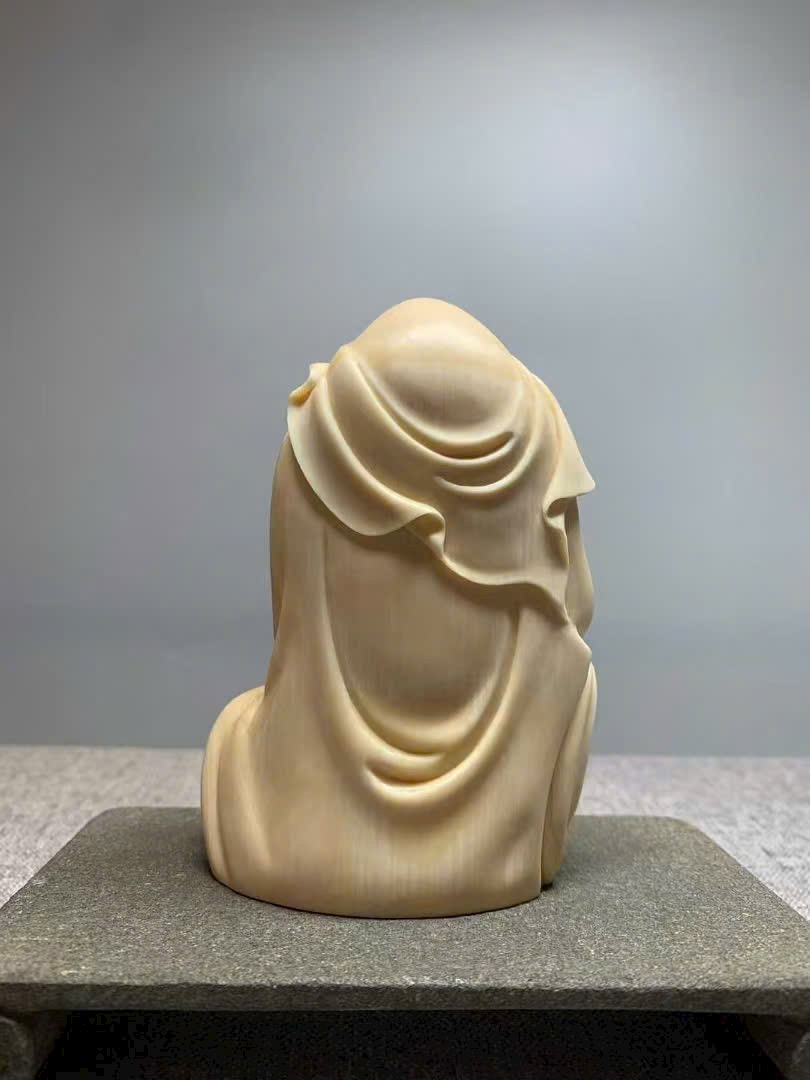Đường nét điêu khắc tinh tế, bố cục hài hòa, biểu đạt ý cảnh tĩnh tâm – giác ngộ – vượt thoát, mang đậm phong vị thiền học phương Đông.
