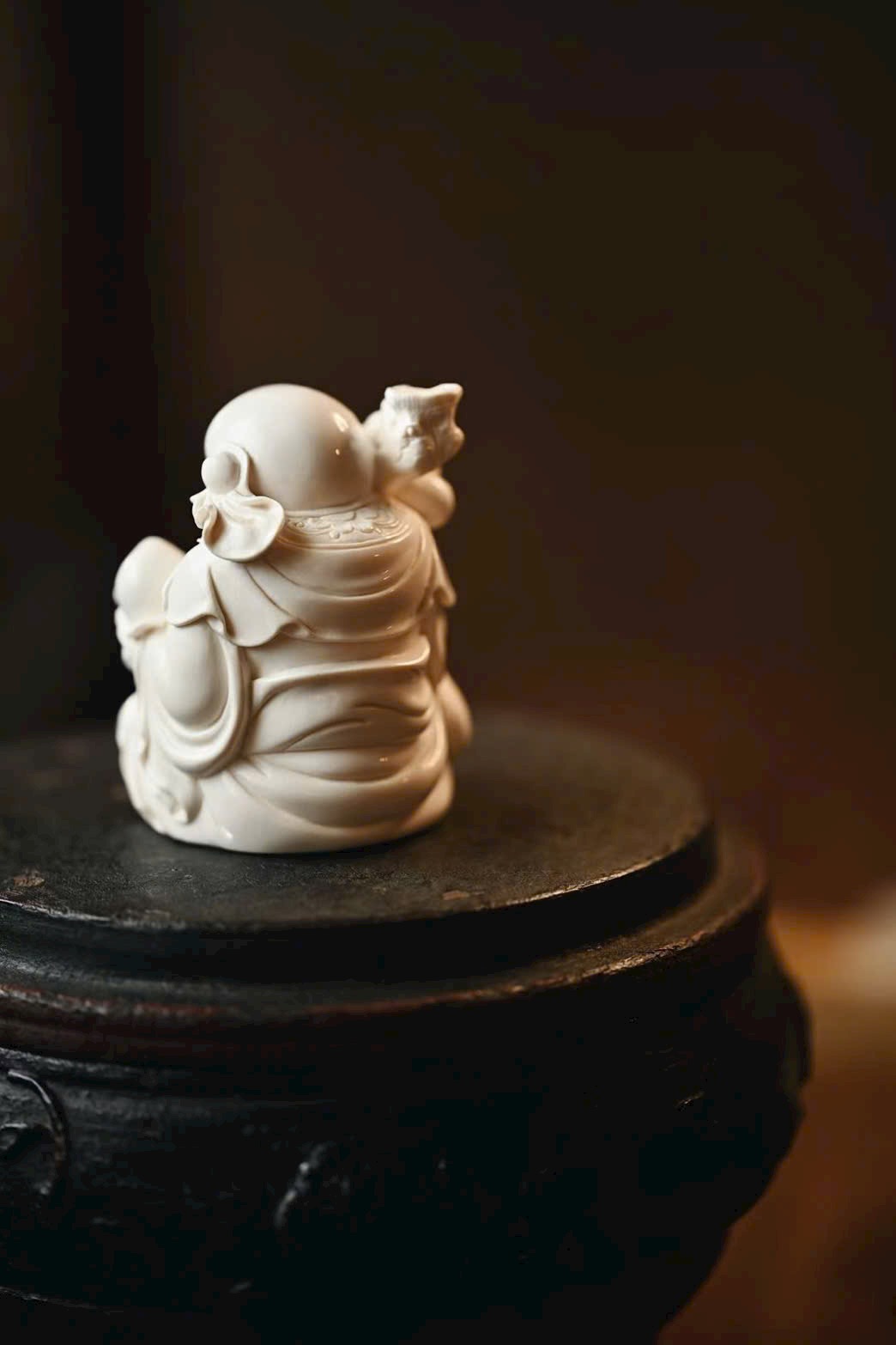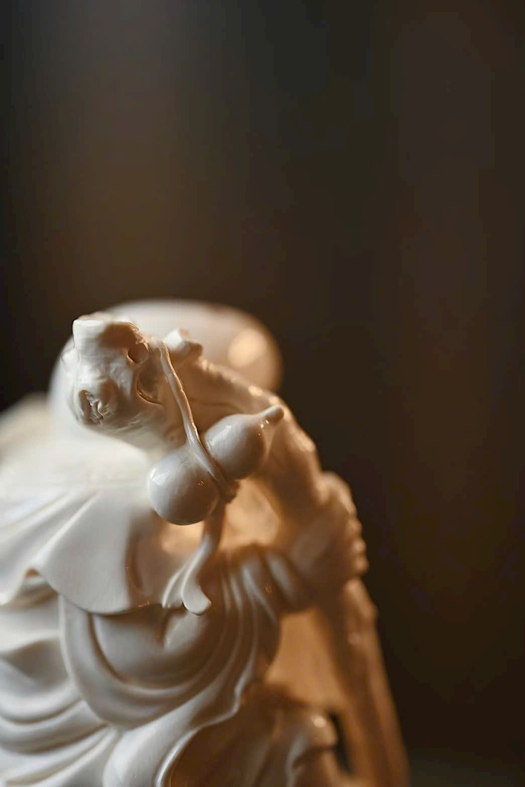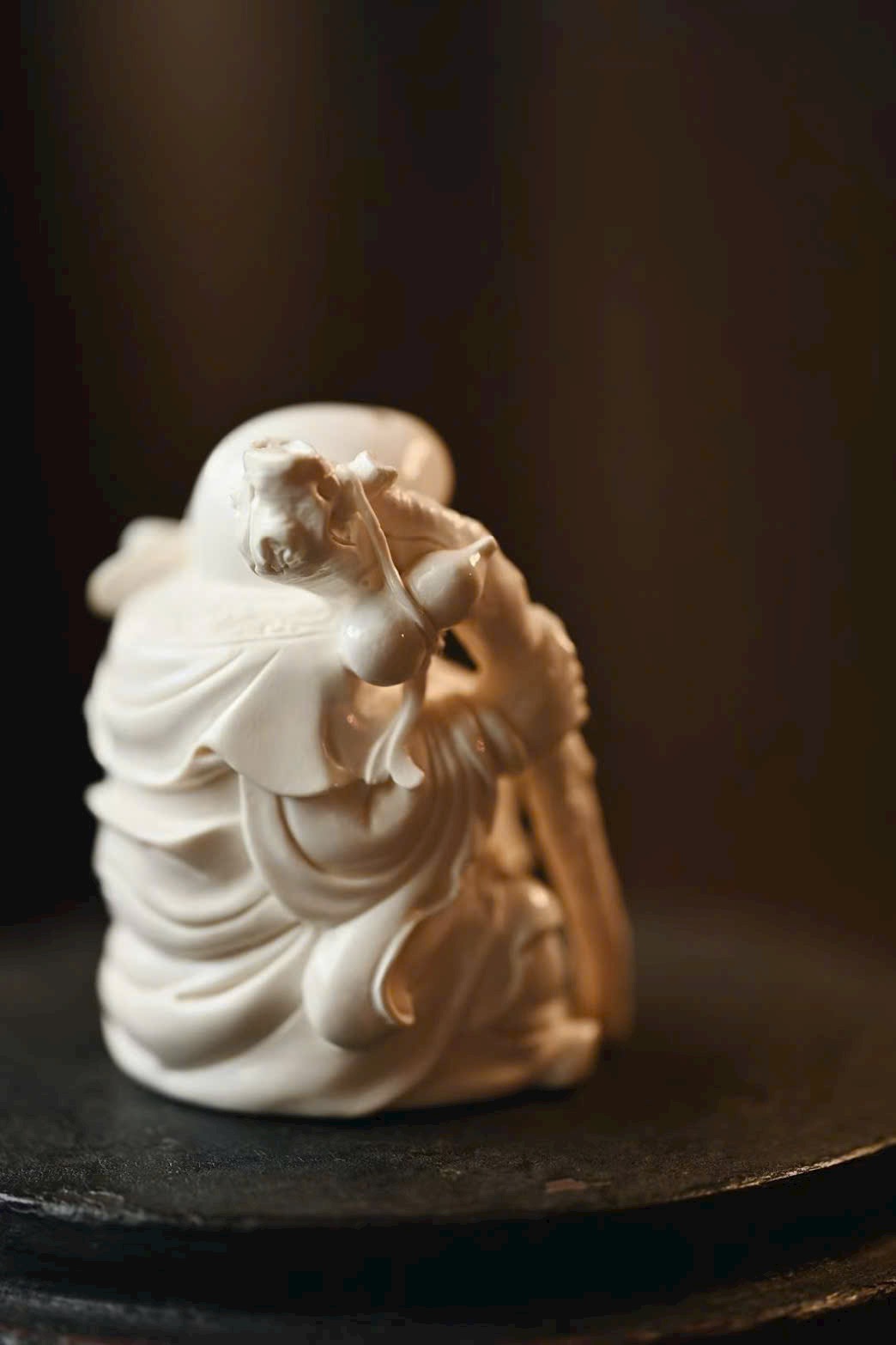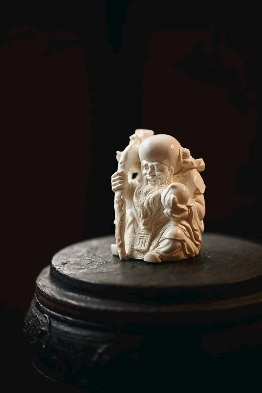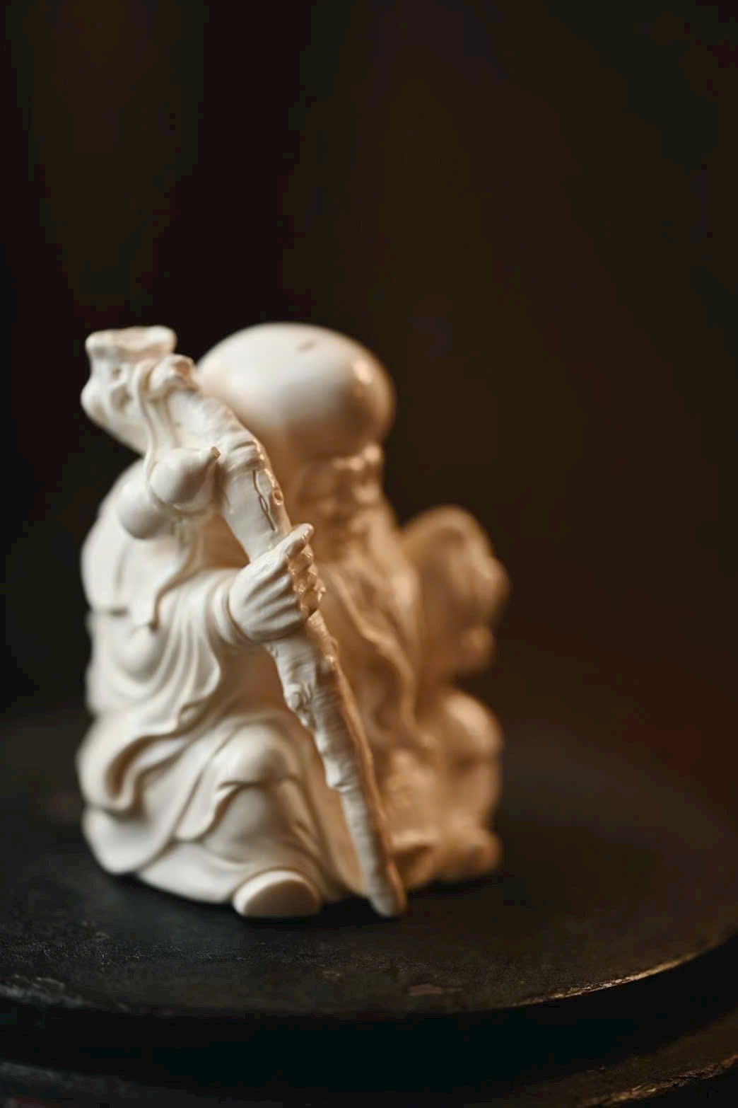 Tượng Thọ Tinh đầu cao trán rộng, khăn buộc sau đầu, mày rậm mắt hiền, râu dài đến ngực, nụ cười hiền hòa. Khoác áo rộng tay, nếp áo mềm mại tự nhiên, tay cầm tiên đào – biểu tượng trường thọ và cát tường. Phù hợp bày trên án thư, mang ý nghĩa may mắn.