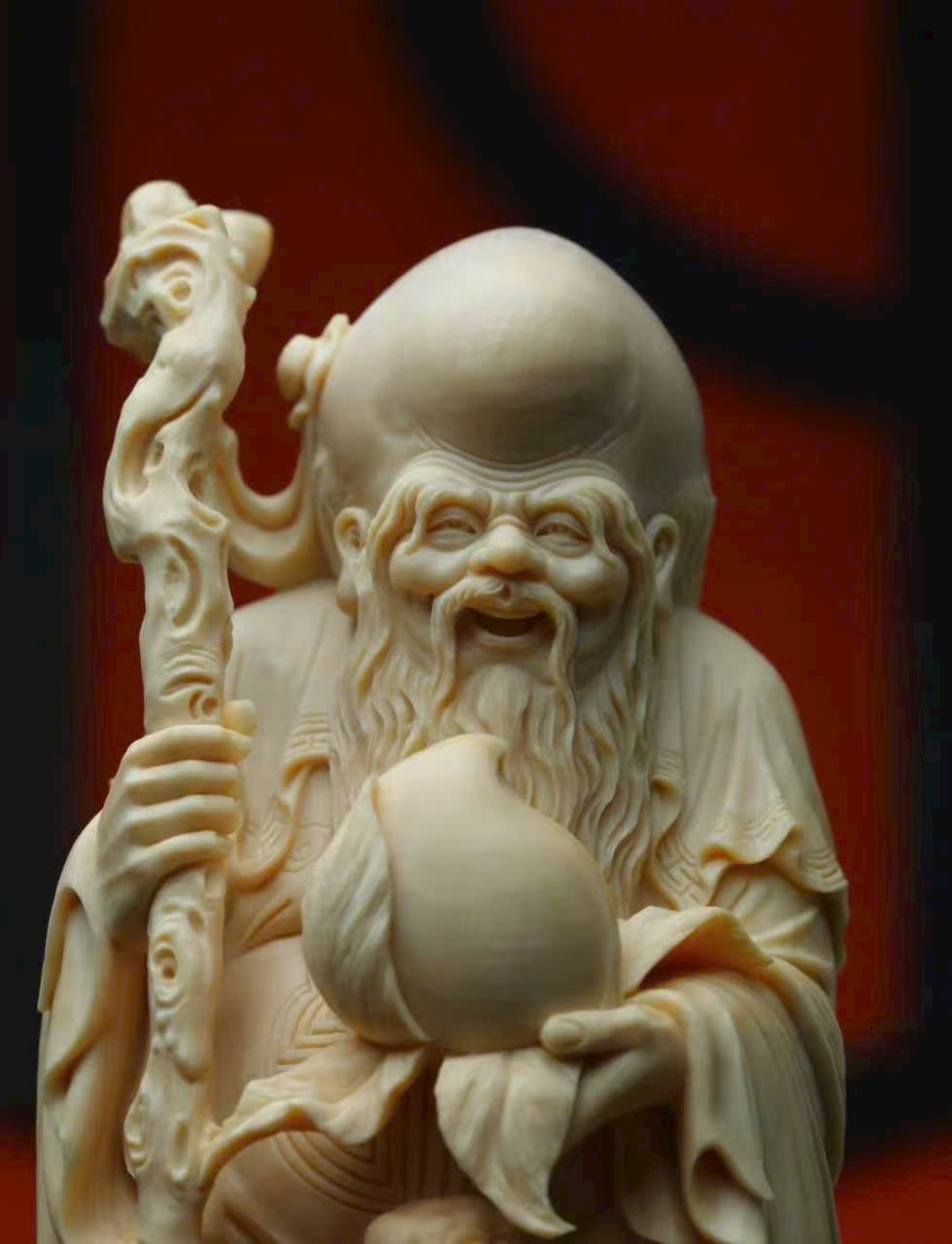 Tác phẩm khắc họa hình tượng Thọ Tinh Công – vị tiên tượng trưng cho trường thọ, phúc lộc và cát tường.