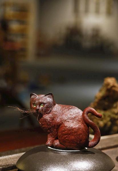 Tử đàn | Thủ công điêu khắc mèo chiêu tài