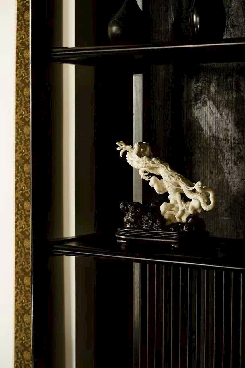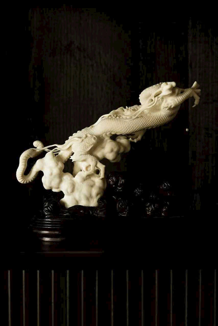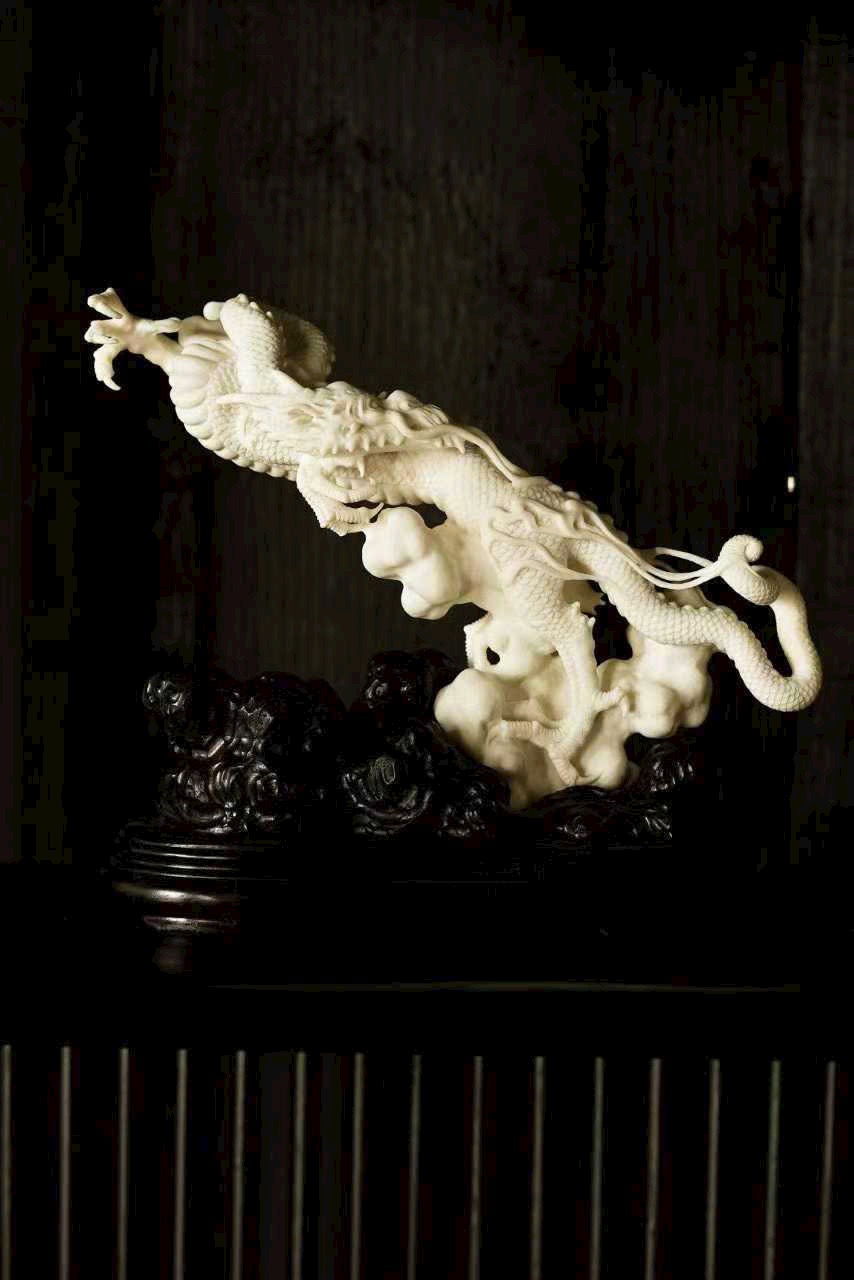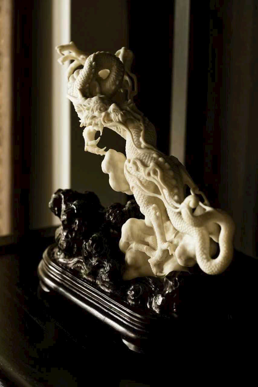 Một nhát đao định càn khôn, toàn bộ thủ công, lấy dao làm bút, hàm chứa khí tượng hồng hoang. Vận dụng kỹ pháp chạm khắc điêu luyện: chính diện thương long phá sóng xuất hải, mắt rực tách mây, râu rồng bay lượn như đai áo gió thổi; đuôi rồng quét biển, vảy giáp sắc sảo vang ngân.