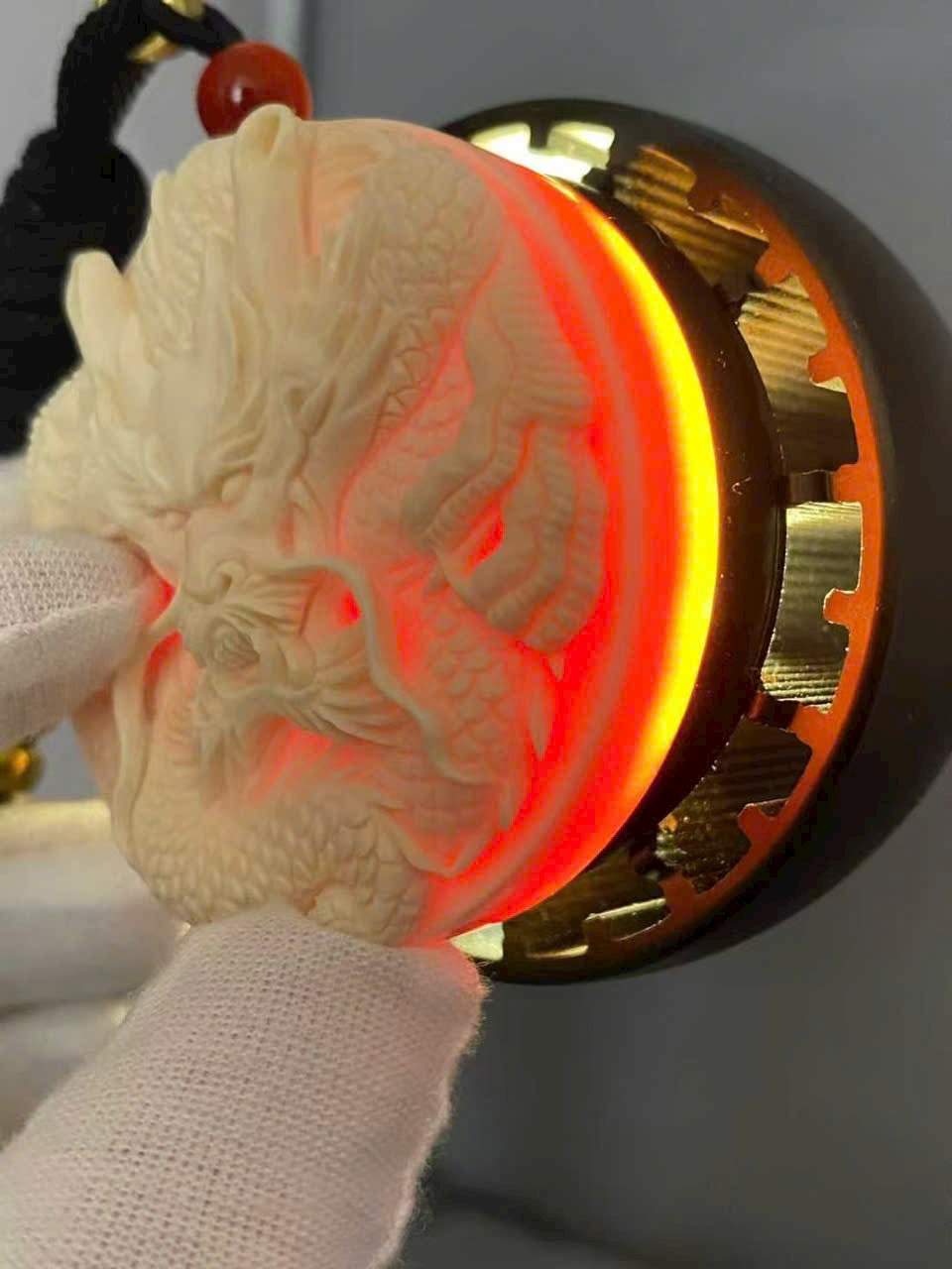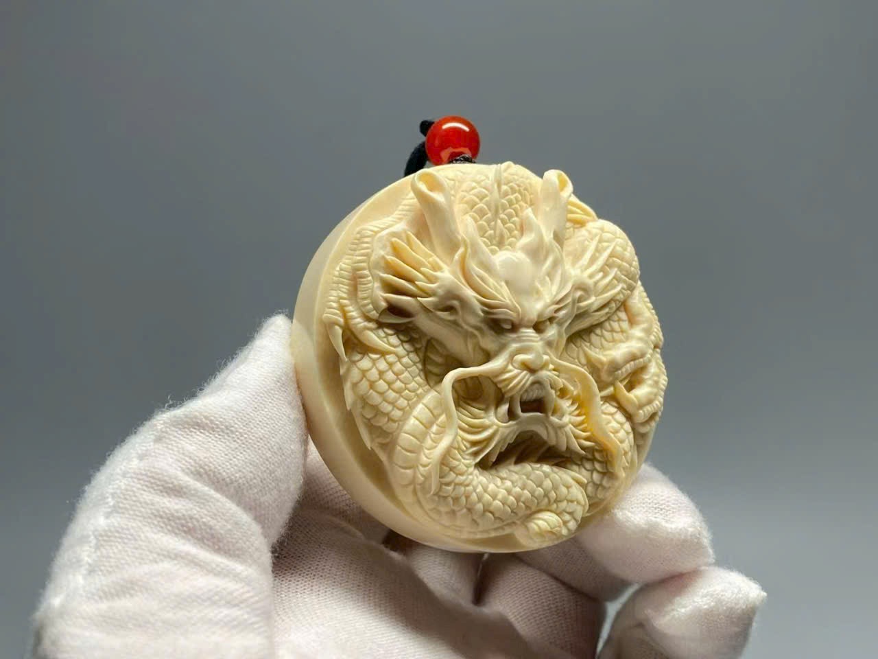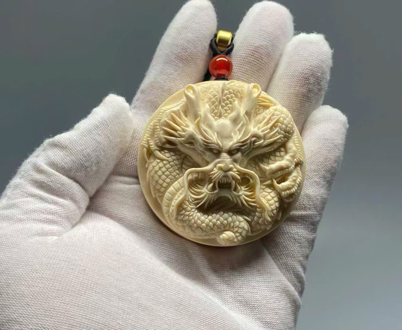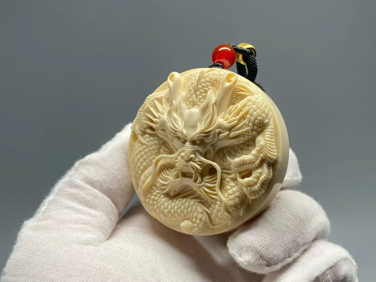 Thủ công chạm khắc tinh xảo, đường nét nhiều tầng lớp sống động. Thương Long uốn lượn bay vút, thân hình mạnh mẽ linh hoạt, vuốt trảo dang rộng đầy uy lực. Tác phẩm khắc tinh tế, có thể mang theo bên mình như linh vật hộ thân, tượng trưng cho khí thế cường long, quyền uy và thịnh vượng.