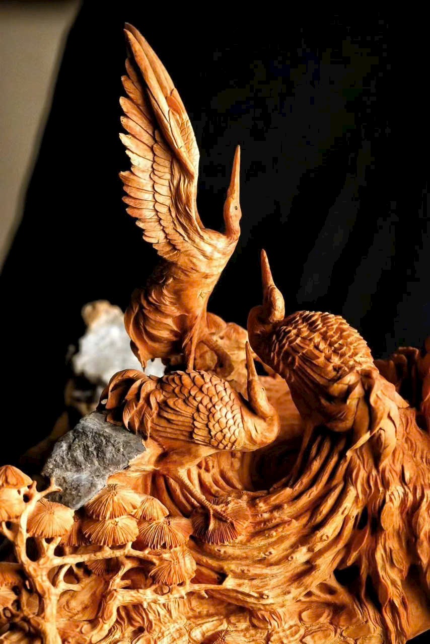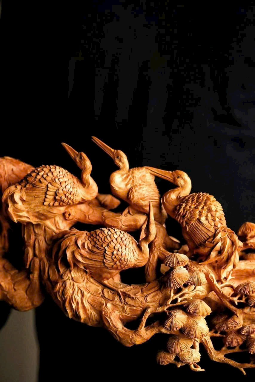 Đường nét chạm khắc tinh tế, thể hiện điềm lành – hạc mang phúc đến,