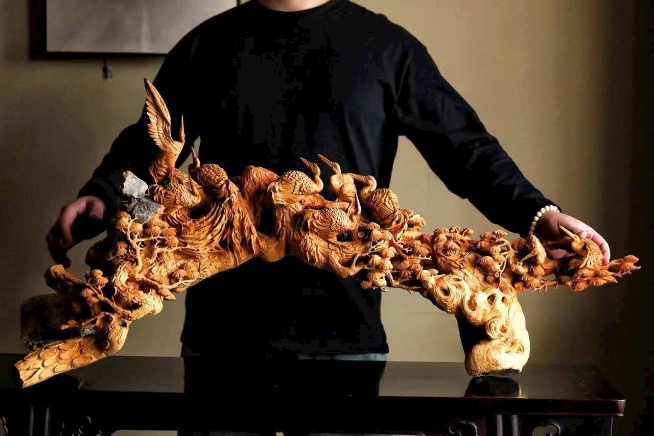 Gỗ hoàng dương | Thuỵ Hạc Cát Tường – Tác phẩm trưng bày cỡ lớn
