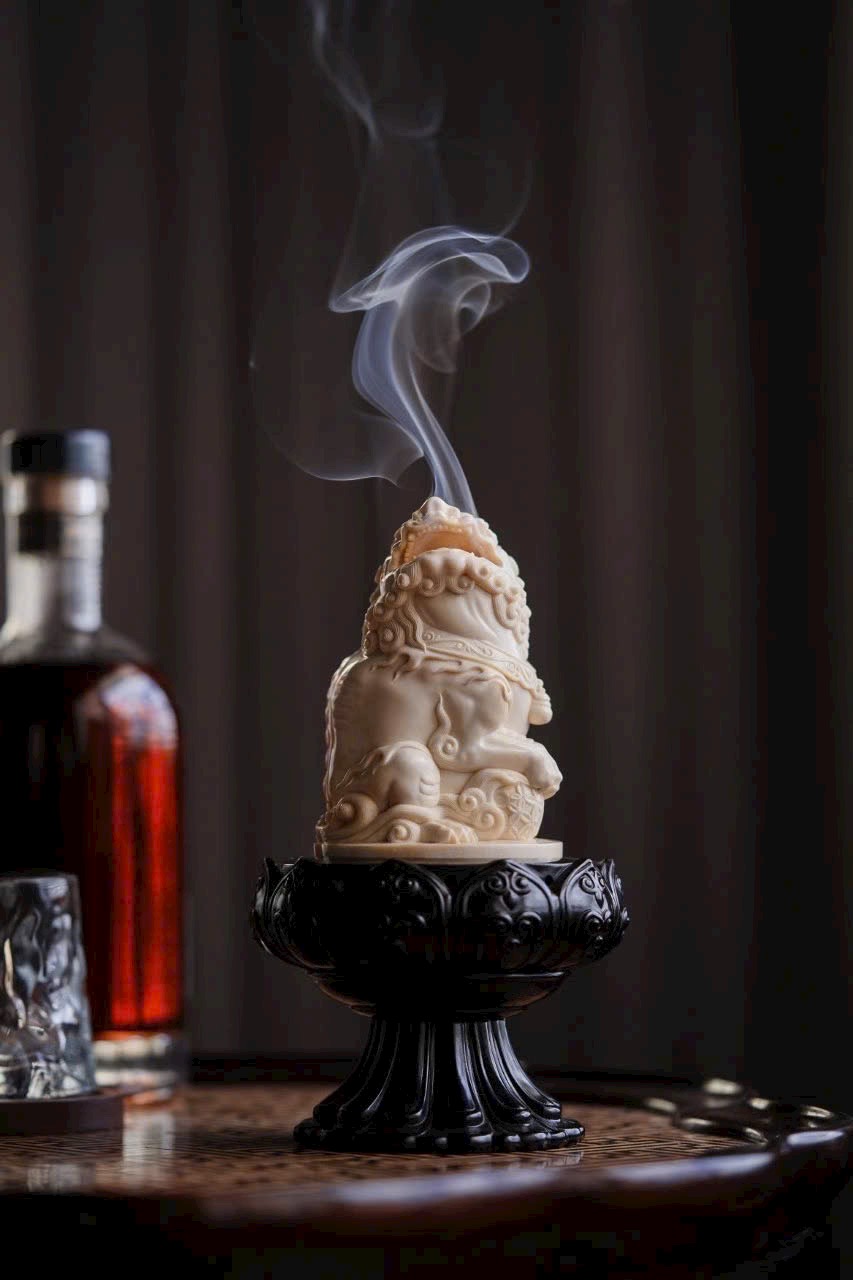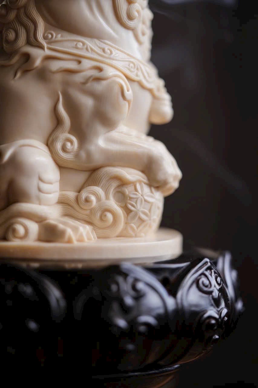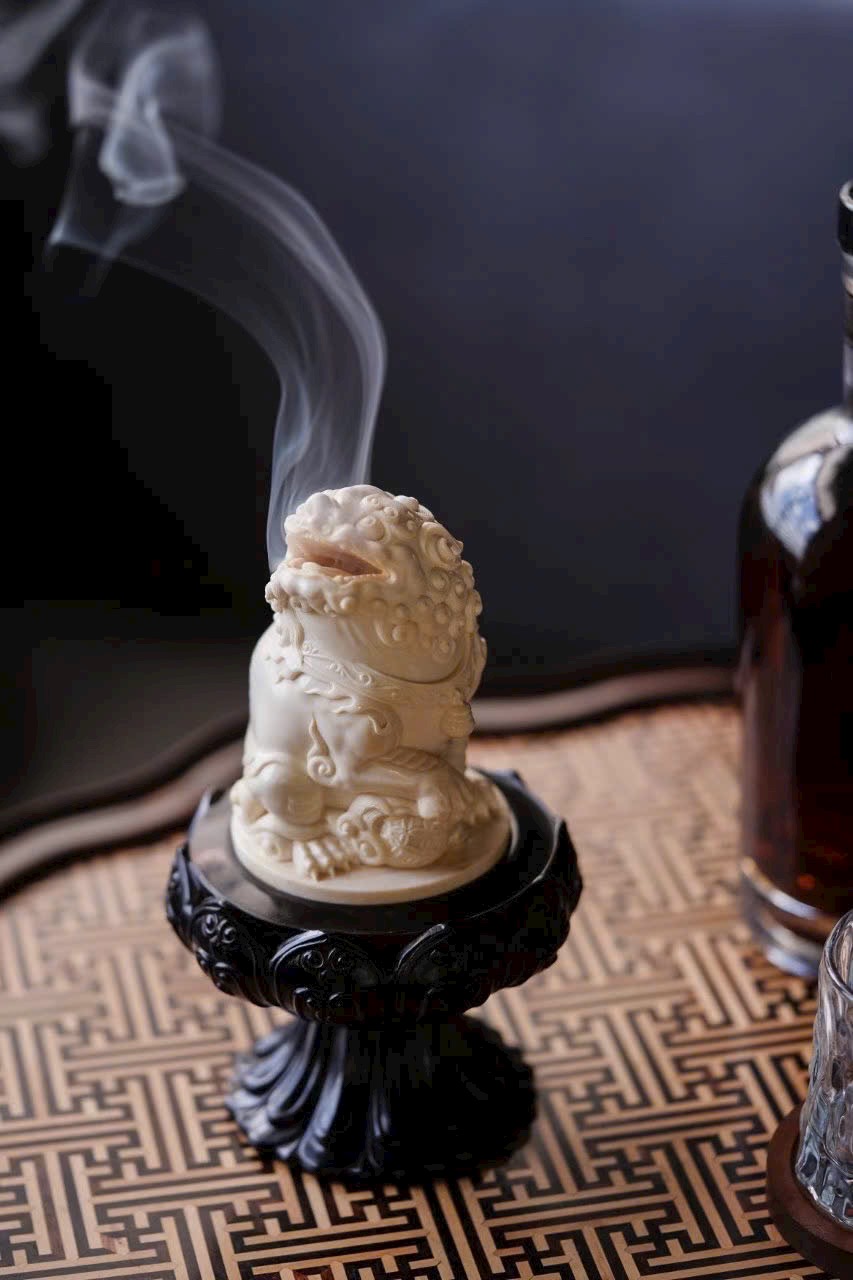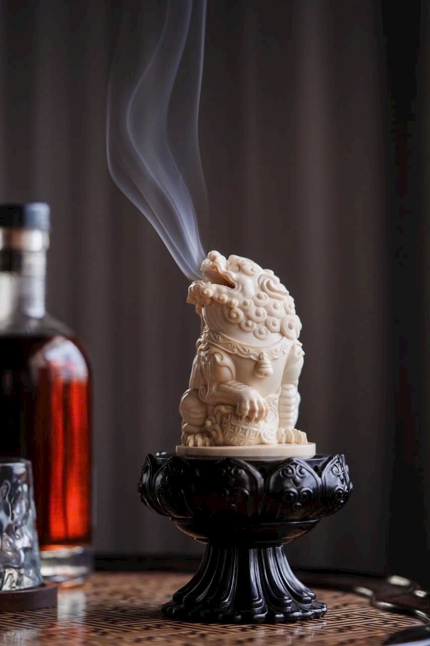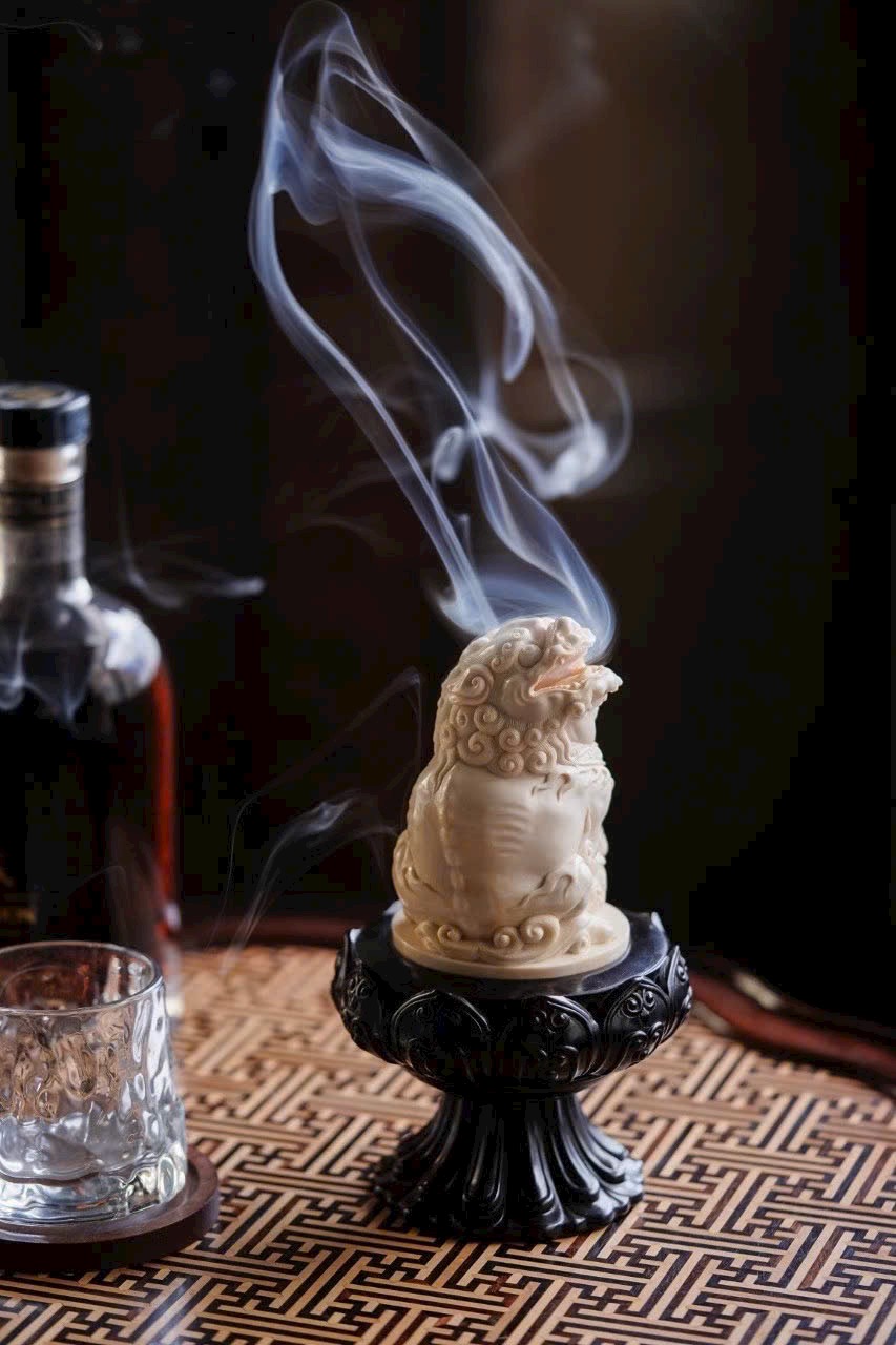 Tượng sư tử cát tường ngẩng đầu hướng trời, bờm xếp lớp như sóng, miệng phun khói nhẹ hóa thành mây lành. Trưng bày trên bàn, khi hương khói lan tỏa như thấy linh thú chiêu phúc, thiền ý sinh khởi.