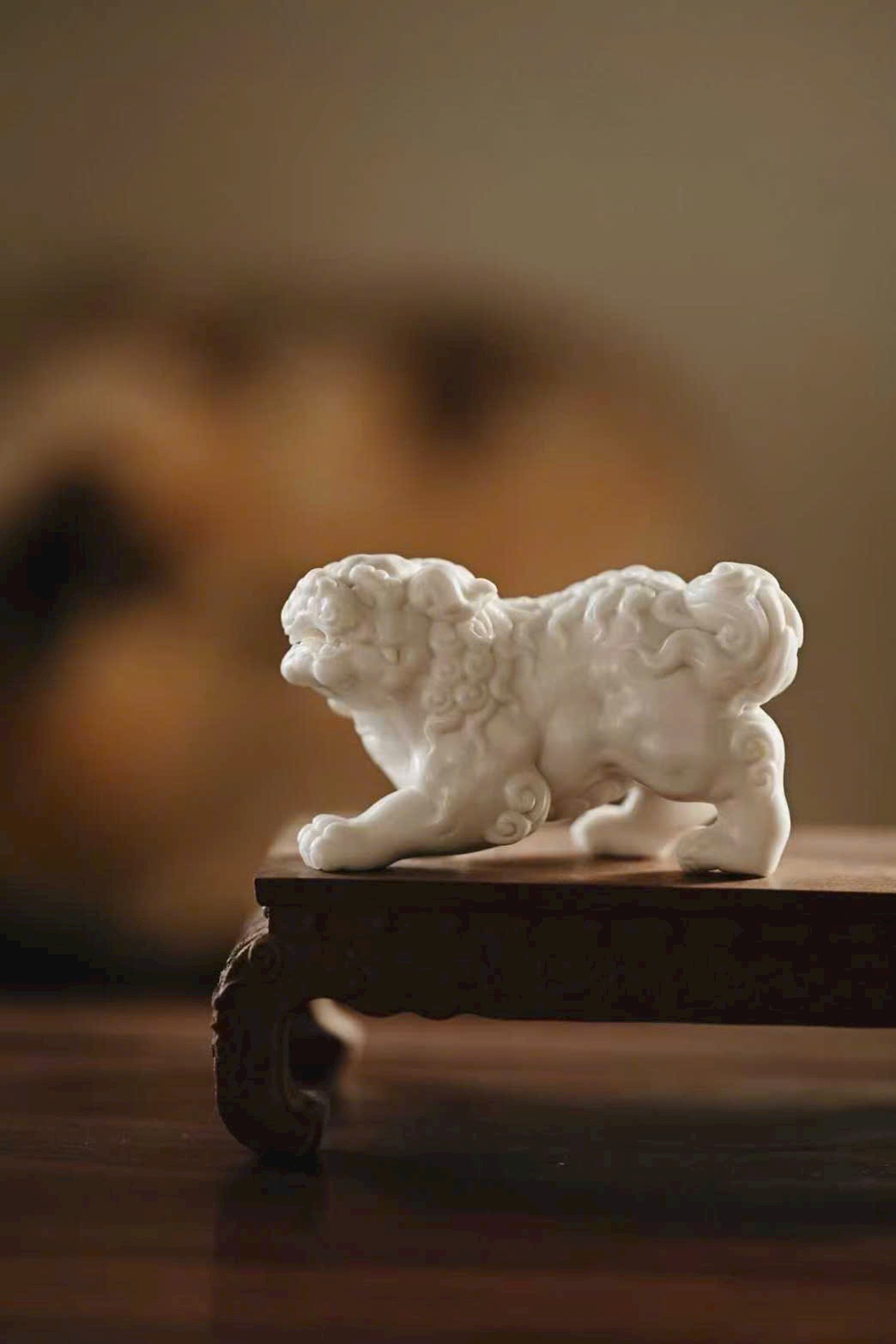 Chọn liệu đồng đều, tự nhiên. Tượng thụy sư nằm phủ phục trên đất, đôi mắt sáng rực có thần. Sống lưng hiện rõ, dáng hình mạnh mẽ, bờm xù tung thoáng, từng sợi đều nhìn thấy rõ. Tuy kích thước nhỏ nhã nhưng khí thế lại vô cùng mạnh mẽ. Có thể đặt trong lòng bàn tay để thưởng chơi, hoặc bày trên án thư để ngắm nhìn.