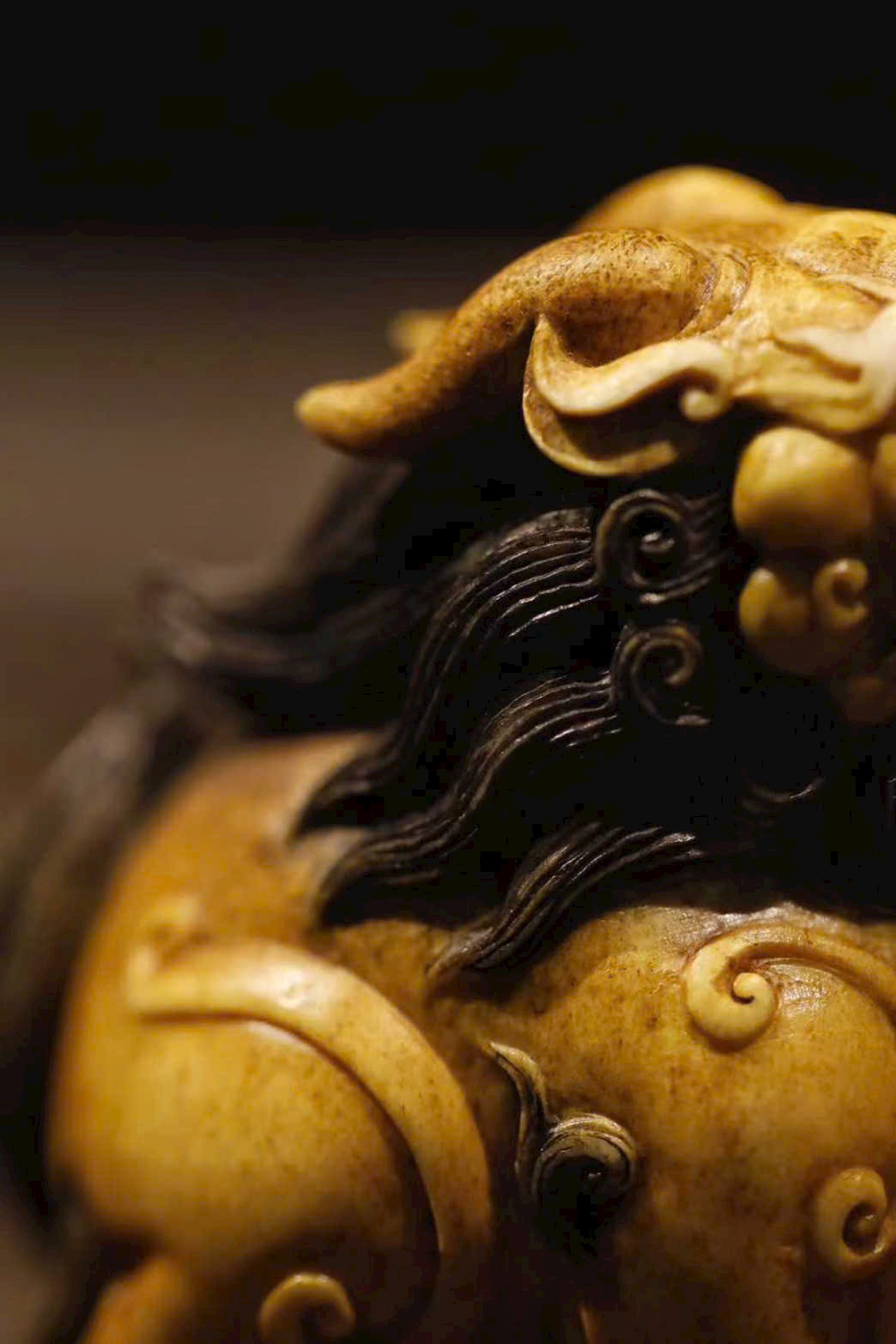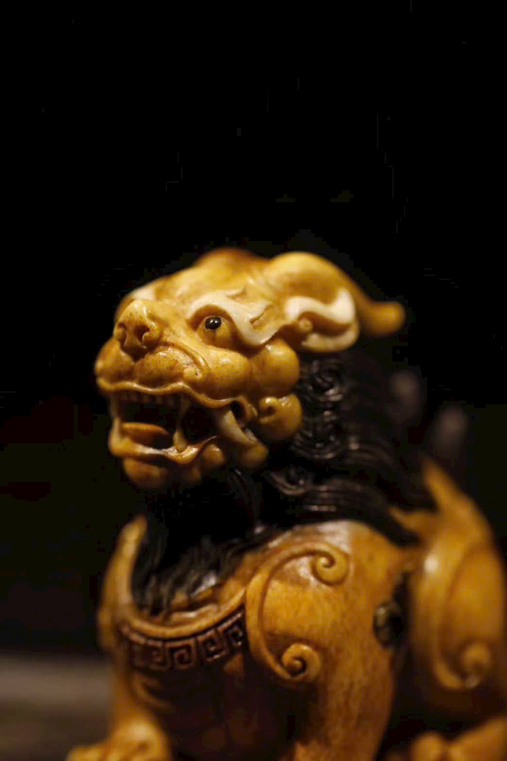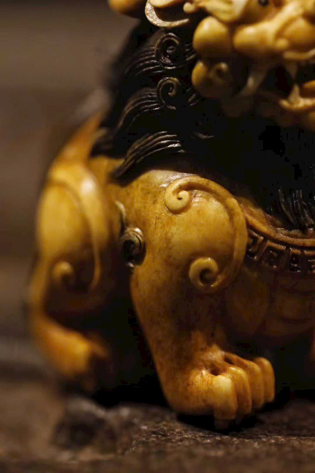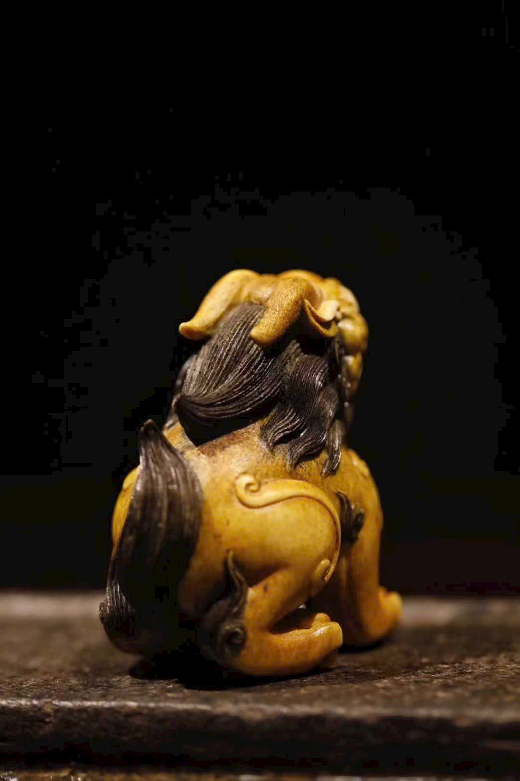 Chạm từ sừng hươu, sắc ấm, vân mịn đẹp. Linh thú đầu oai, thân uy nghi nhưng vẫn đầy thiện ý – phù hợp sưu tầm, trưng bày hoặc cầm tay thưởng ngoạn.