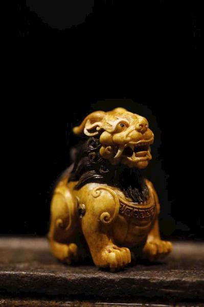 Chạm từ sừng hươu, sắc ấm, vân mịn đẹp. Linh thú đầu oai, thân uy nghi nhưng vẫn đầy thiện ý – phù hợp sưu tầm, trưng bày hoặc cầm tay thưởng ngoạn.