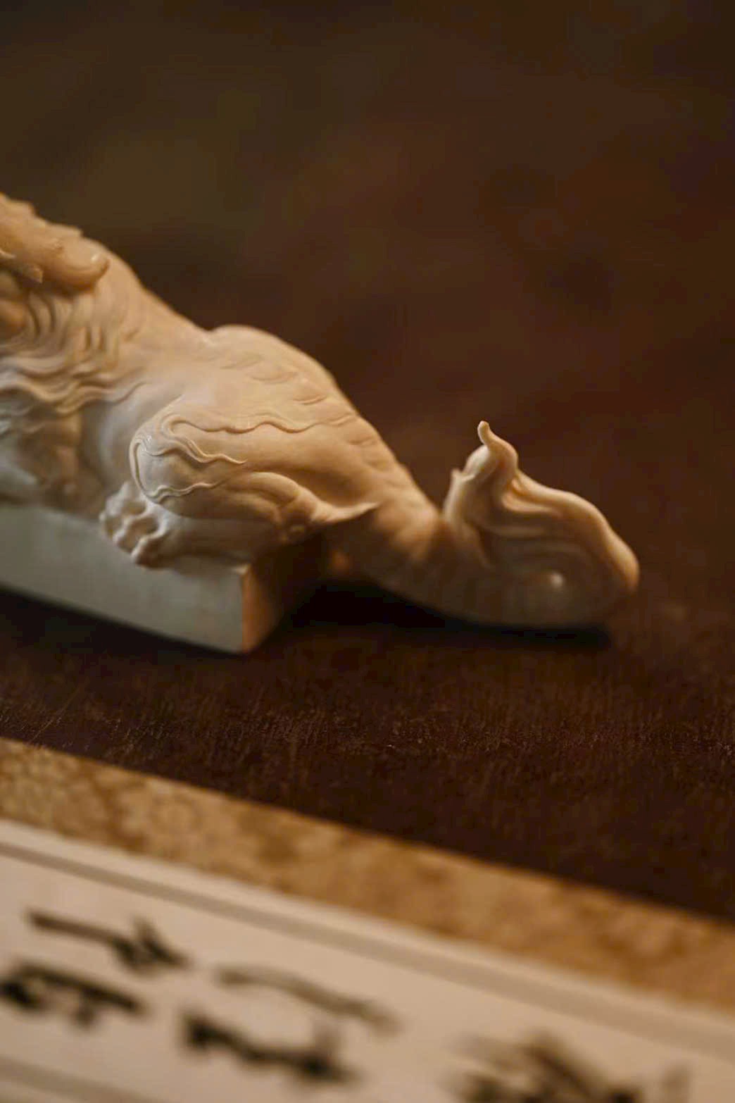 Chất ng.à mịn màng tinh tế, đường khắc sinh động. Thủy Thú có thân hình rắn chắc, móng vuốt khỏe mạnh, khí thế oai nghiêm, nằm phục trên bệ đá, là linh thú cát tường tượng trưng cho bình an và chiêu tài.