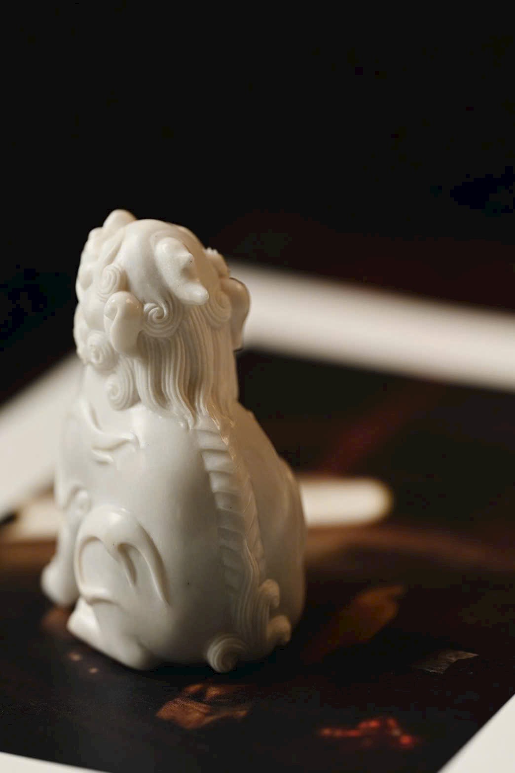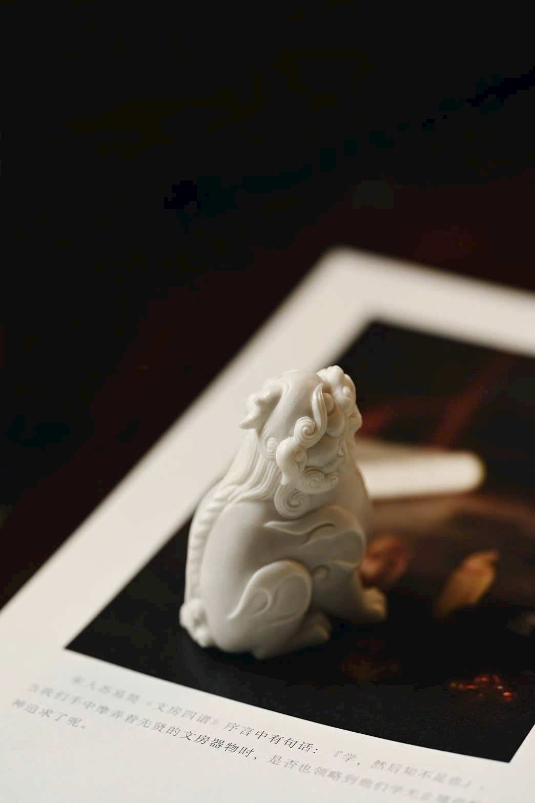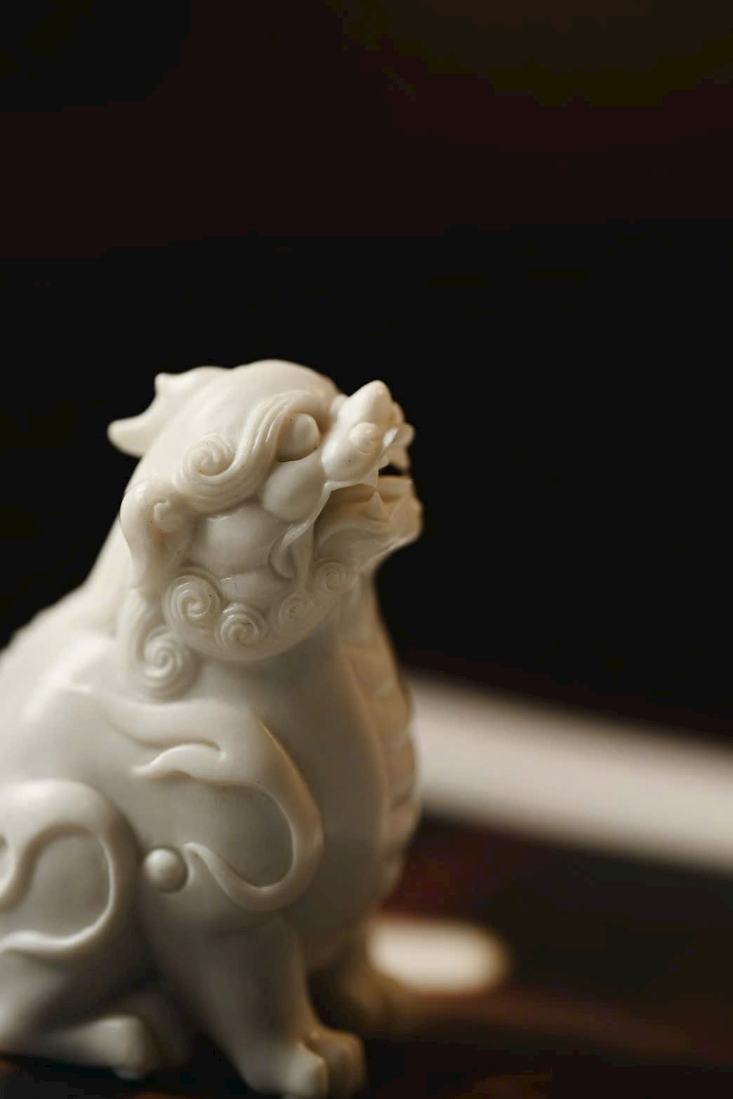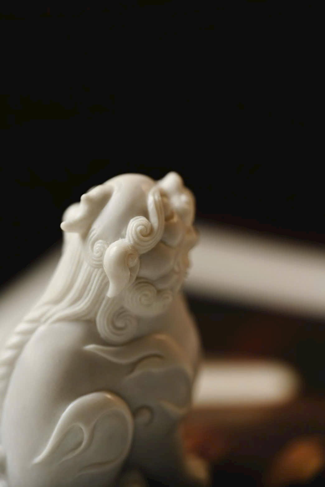 Thụy thú ngẩng cao đầu, ưỡn ngực, dáng ngồi chồm vững chãi. Đôi mắt tròn trợn, miệng rộng hơi hé, thân phủ vân lửa, khí thế mạnh mẽ đầy uy lực. Đặt trên bàn trà làm trà sủng/trang trí trà tịch, nhỏ gọn tinh xảo, rất đáng yêu.