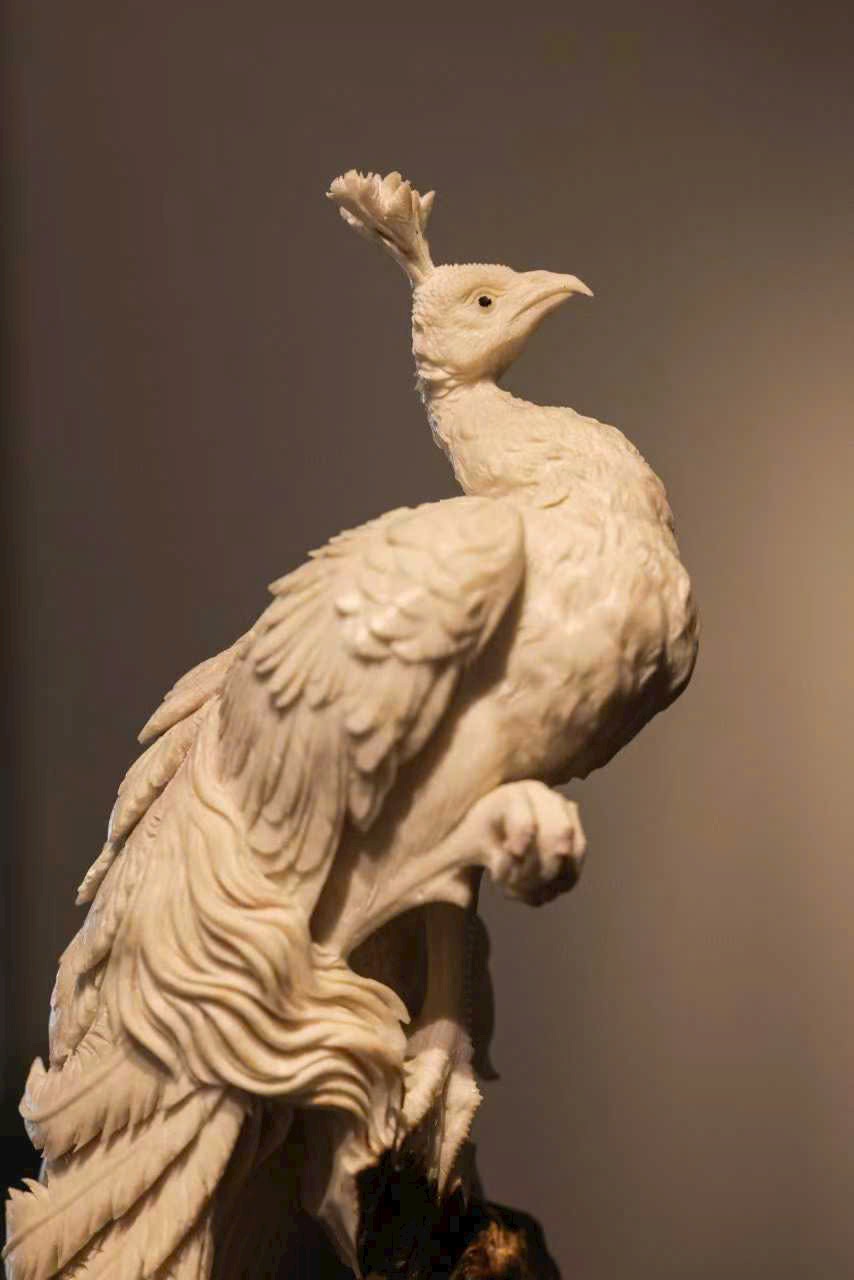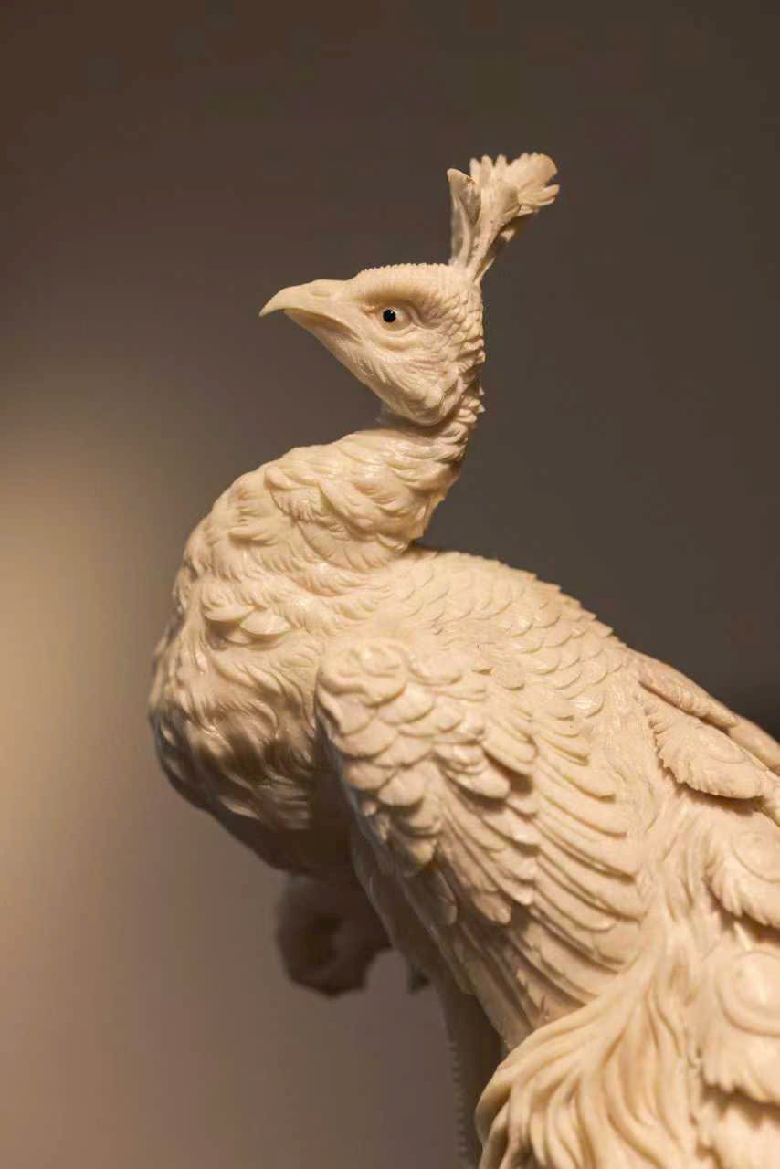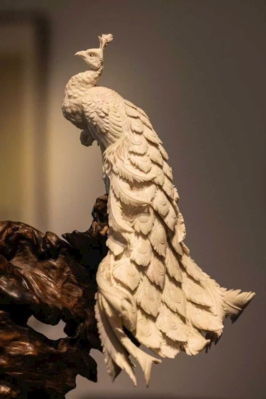 Xuyên mắt tầng tầng nối liền, phô bày trọn vẹn thú vui tự nhiên núi rừng. Chim công với bộ lông vũ lớp lớp, uyển chuyển đứng trên đá thưởng ngoạn, khí chất cao quý trang nhã. Bày nơi án thư tạo cảnh, thanh thoát khoáng đạt, nhìn vào liền sinh cảm giác thư thái.