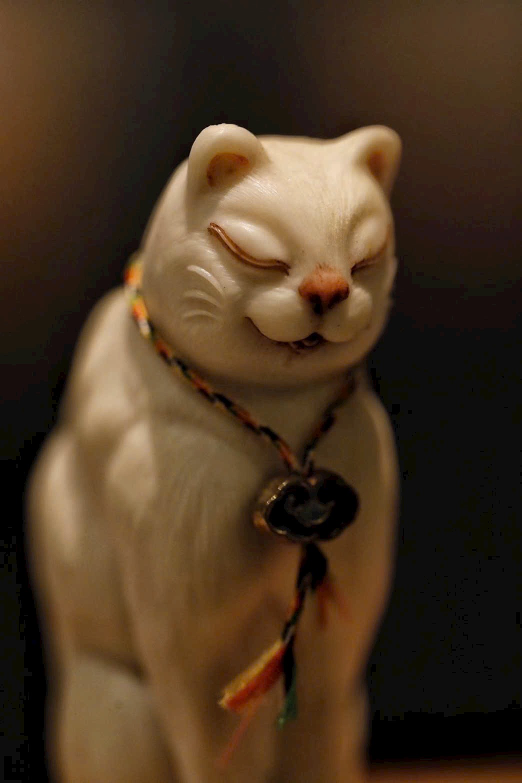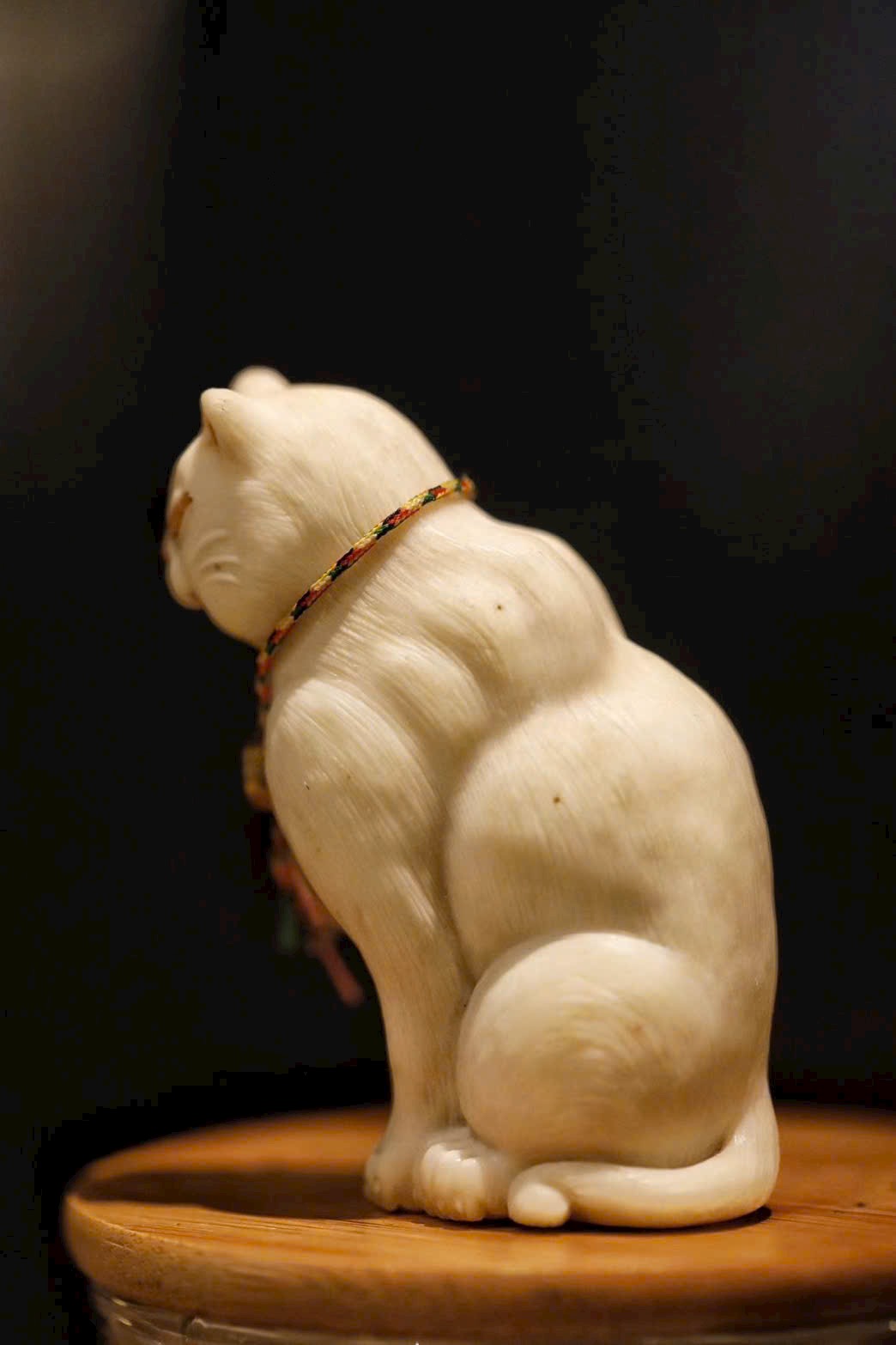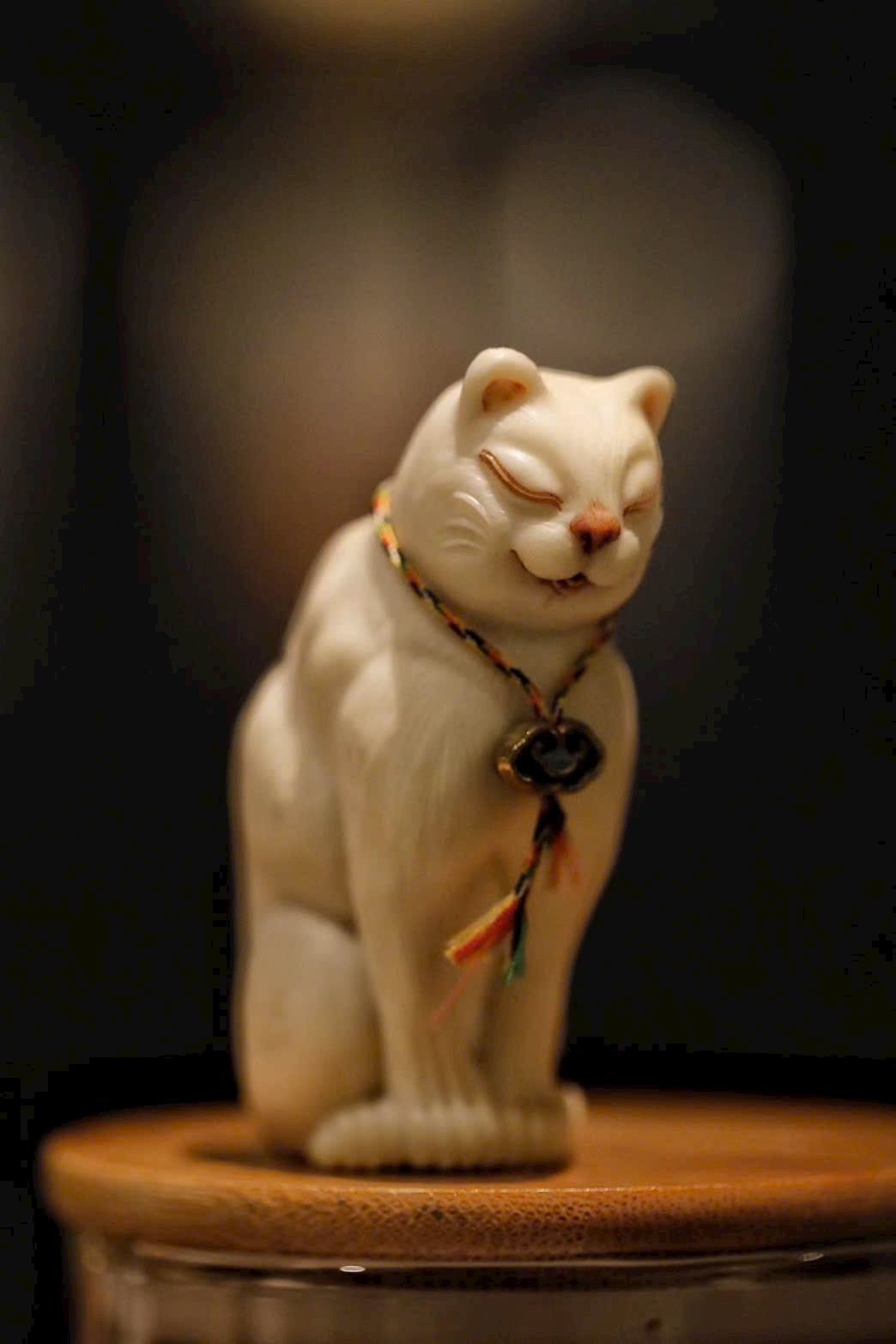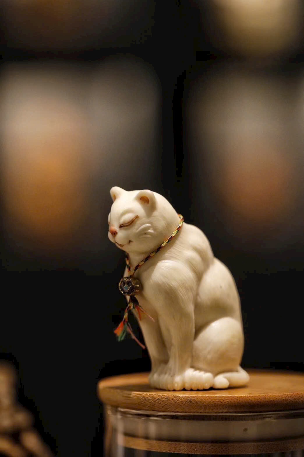 Chế tác từ gạc hươu, chạm khắc thủ công tinh xảo với đường vân lông mèo mịn màng, tự nhiên. Hình dáng chú mèo sinh động, tư thế ngồi chồm gọn gàng, toát lên vẻ ngoan ngoãn dễ thương. Vòng cổ điểm xuyết thêm nét tinh nghịch đáng yêu. Phù hợp đặt trên bàn trà hay góc làm việc, mang lại cảm giác vui tươi và thi vị cho đời sống thường nhật.