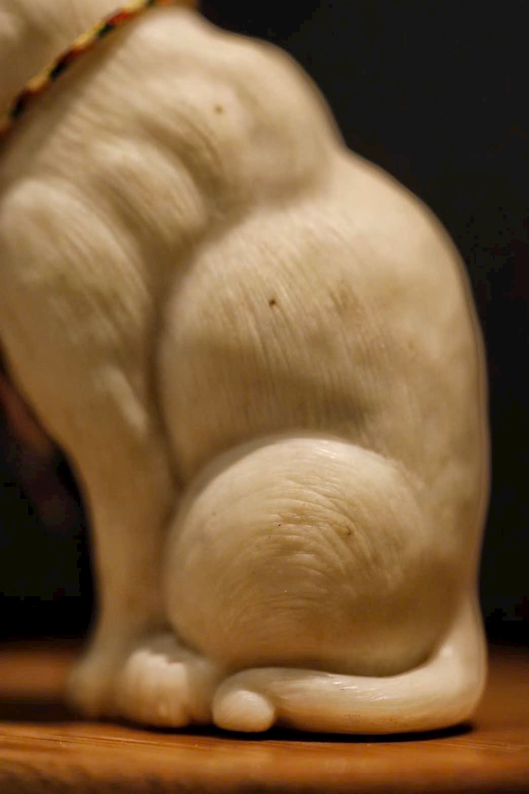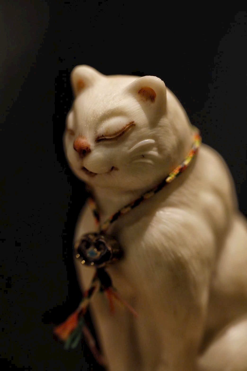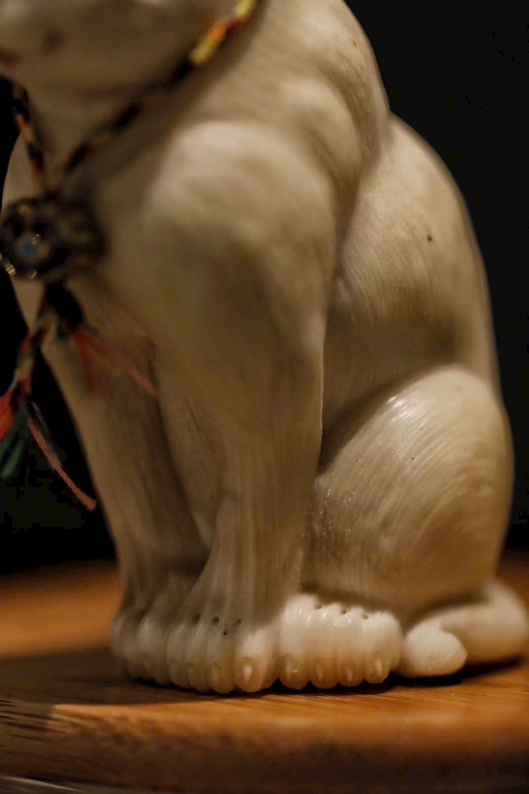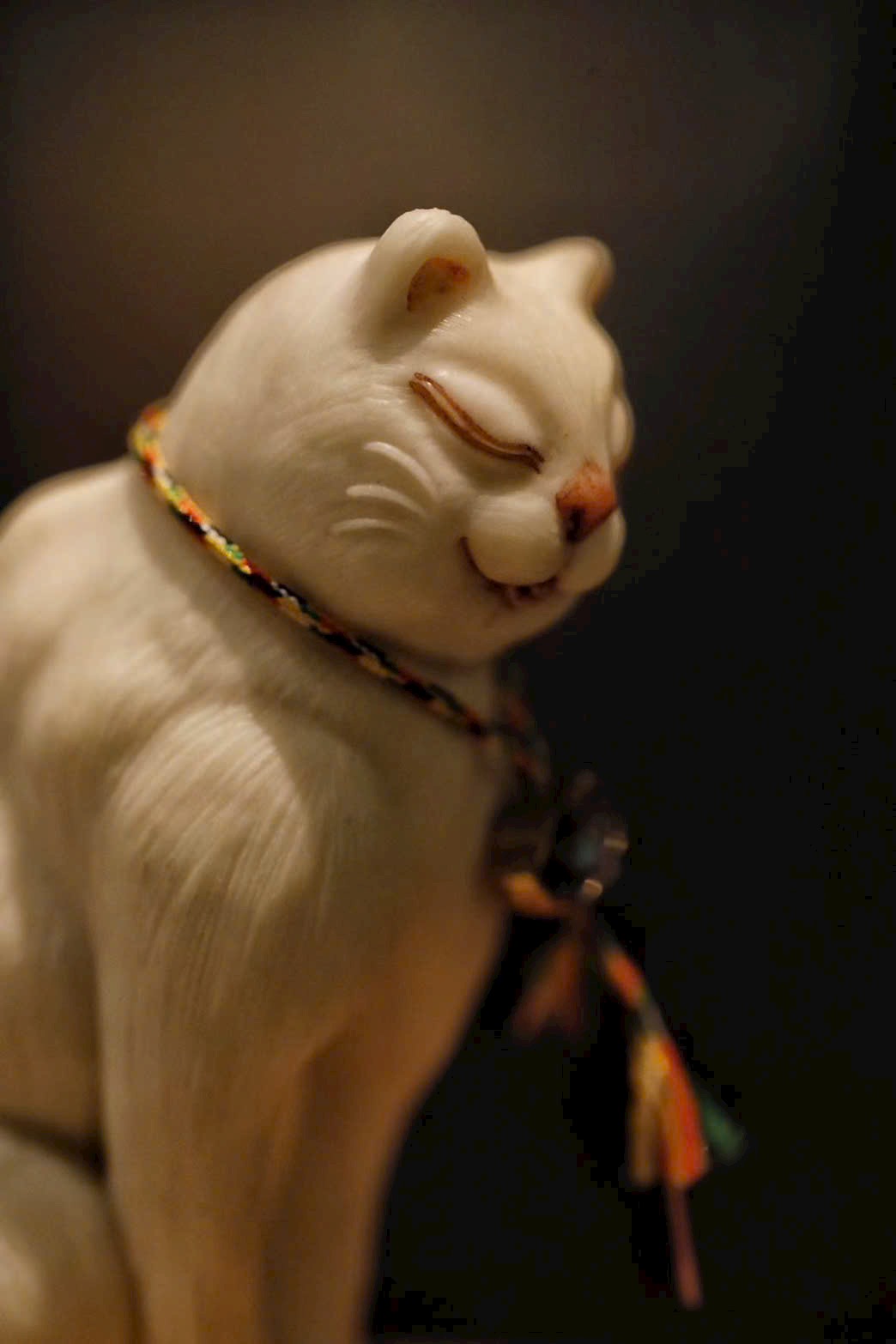 Chế tác từ gạc hươu, chạm khắc thủ công tinh xảo với đường vân lông mèo mịn màng, tự nhiên. Hình dáng chú mèo sinh động, tư thế ngồi chồm gọn gàng, toát lên vẻ ngoan ngoãn dễ thương. Vòng cổ điểm xuyết thêm nét tinh nghịch đáng yêu. Phù hợp đặt trên bàn trà hay góc làm việc, mang lại cảm giác vui tươi và thi vị cho đời sống thường nhật.