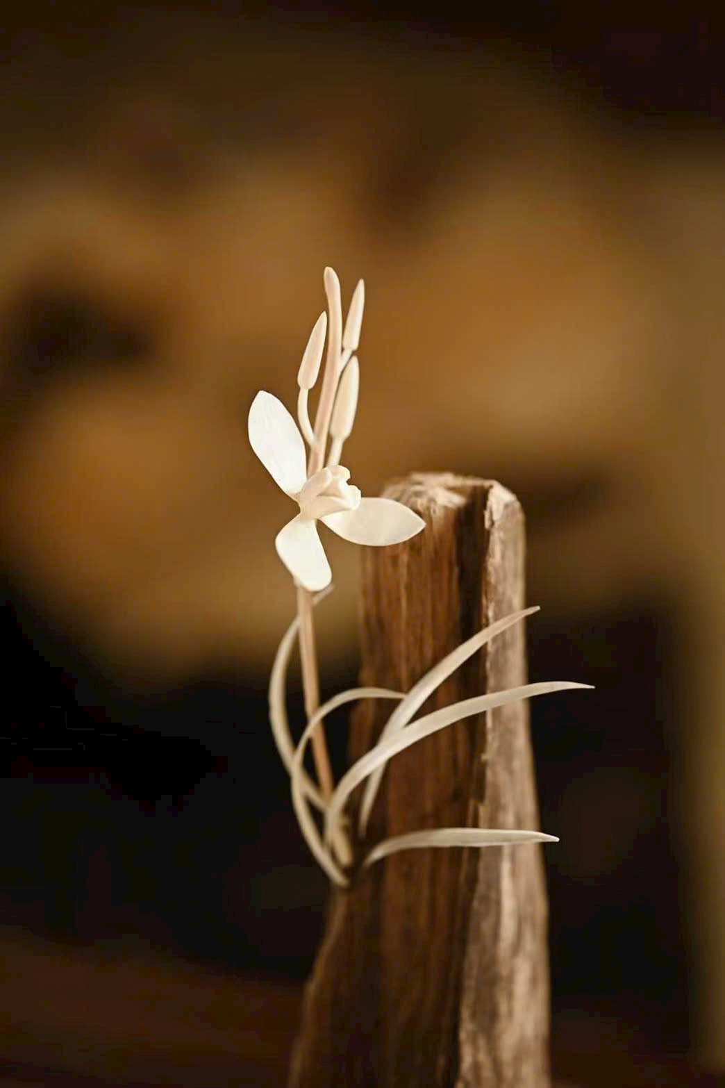 Chất liệu mịn màng, ấm dịu; điểm xuyết hoa lan thanh sạch, dáng vẻ mềm mại thoát tục, hương vị như lan nở nơi thung lũng vắng.