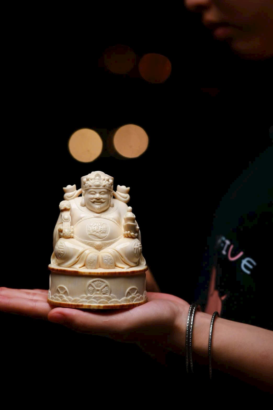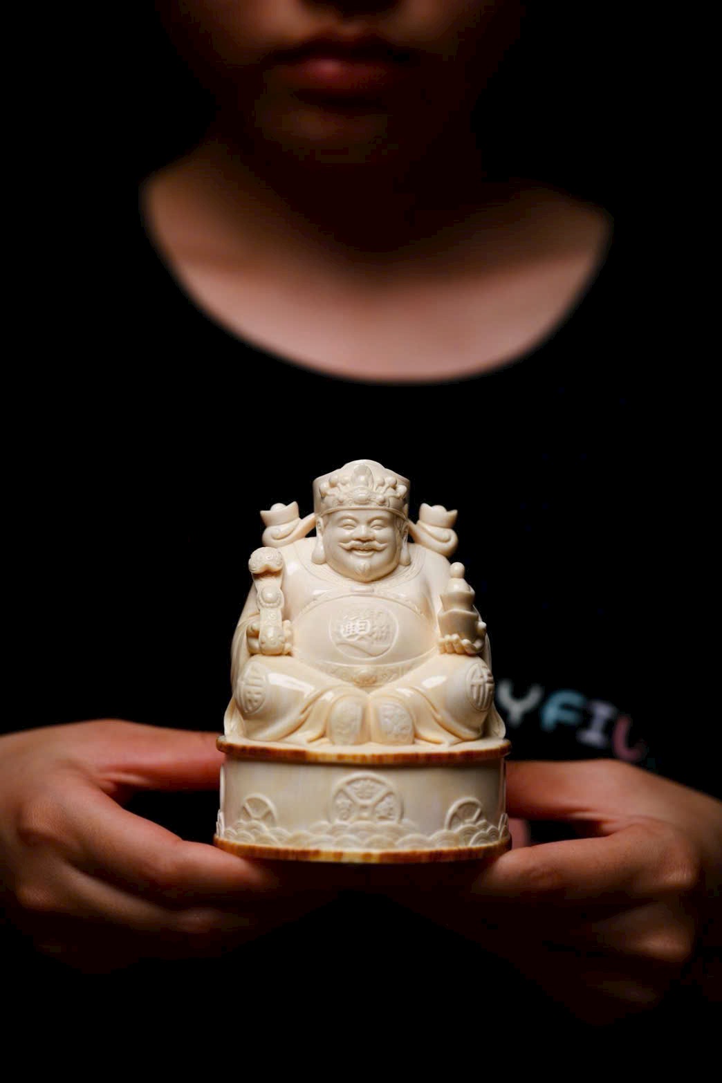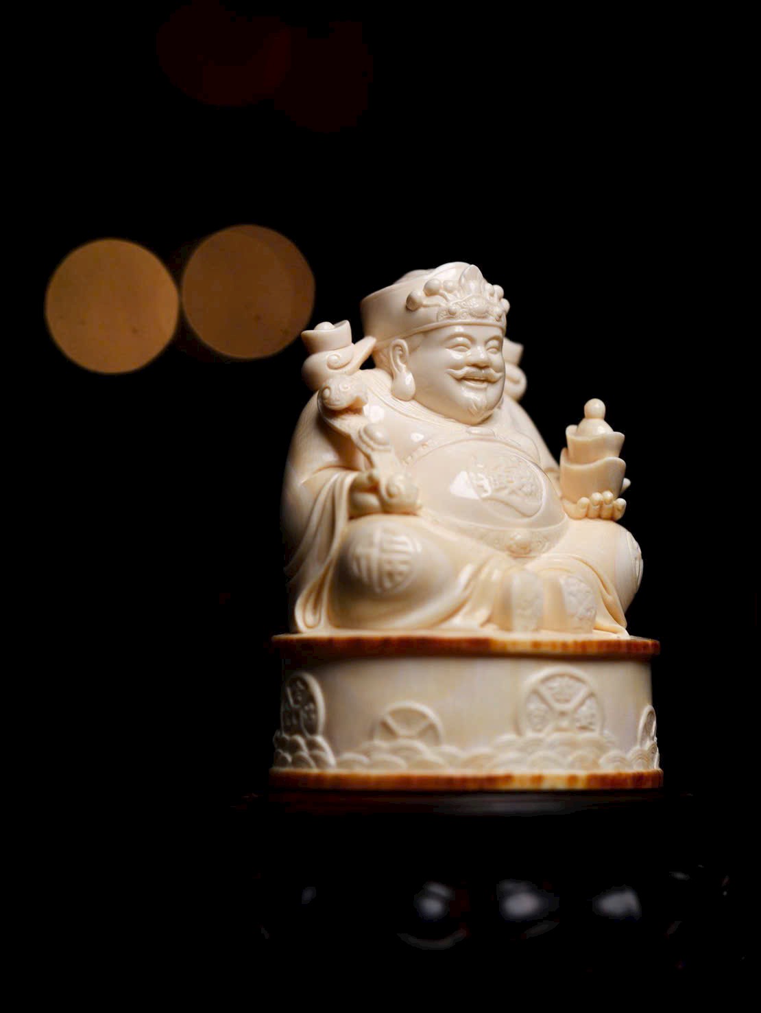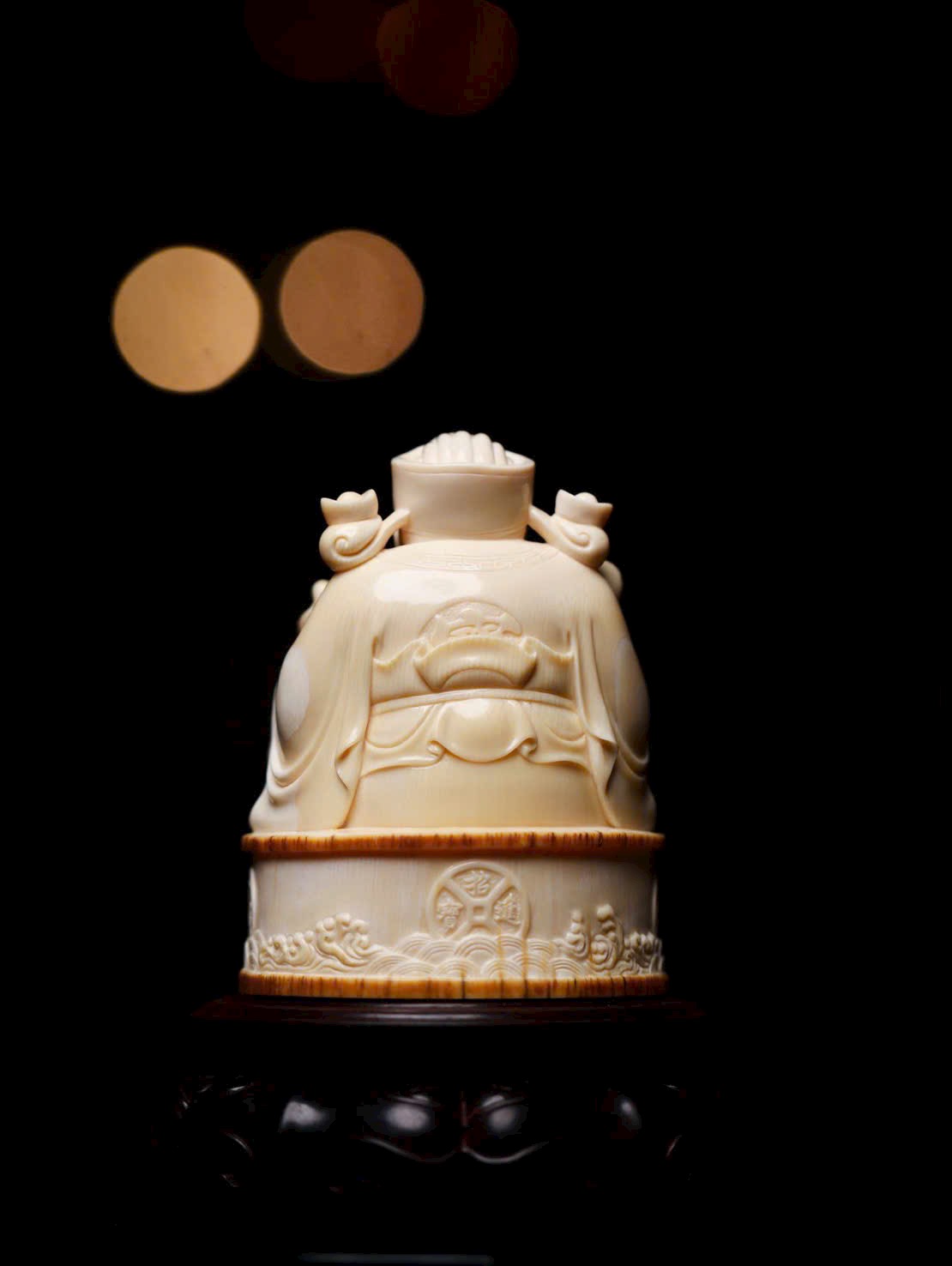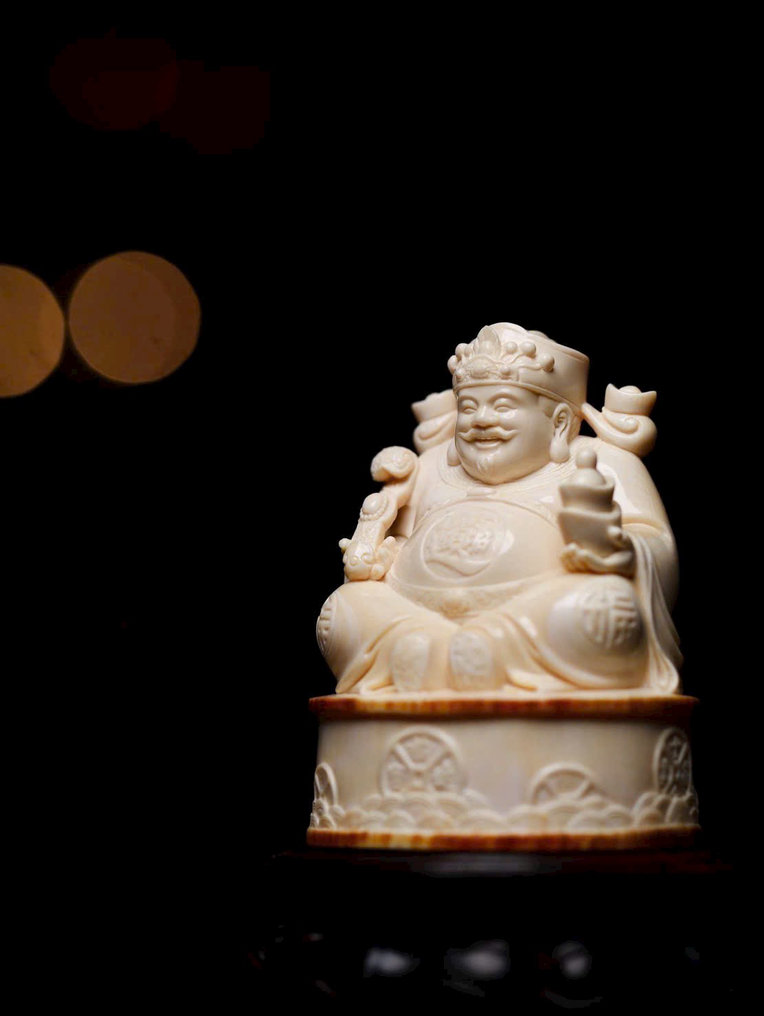 Tượng Tiểu Thần Tài được chế tác hoàn toàn thủ công từ ng.à voi ma mút 5A, tạo hình đầy đặn, có thần, đường nét mượt mà lưu loát. Thần Tài tay phải cầm Như Ý, tay trái nâng thỏi vàng, gương mặt hoan hỷ, thân thiện, cảm giác cầm tay mịn ấm, nhuận ngọc. Đặt yên một chỗ là chiêu tài – thêm hỷ, gửi lời chúc tài vận hanh thông, tiền vào không ngớt ✨
