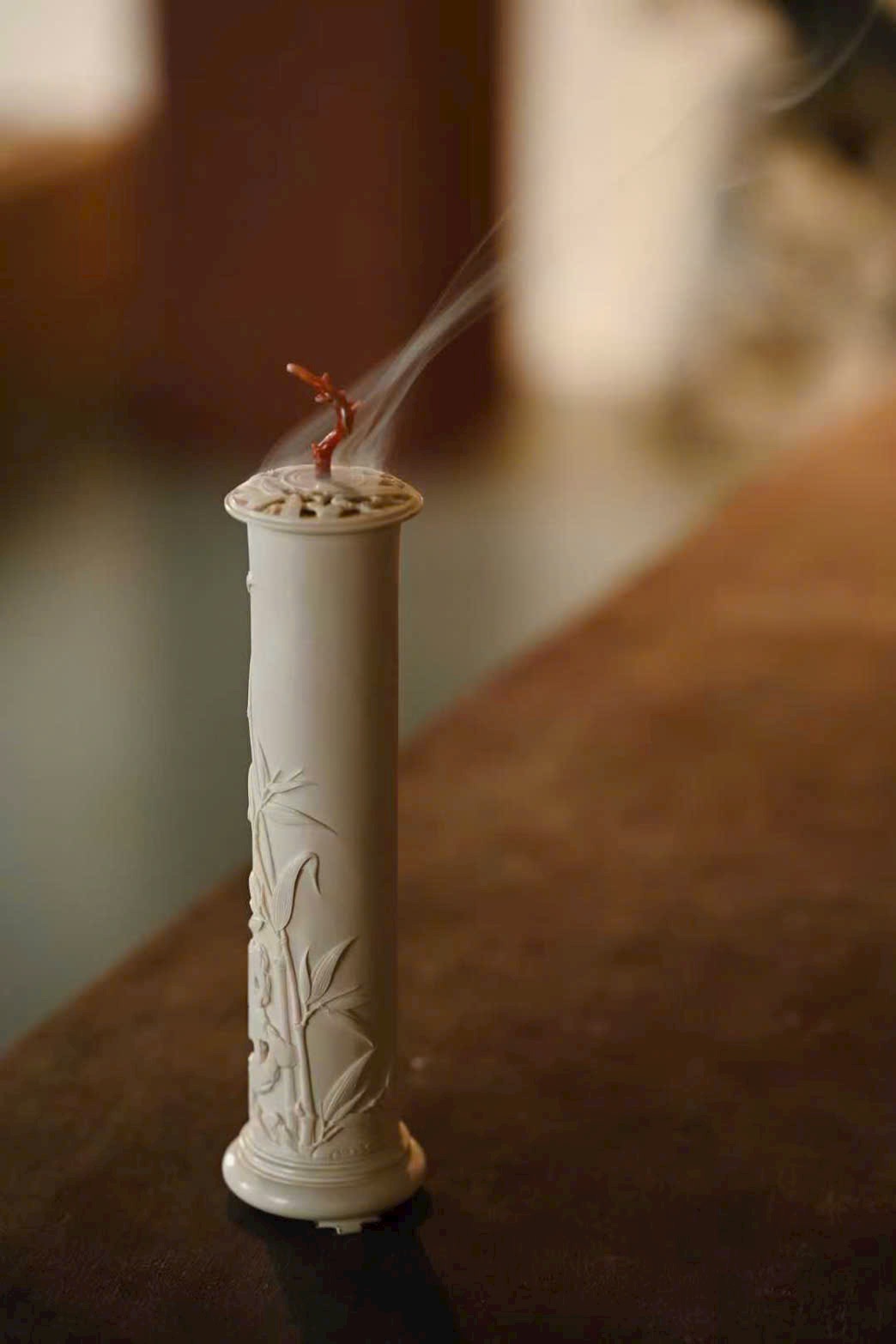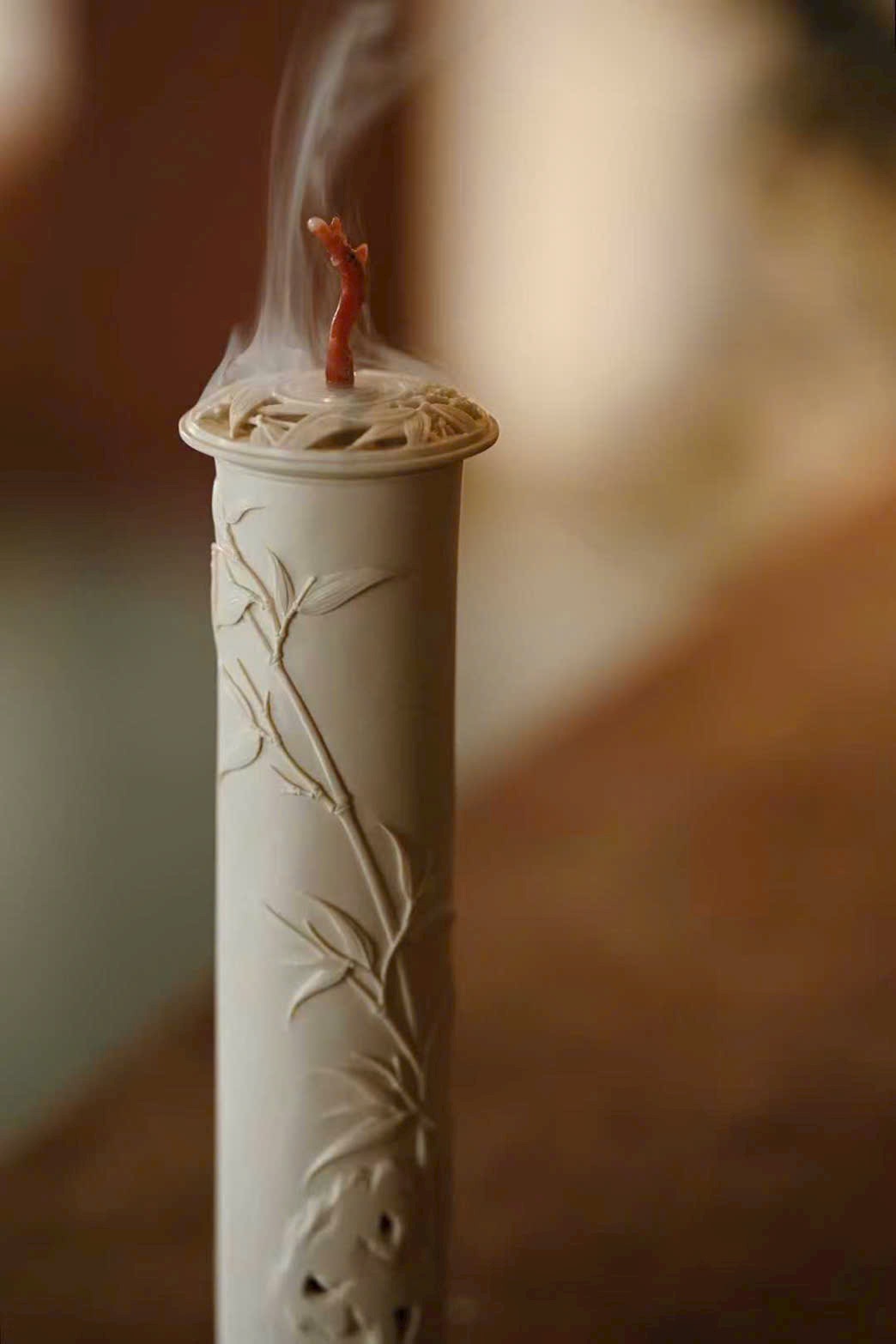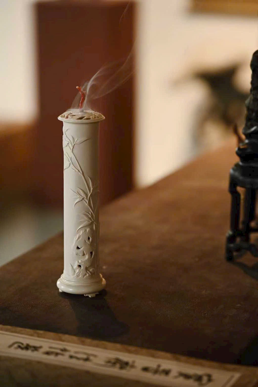 Tác phẩm được hoàn toàn chạm khắc thủ công, khắc họa những cành trúc mảnh mai, bố cục chừa nhiều khoảng trống, phong cách thanh nhã, ý cảnh sâu xa. Khi đốt hương, khói bay nhẹ nhàng, gợi nên vẻ thi vị như trong tranh. Cả công và liệu đều tinh mỹ, mang giá trị thưởng ngoạn cao.