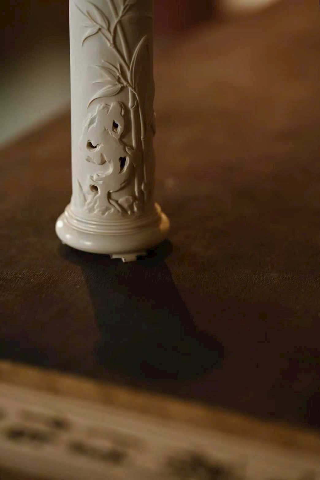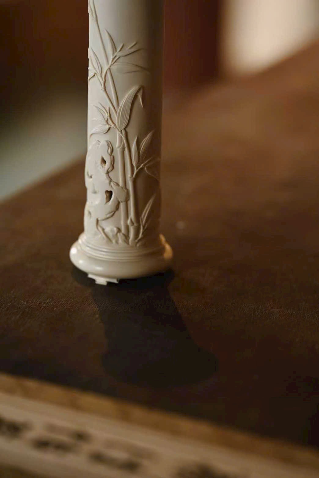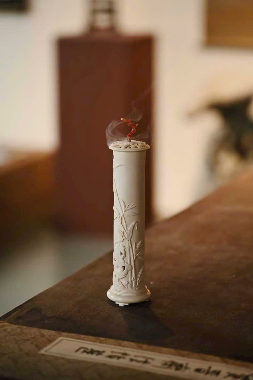 Tác phẩm được hoàn toàn chạm khắc thủ công, khắc họa những cành trúc mảnh mai, bố cục chừa nhiều khoảng trống, phong cách thanh nhã, ý cảnh sâu xa. Khi đốt hương, khói bay nhẹ nhàng, gợi nên vẻ thi vị như trong tranh. Cả công và liệu đều tinh mỹ, mang giá trị thưởng ngoạn cao.