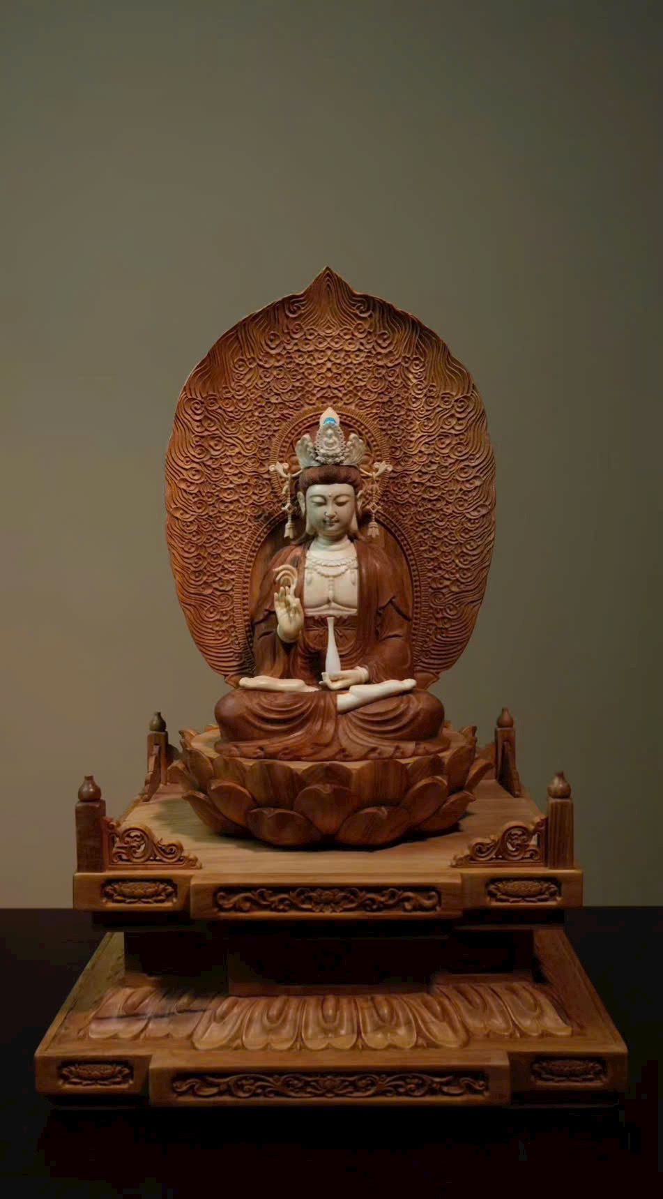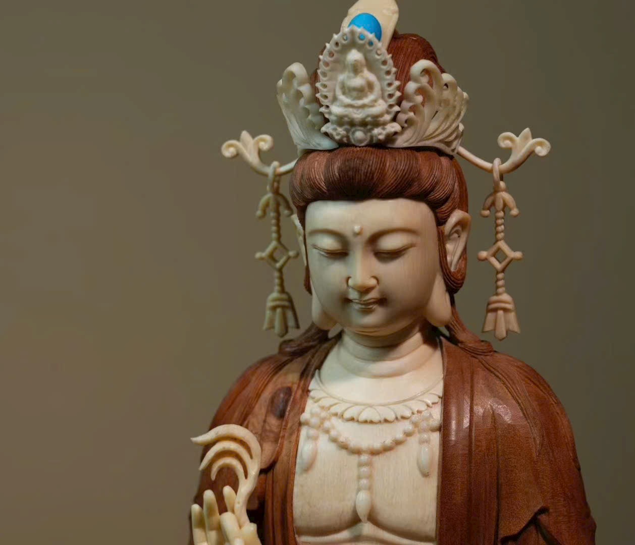 Chất liệu ấm mịn, thanh khiết cao nhã; đường nét chạm khắc trôi chảy, không vướng gãy. Các chi tiết giữ lớp “da” và phối màu tự nhiên giúp tổng thể càng thêm tinh xảo.