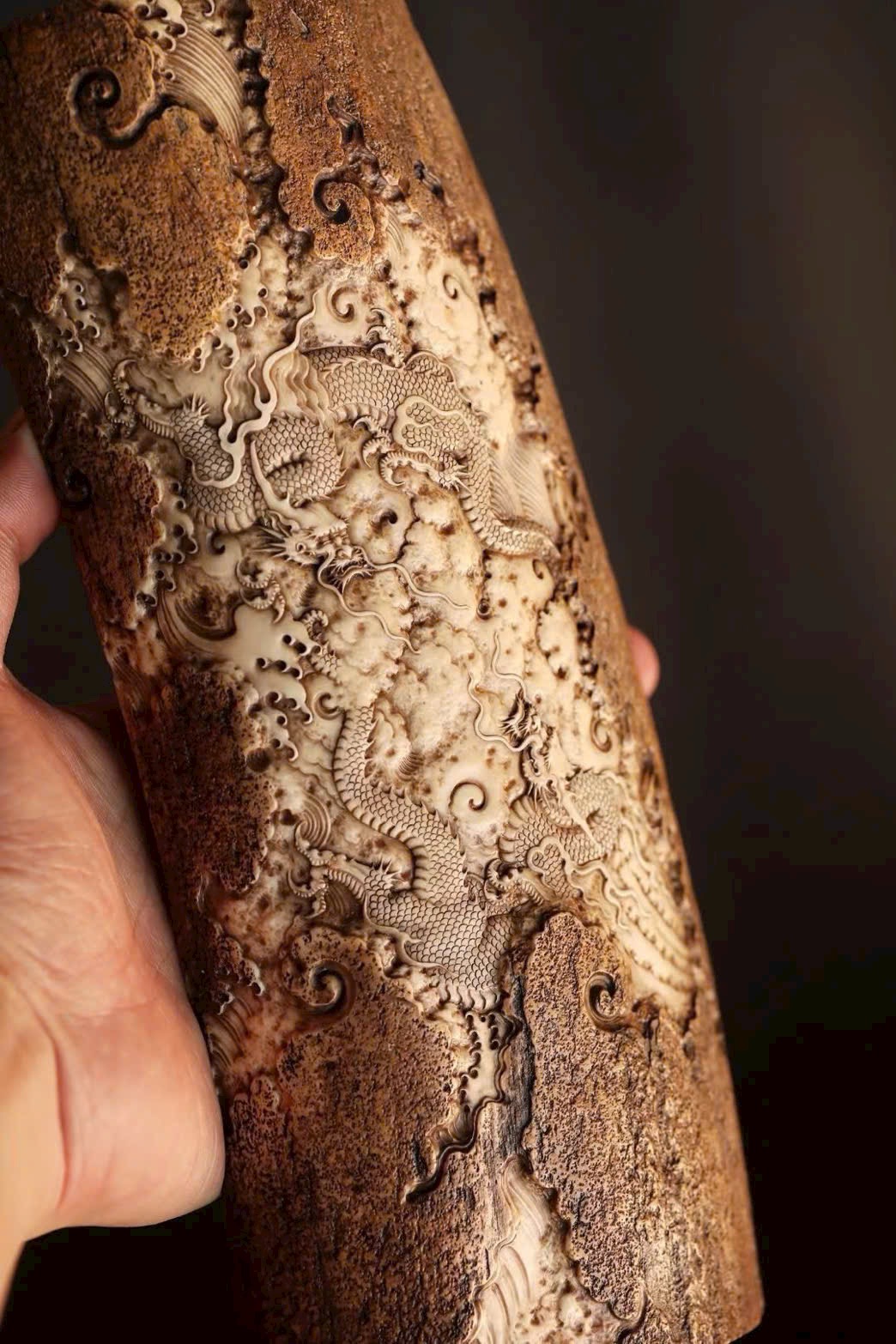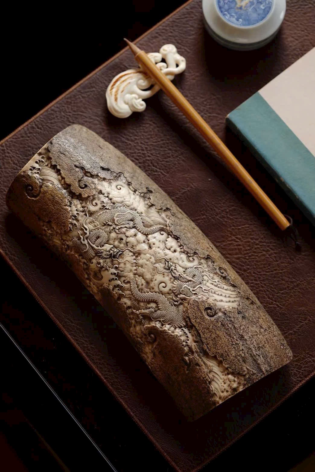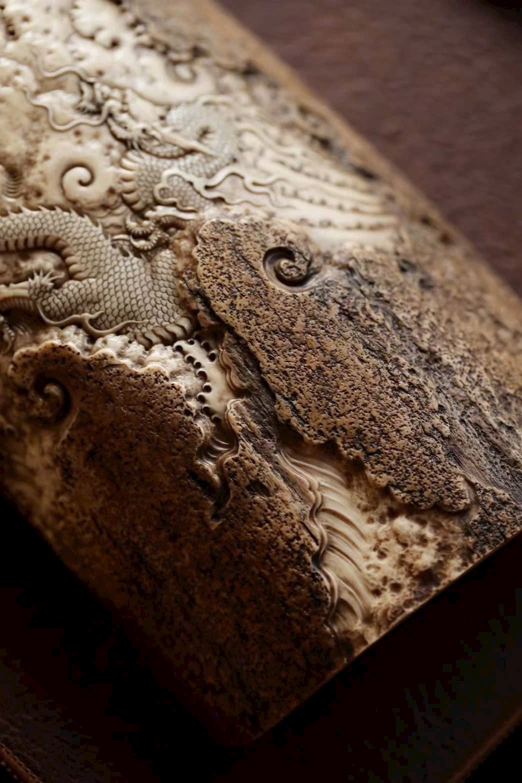 Tạc từ khối n.gà mamut lớn nguyên khối – chạm rồng ẩn hiện giữa mây khói, sinh động mà uy nghi. Hương khói lan tỏa như sương cuộn mây dâng, cổ kính thanh tao, xứng tầm phẩm sưu tầm.