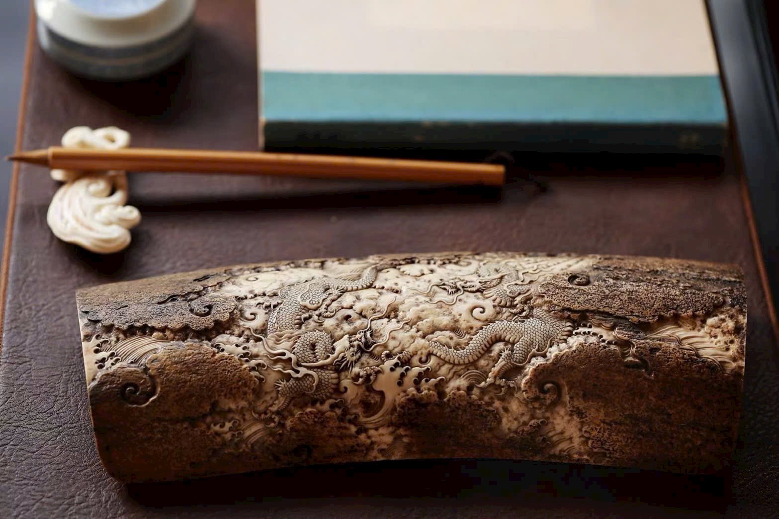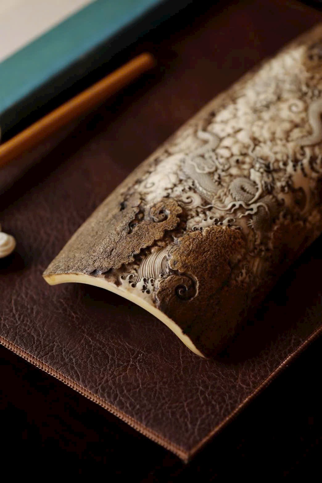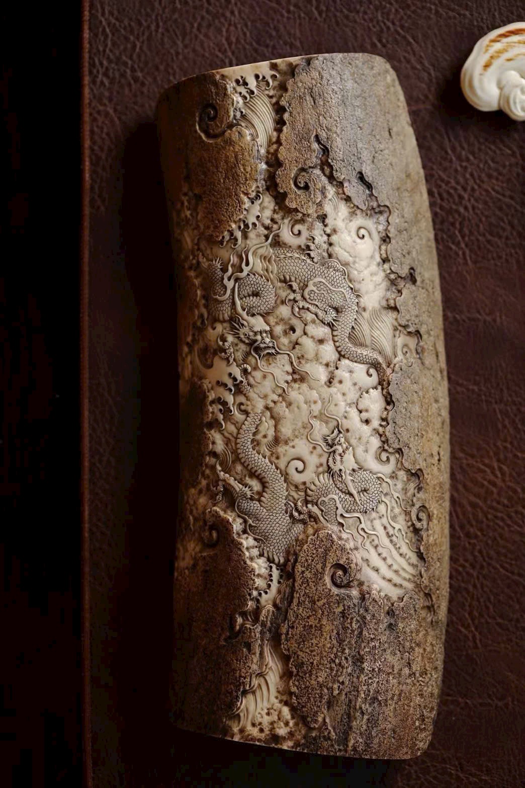 Tạc từ khối n.gà mamut lớn nguyên khối – chạm rồng ẩn hiện giữa mây khói, sinh động mà uy nghi. Hương khói lan tỏa như sương cuộn mây dâng, cổ kính thanh tao, xứng tầm phẩm sưu tầm.