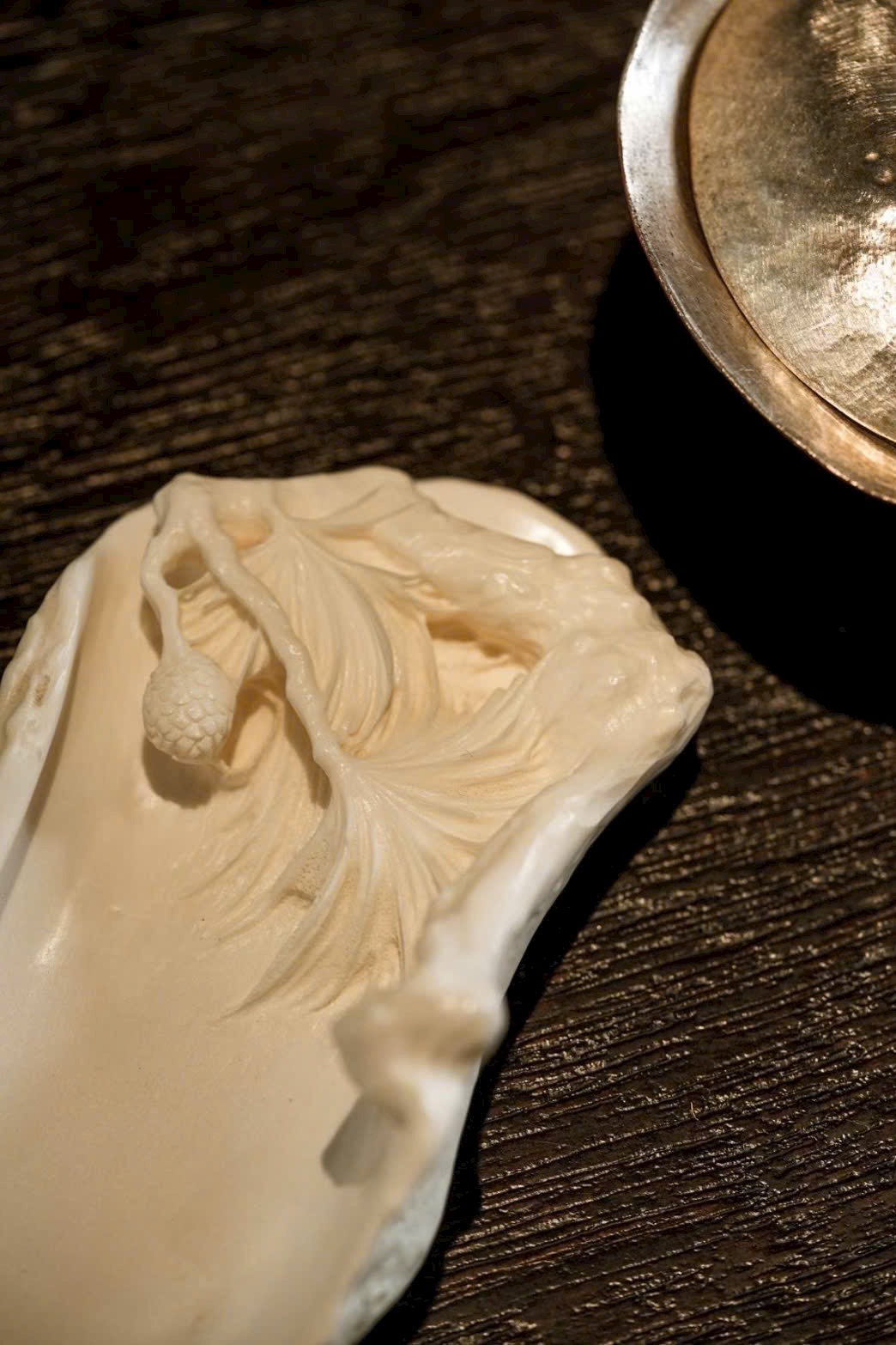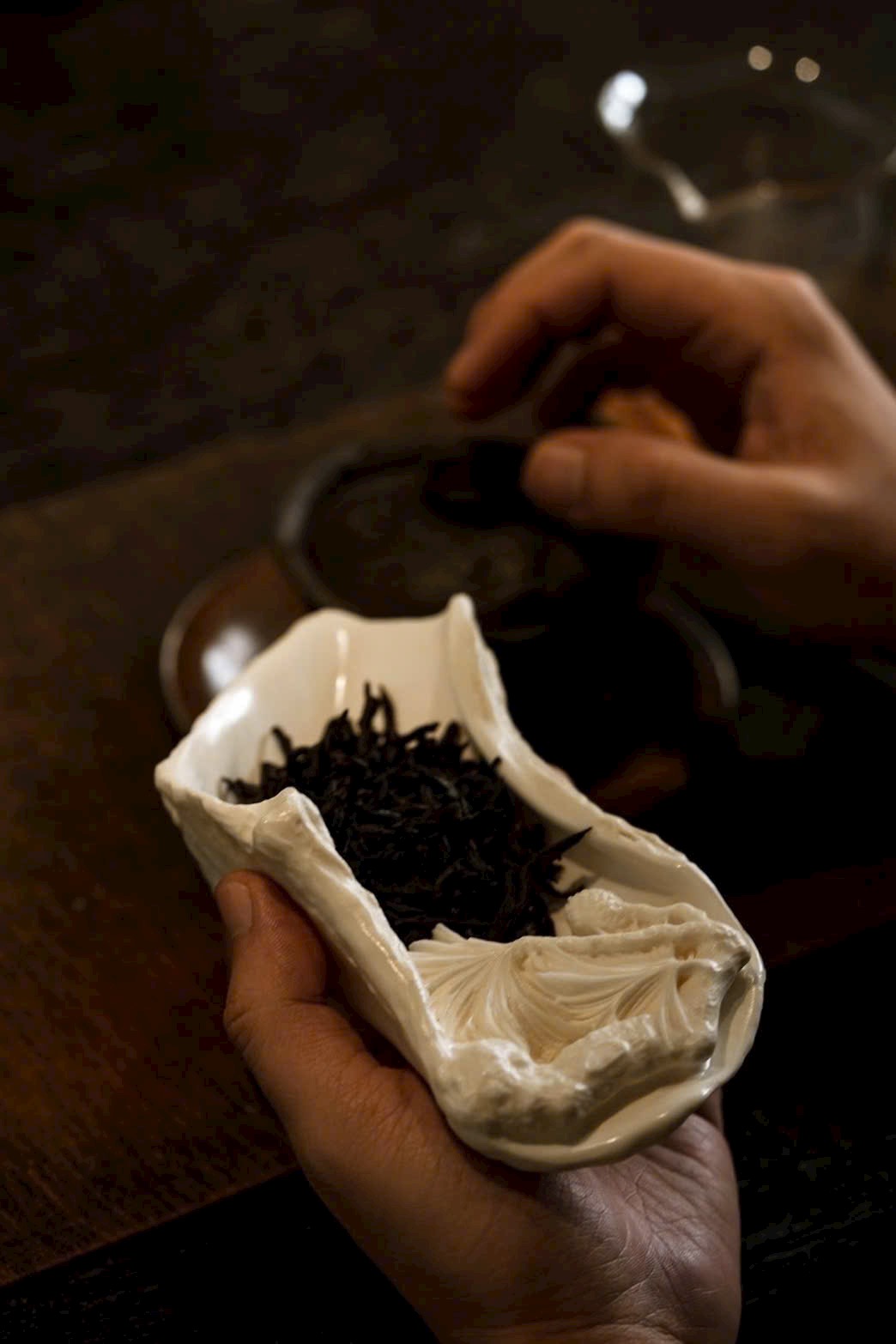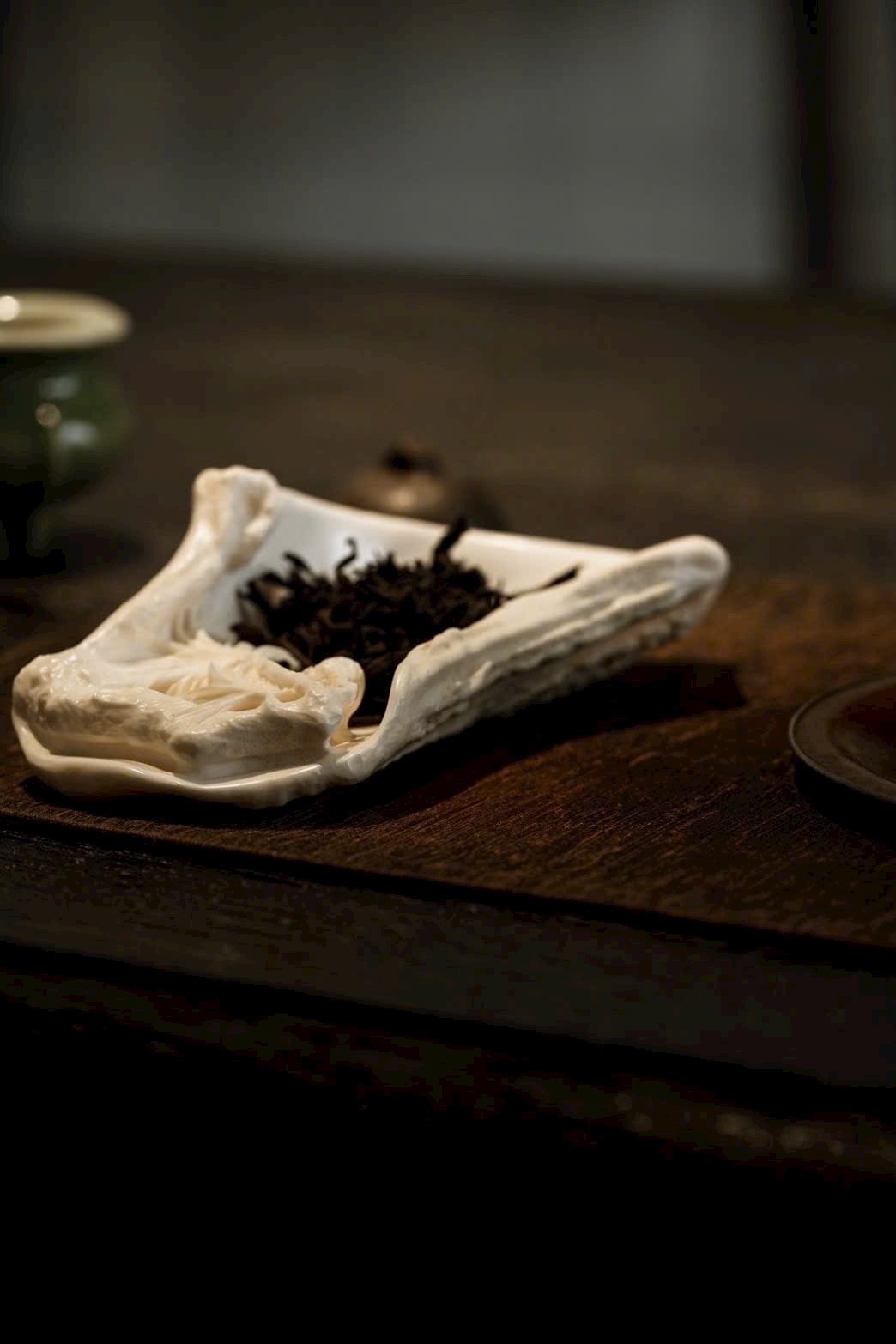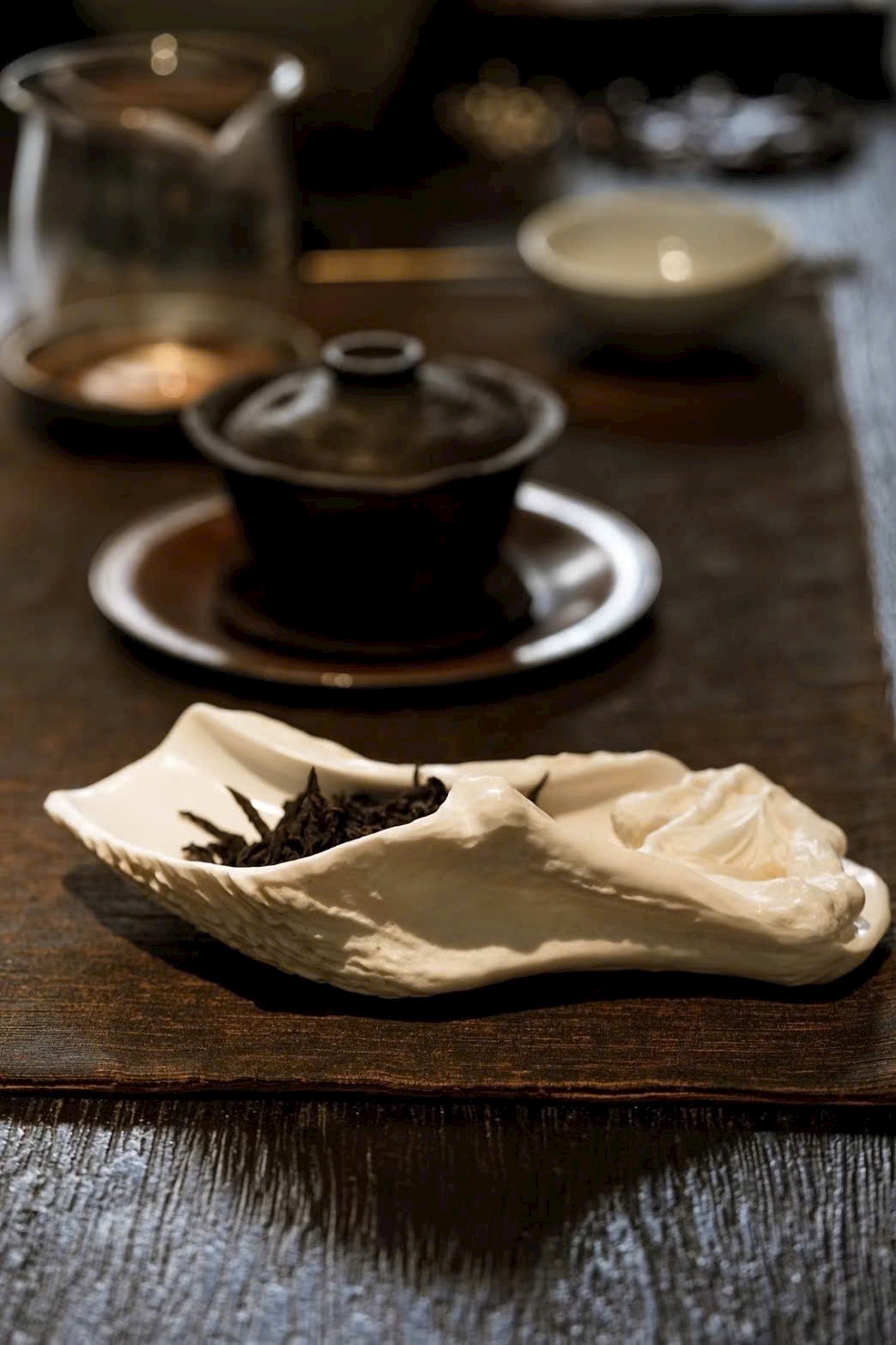 Chế tác từ nguyên liệu vỏ già, dao tỉa tinh tế, chạm nổi cao; tiếng gió thông lay đá, xuân phong đắc ý, phúc lành tràn đầy. Phong thái mộc mạc mà thanh nhã, đường nét sinh động; là món trà cụ tao nhã, tăng thêm ý vị cho bàn trà, thích hợp cả thưởng thức lẫn trưng bày.