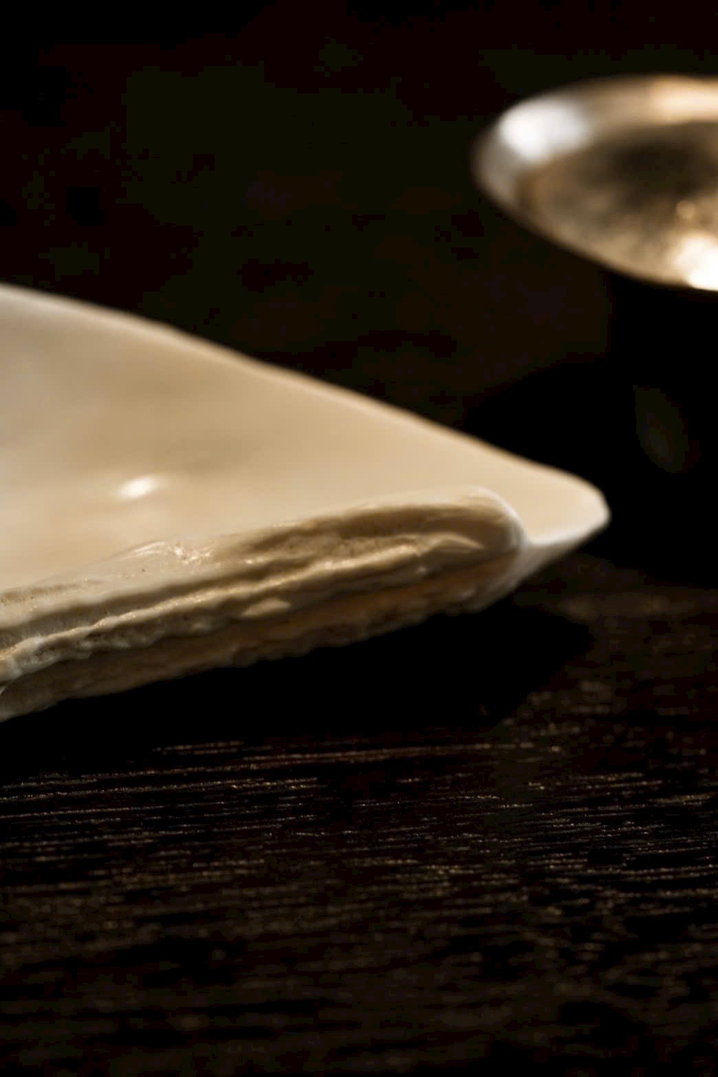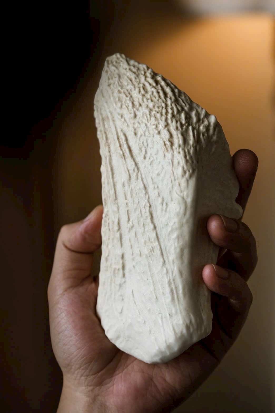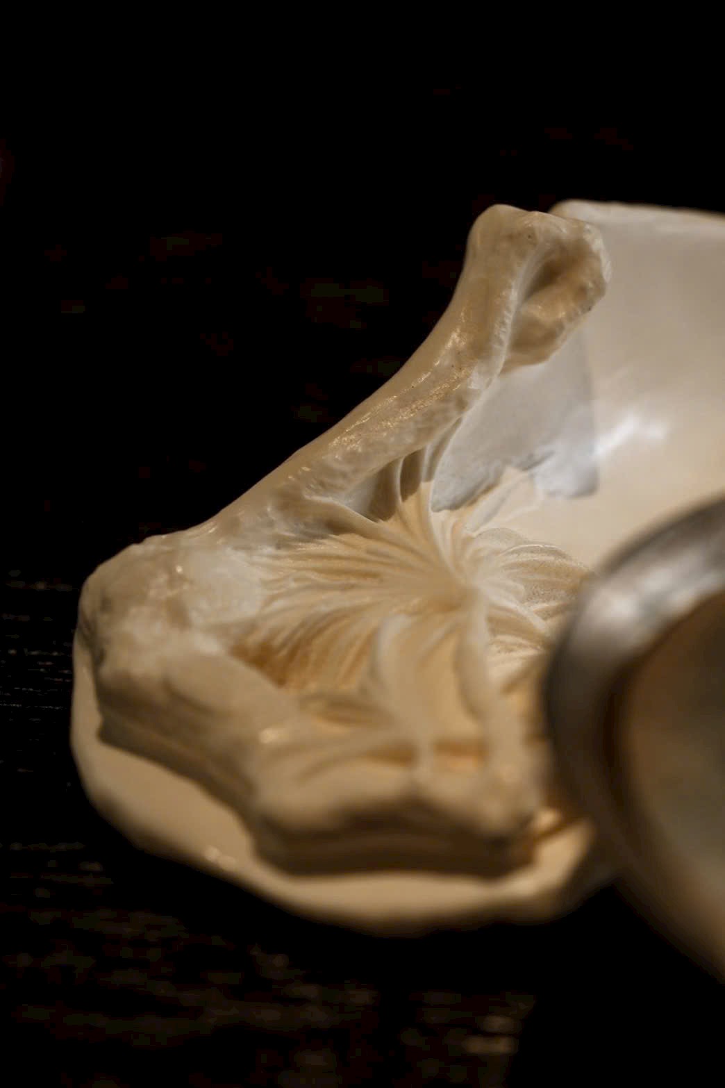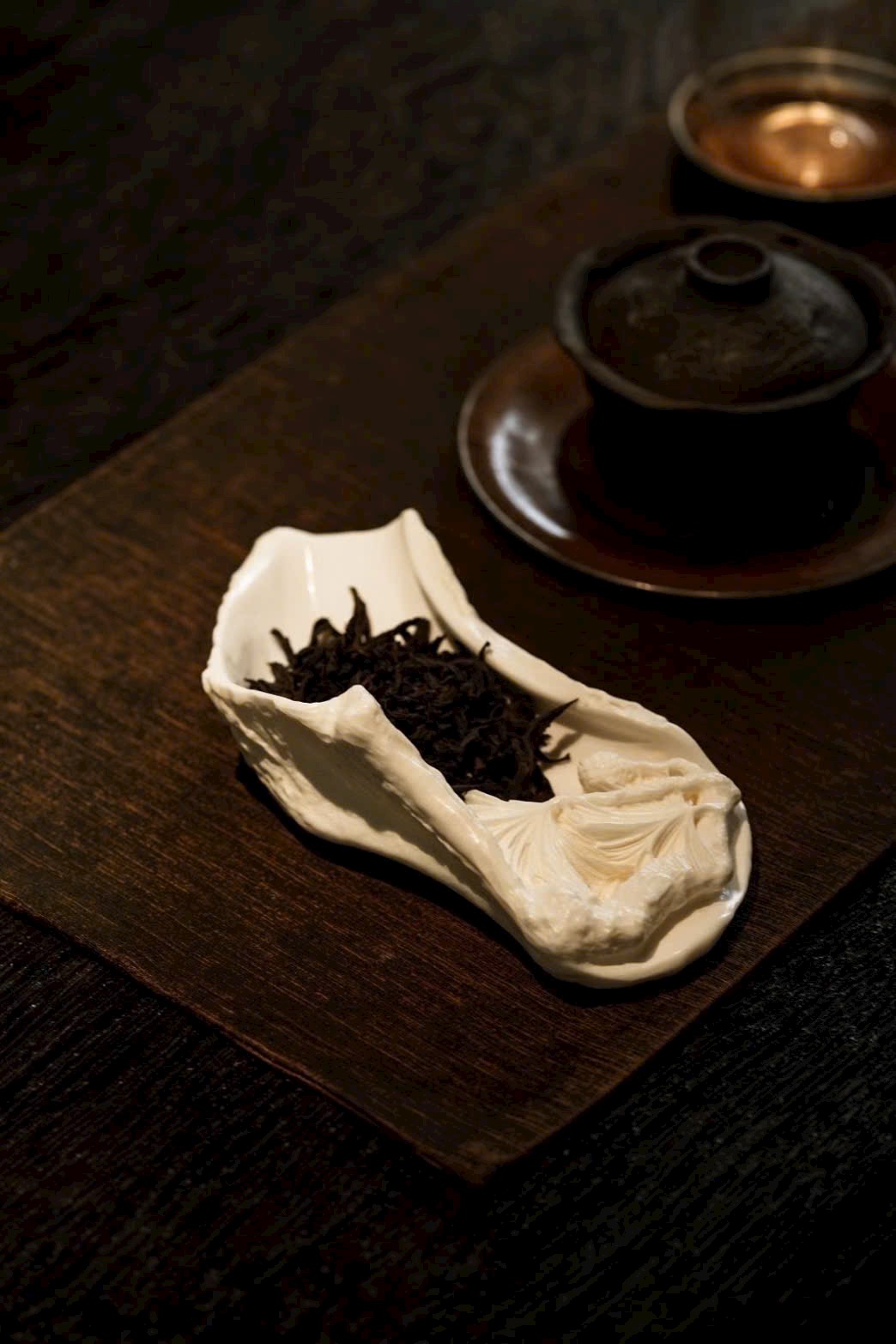Chế tác từ nguyên liệu vỏ già, dao tỉa tinh tế, chạm nổi cao; tiếng gió thông lay đá, xuân phong đắc ý, phúc lành tràn đầy. Phong thái mộc mạc mà thanh nhã, đường nét sinh động; là món trà cụ tao nhã, tăng thêm ý vị cho bàn trà, thích hợp cả thưởng thức lẫn trưng bày.