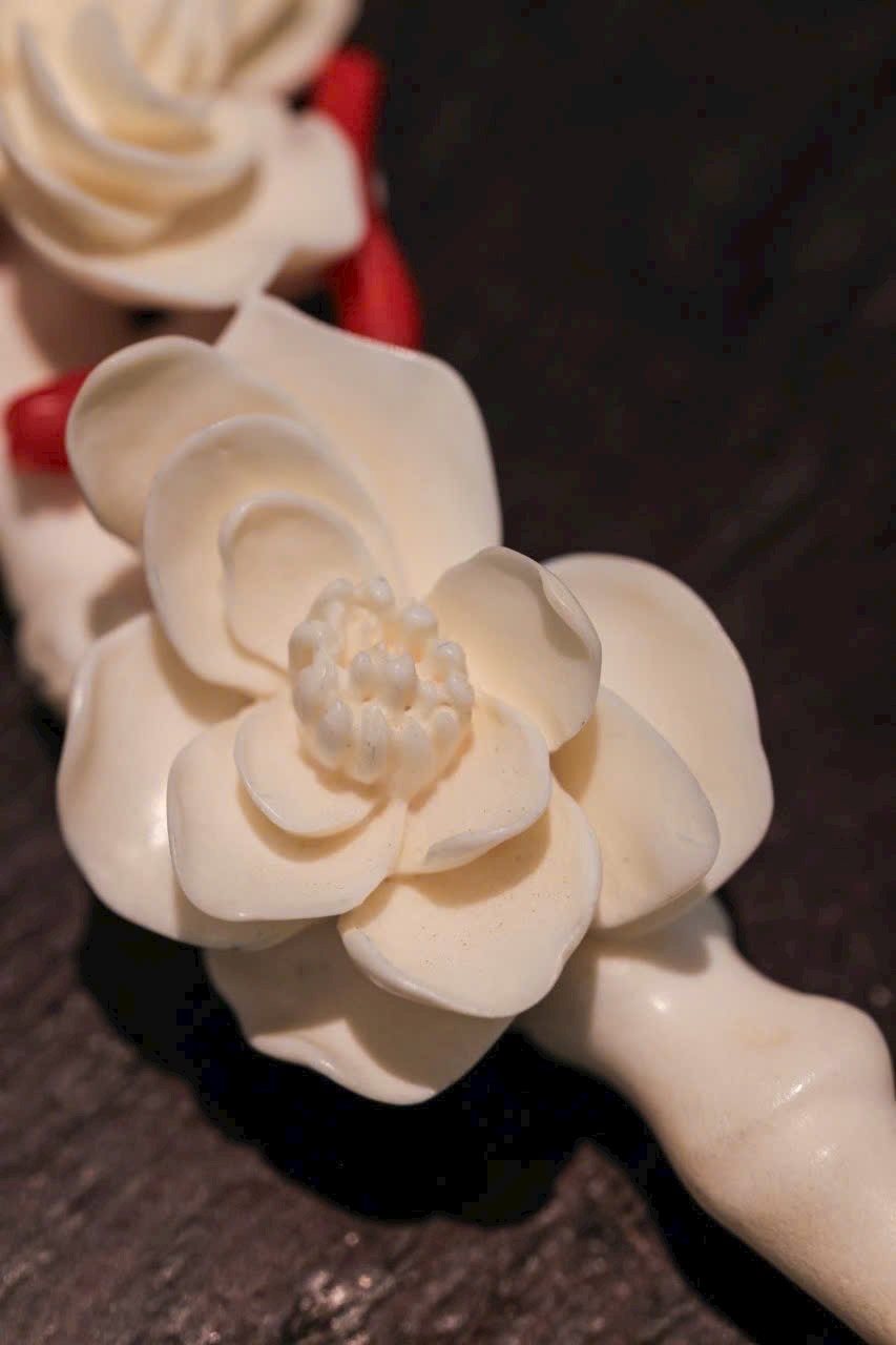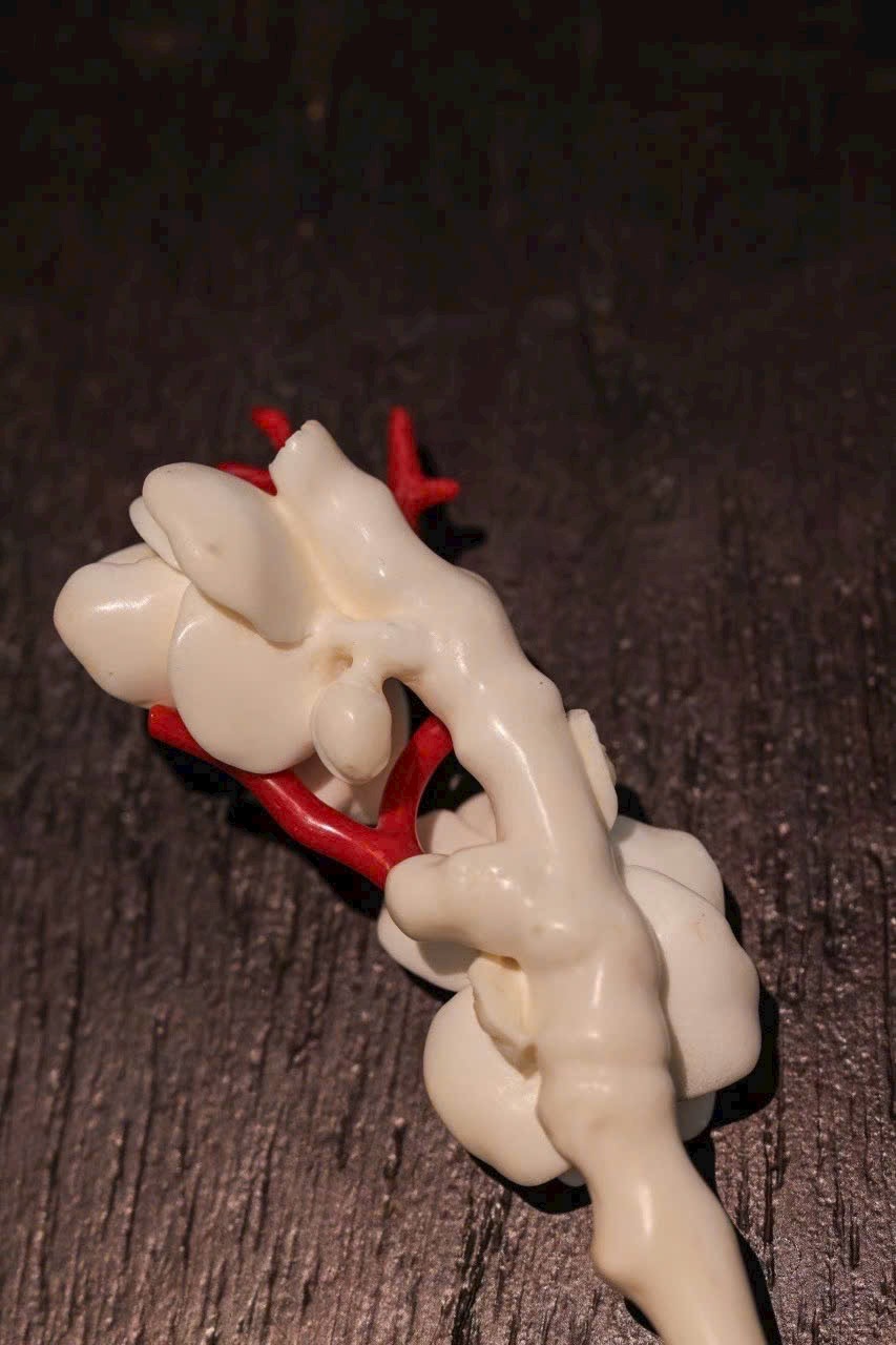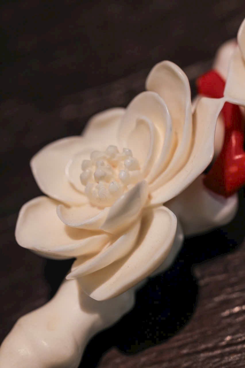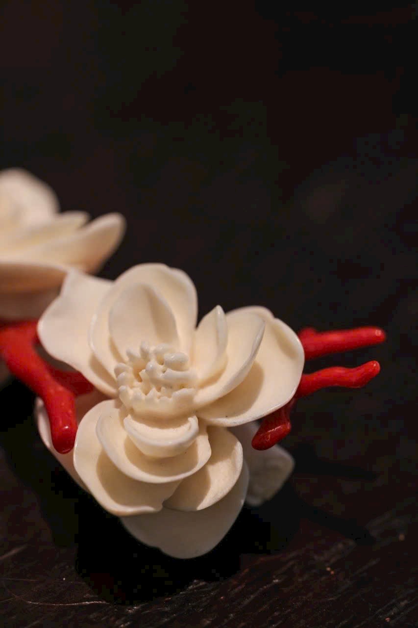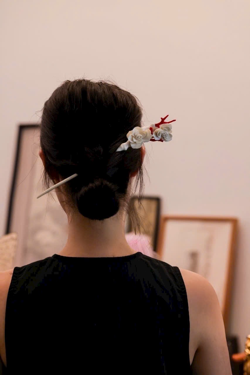 🌿 Chiếc trâm cài tóc được chạm khắc tinh xảo từ sừng hươu này mang hình dáng hoa hải đường, cành uốn lượn mềm mại, cánh hoa duyên dáng yêu kiều. Thân trâm có vân gợn như dấu vết của năm tháng, bộ phận bước diêu nhẹ rung, tựa như hoa hải đường đọng sương, tăng thêm phần dịu dàng, toát lên vẻ cổ điển đậm chất phương Đông.