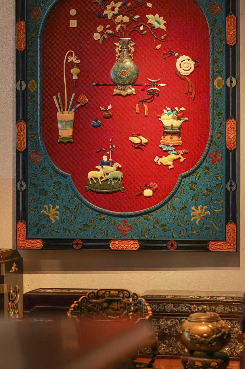 Thích hợp bày trí trong không gian sống, vừa có giá trị sưu tầm thưởng lãm. Tác phẩm mang ý nghĩa phúc lộc, cát tường như ý, đem lại phong vị thanh nhã và sinh khí cho nội thất. Khung treo dùng tử đàn Zambia làm viền, phần tâm màn được chạm khắc nền và kỹ pháp khảm tinh xảo, thể hiện các đồ án thanh cống đa dạng. Chất liệu phong phú gồm bích ngọc, mã não, ốc xà cừ, pháp lang… tạo nên hoa văn sinh động, chủ đề cát tường như “Tuế triêu bình an”, “Cát tường như ý”, rực rỡ muôn sắc, đẹp đến mê lòng.