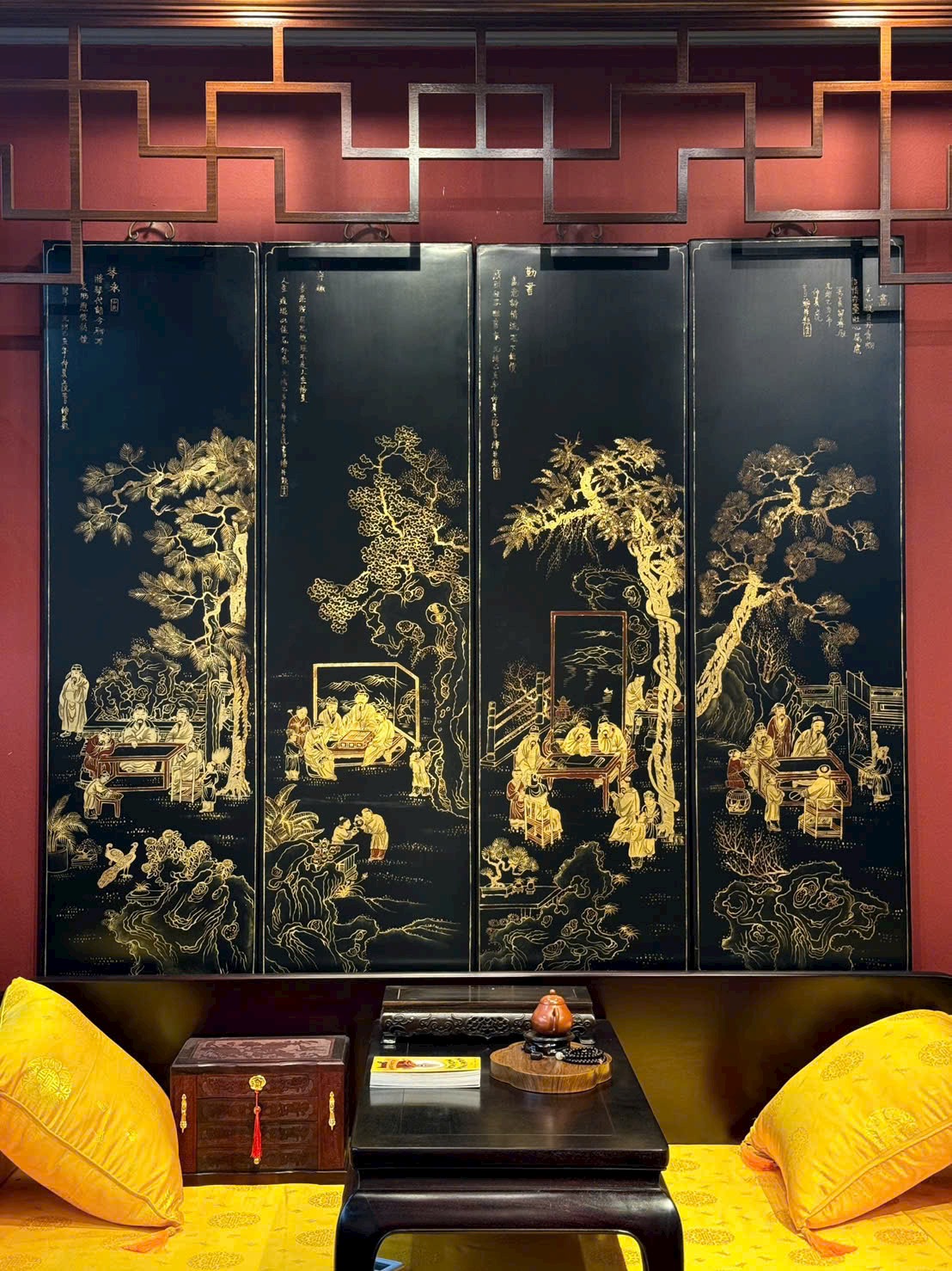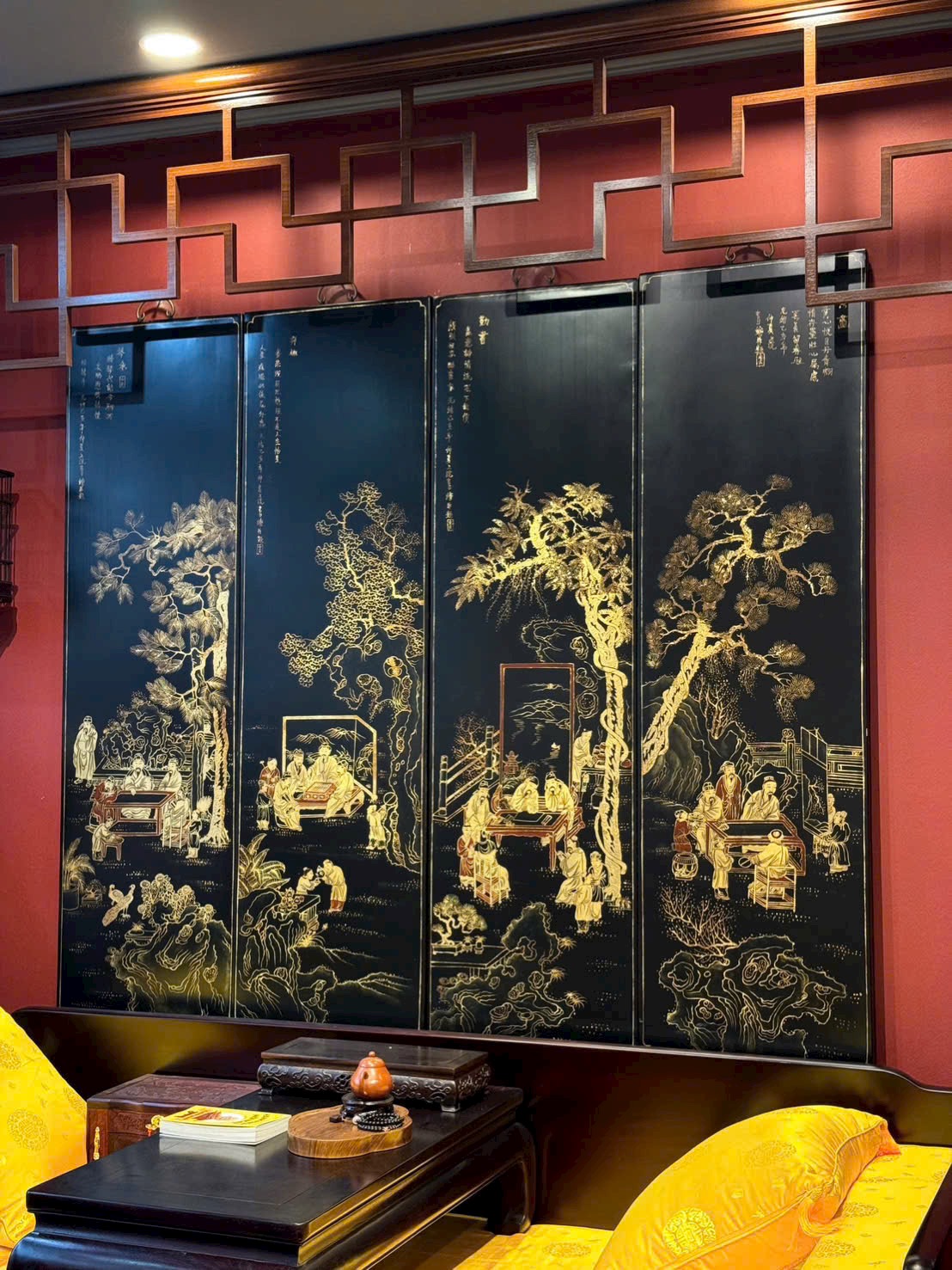 - Chất Liệu: Tranh Sơn Mài trên nền gỗ Lão Trinh Nam