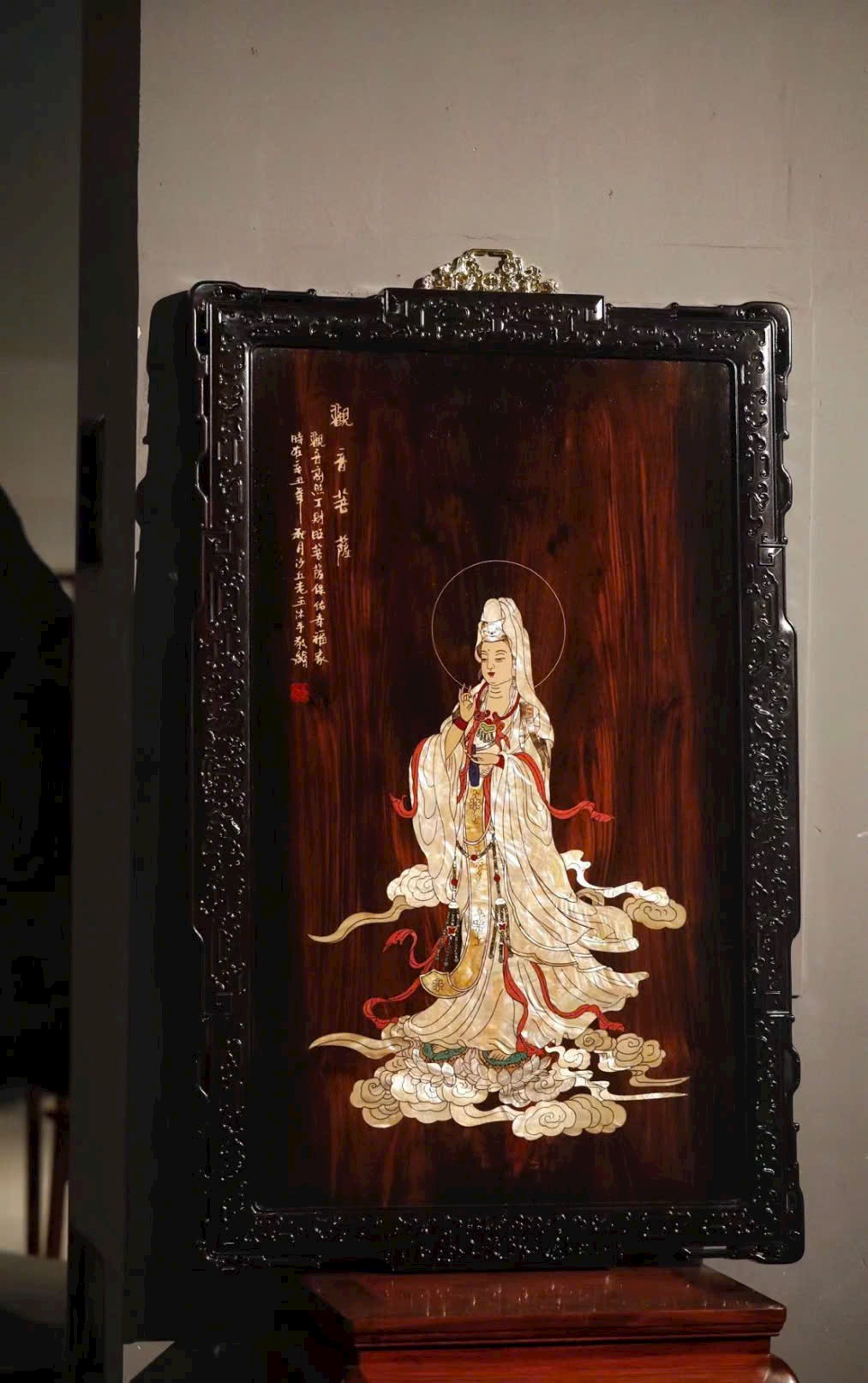 🌿 Tranh Quan Âm khảm Ốc Xà Cừ|Nền Gỗ Trắc + khung ngoài gỗ Tử Quang Đàn