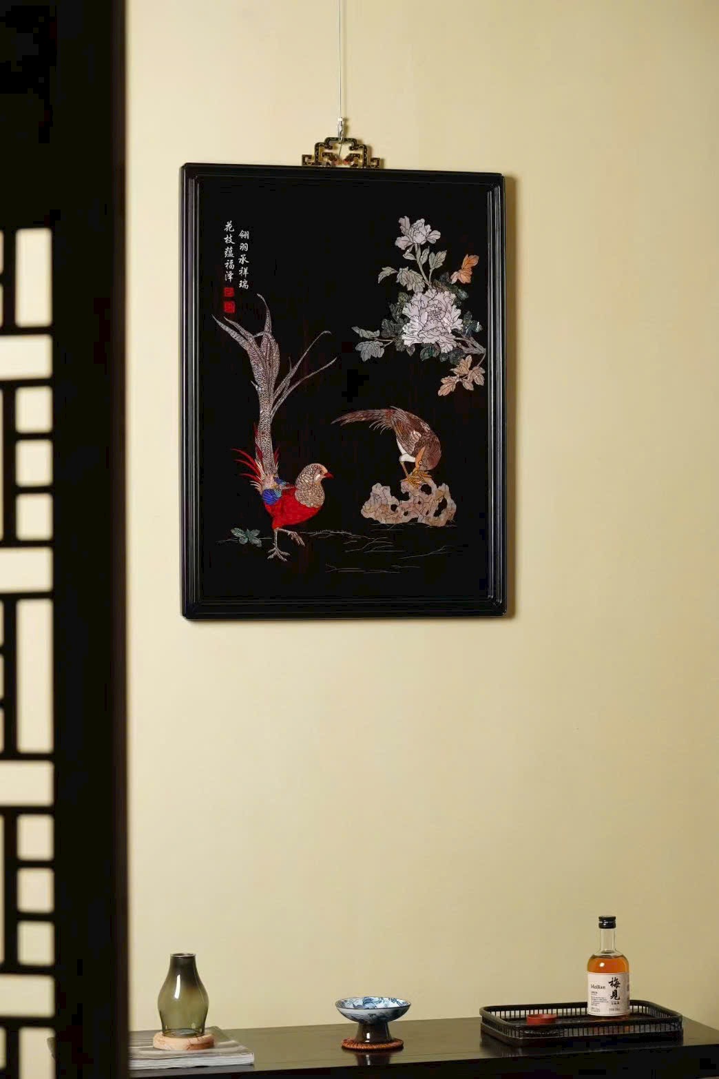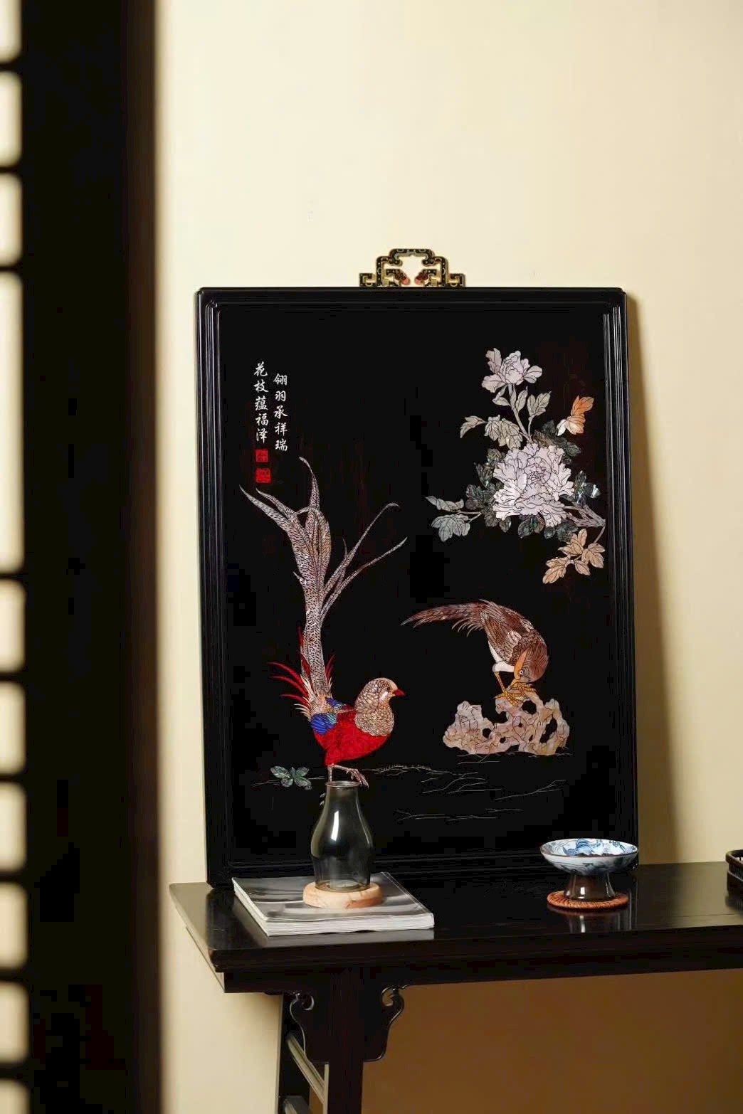 Tử quang đàn khảm xà cừ “Tranh treo & Cẩm thượng thiêm hoa”