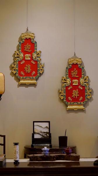 Lấy gỗ nam mộc làm nền, viền xung quanh chạm hoa văn hồi văn, phần trung tâm tinh khắc năm chú trâu, liền khối với tấm nền tạo thành tổng thể thống nhất. Bề mặt dát vàng thật, hiệu ứng nổi 3D rõ nét; nền sơn đỏ càng tăng vẻ trang trọng, hỷ khí.