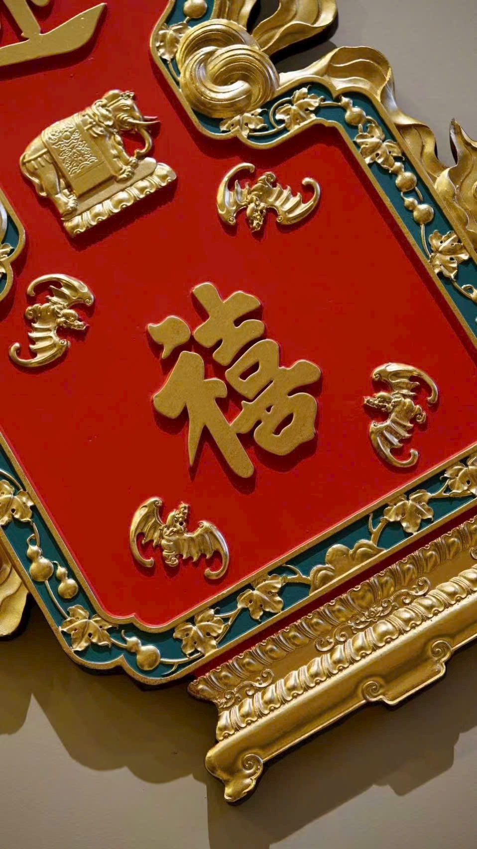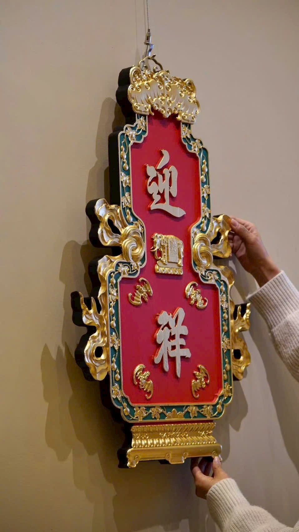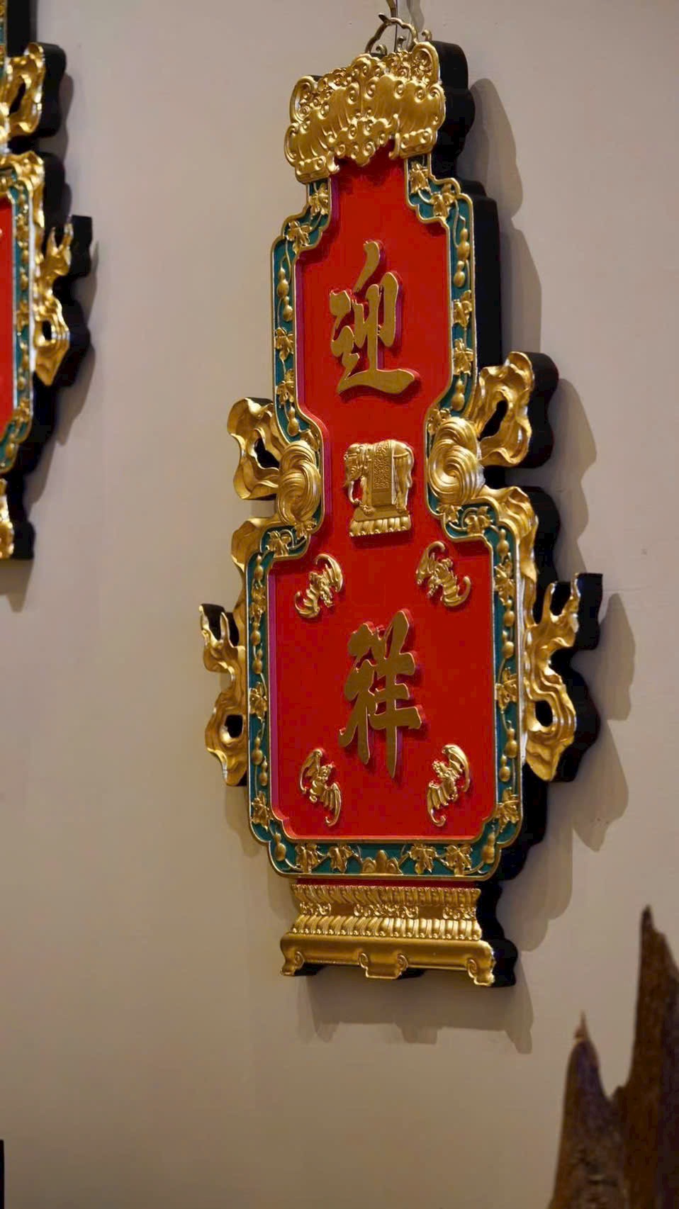 Tranh treo được làm từ ván gỗ nam mộc cũ tháo từ nhà cổ, phủ sơn và dát vàng, tay nghề bền đẹp, thanh nhã vượt thời gian. Chạm khắc họa tiết bách cổ và đồ án phúc lành, phần đai giữa khoét rỗng hòa cùng thân tranh. Treo trong thư phòng hay phòng khách đều tăng thêm vẻ tao nhã.