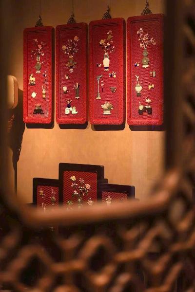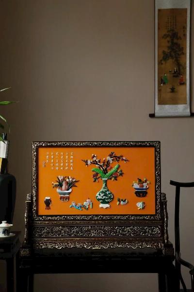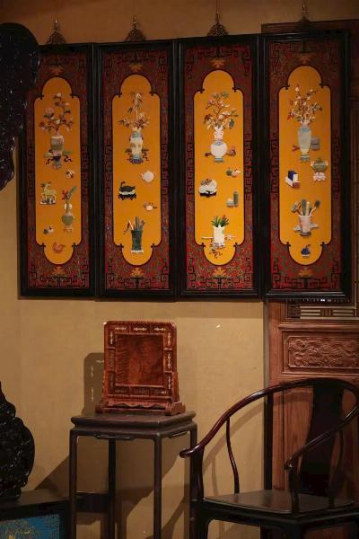 Cung đình phục khắc | Bình phong treo khảm bách bảo