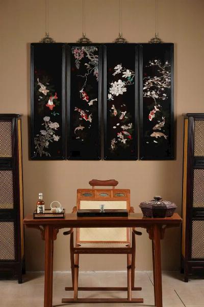 Nhã thất thanh cư | Bình phong treo khảm bách bảo