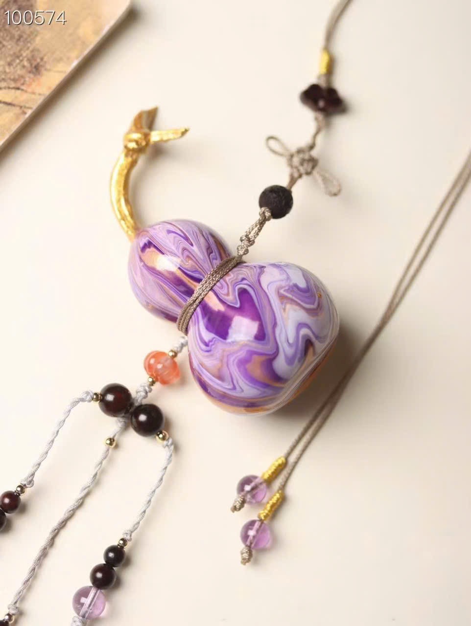 • Phối: hồ lô sơn loang màu tím + Nam Hồng + thạch anh tím + như ý gỗ tử đàn